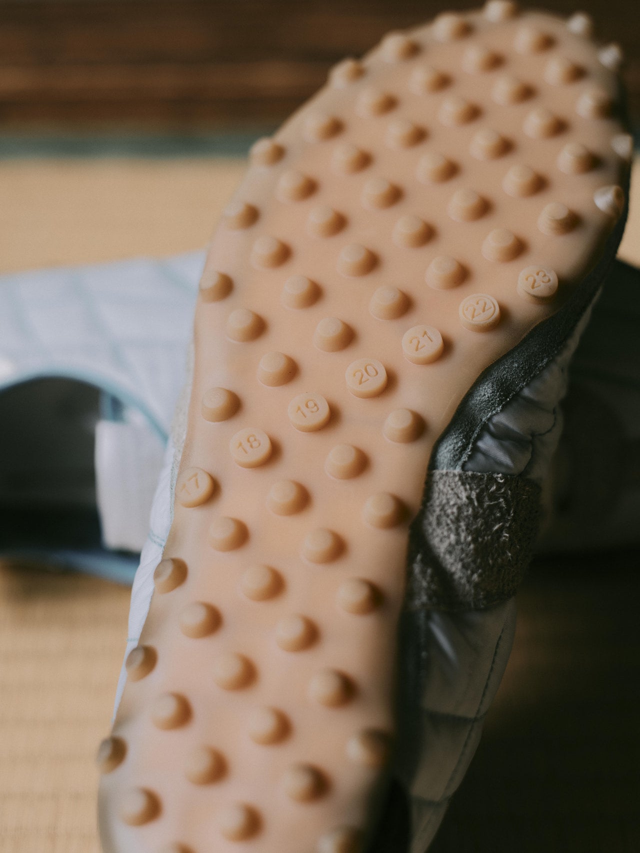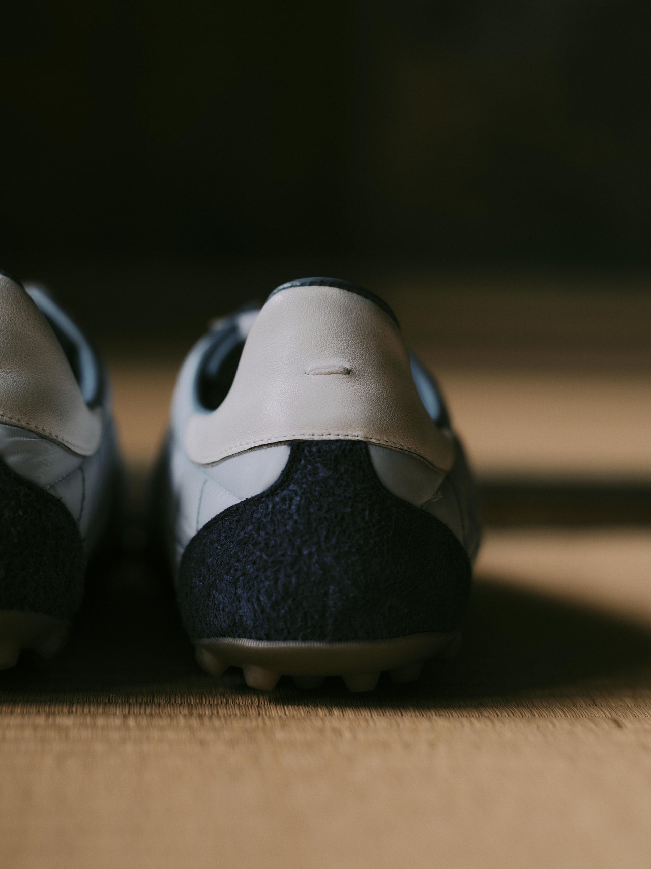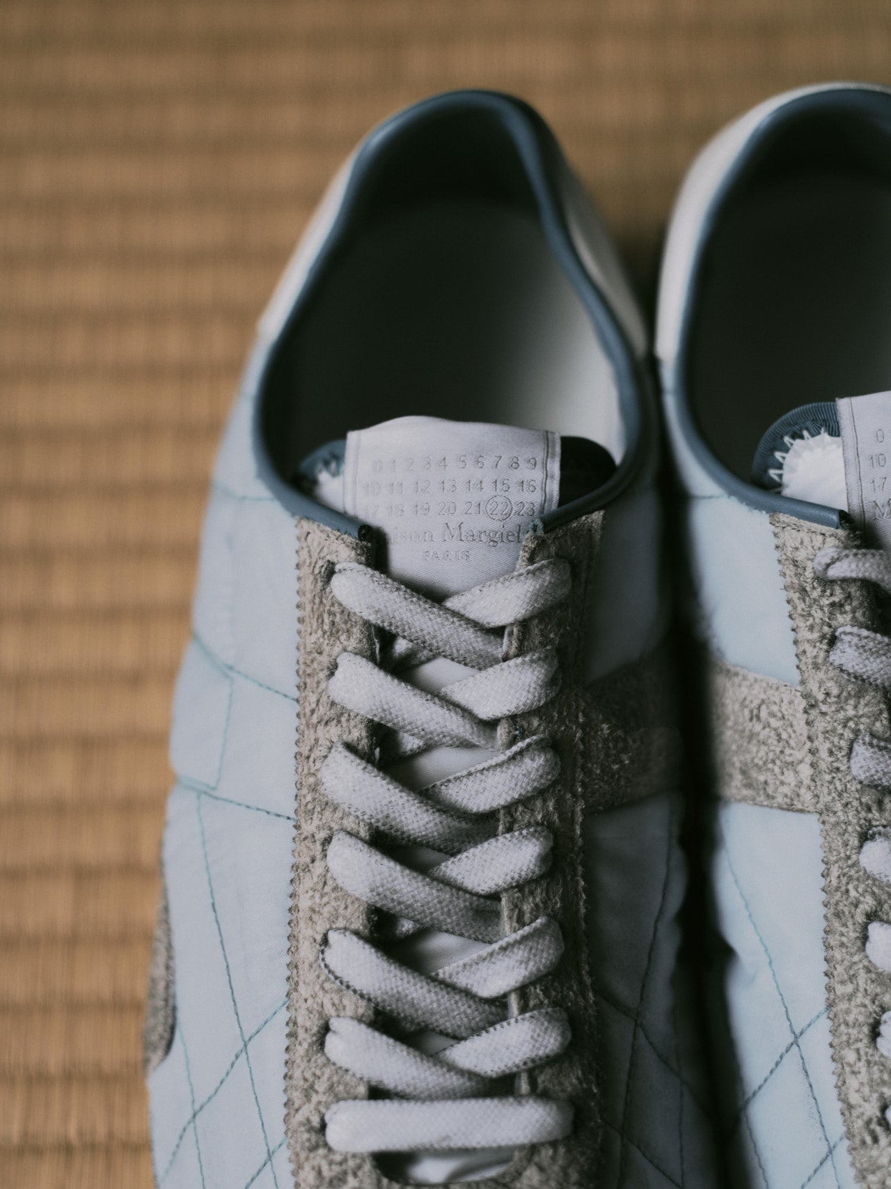 「上質な素材を使用しつつ、ヴィンテージ加工を施したシューレースを採用するなど、しっかりとレトロなスポーツスタイルが表現されていますね。メゾン マルジェラのナンバリングが刻まれたアウトソールや、シグネチャーの白いステッチが入ったヒールカウンターのディテールにも注目です」。