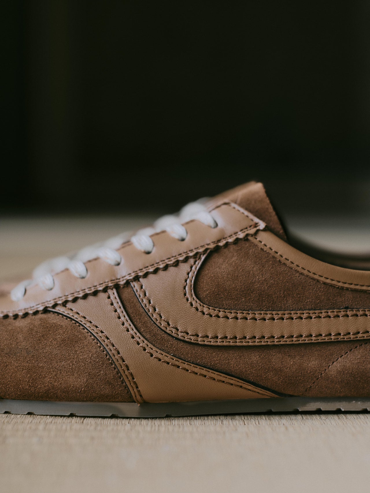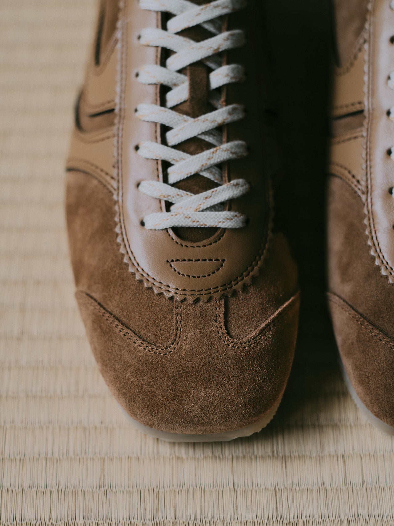 足を優しく包み込む余分のないシルエットと薄いシグネチャーソールが特徴的な70年代のマラソンスピリットにインスパイアされたスエードスニーカー。アッパーのスエードとレザーを組み合わせた素材はカジュアルにもモードにも合い、品の良い大人なスニーカースタイルを演出してくれる。