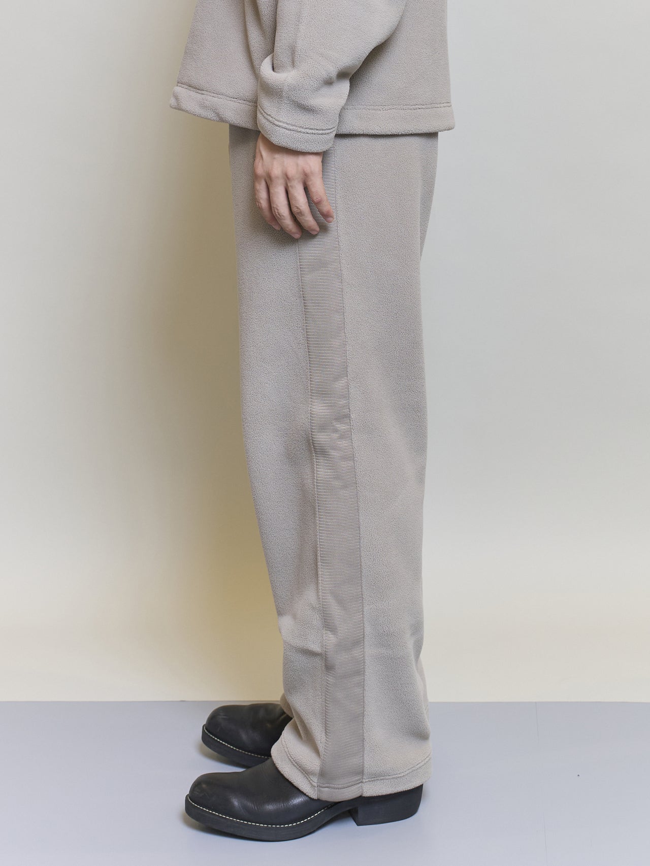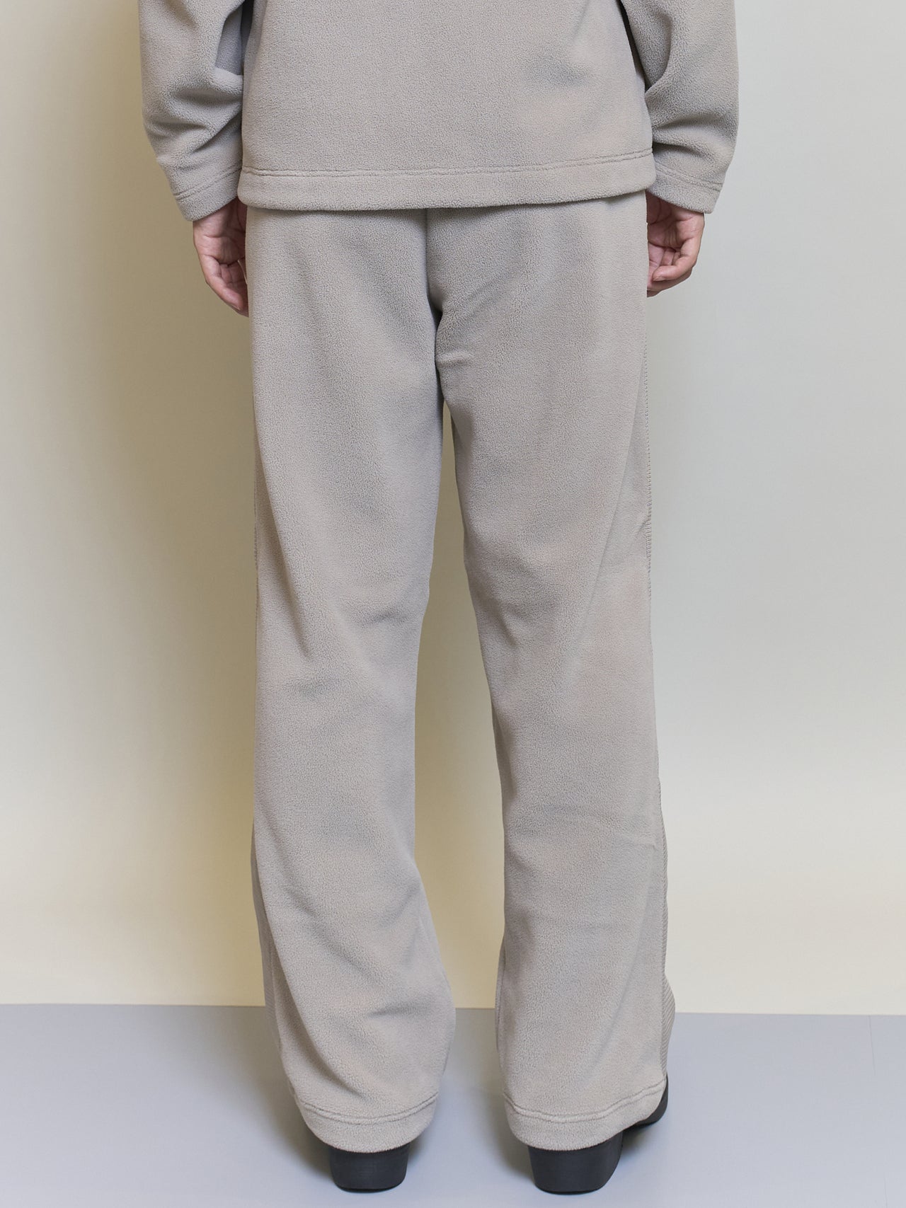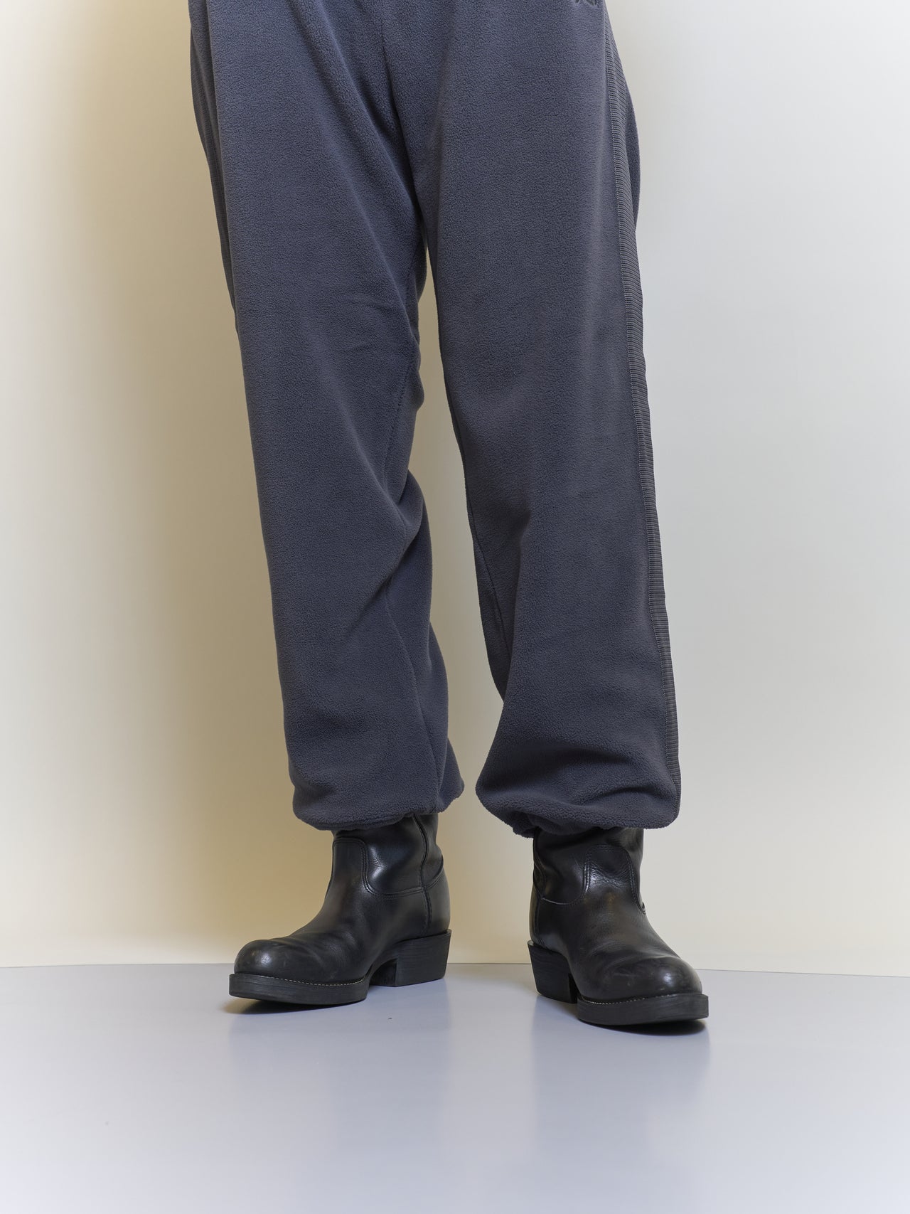 編集E 最後はフリースパンツ。個人的に本コラボレーションコレクションの中で一、二を争うのがグレーのフリースパンツなんだよね。同色のバタフライロゴの刺繍をオン。裾にはドローコードがついていてシルエットをアレンジできるのがいい。