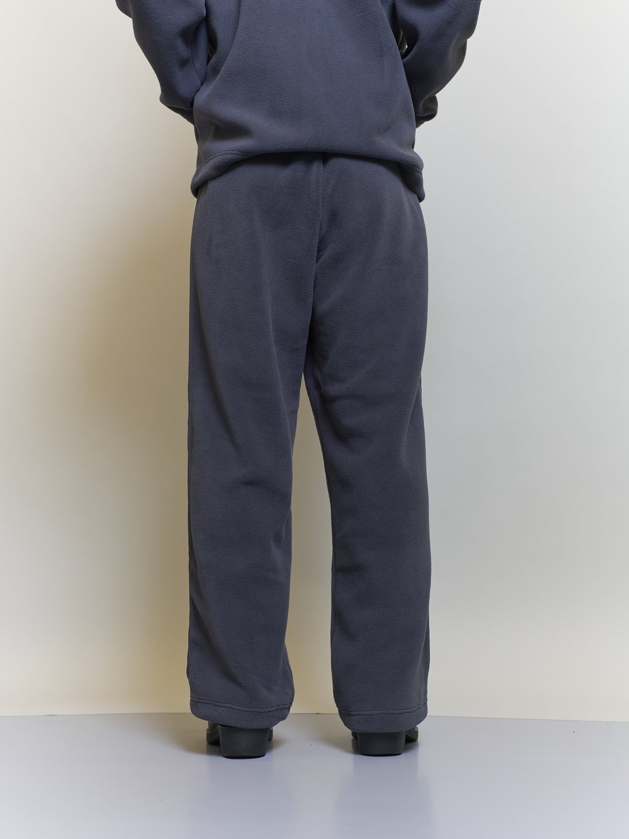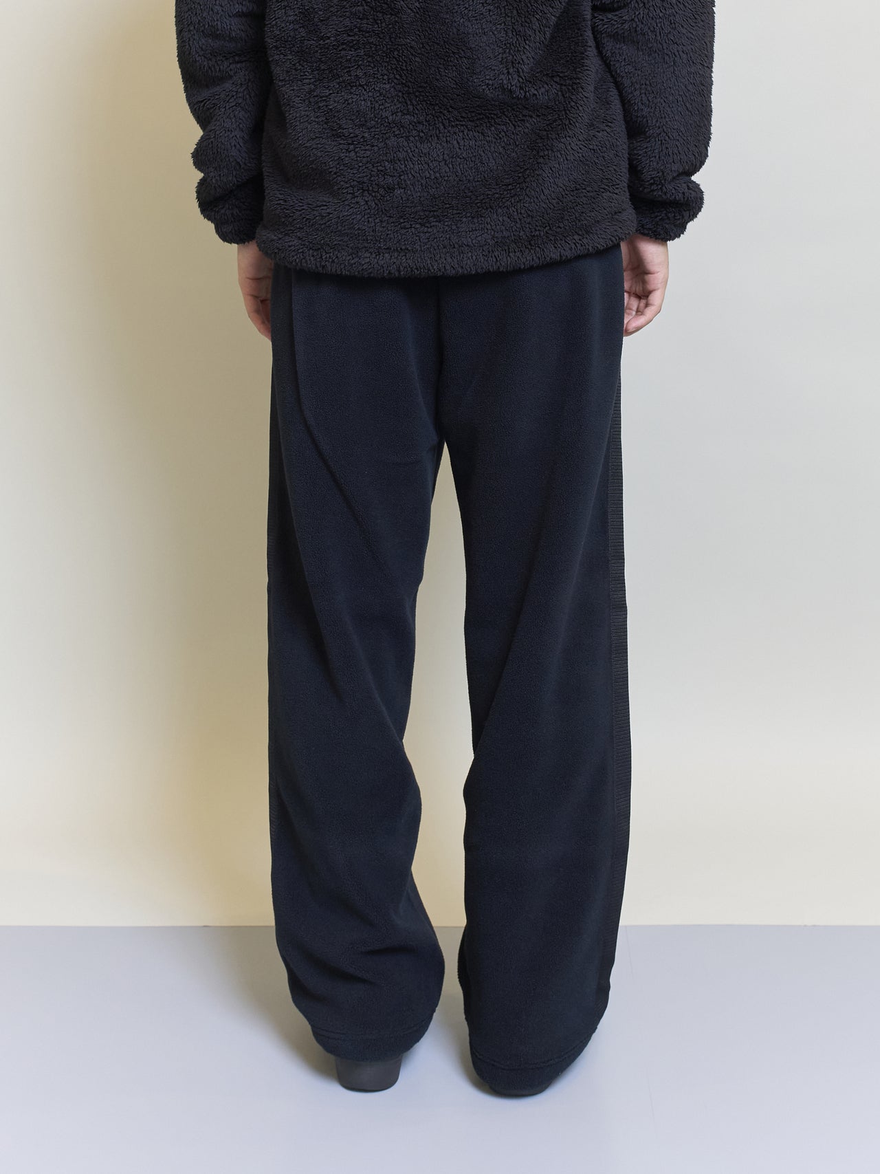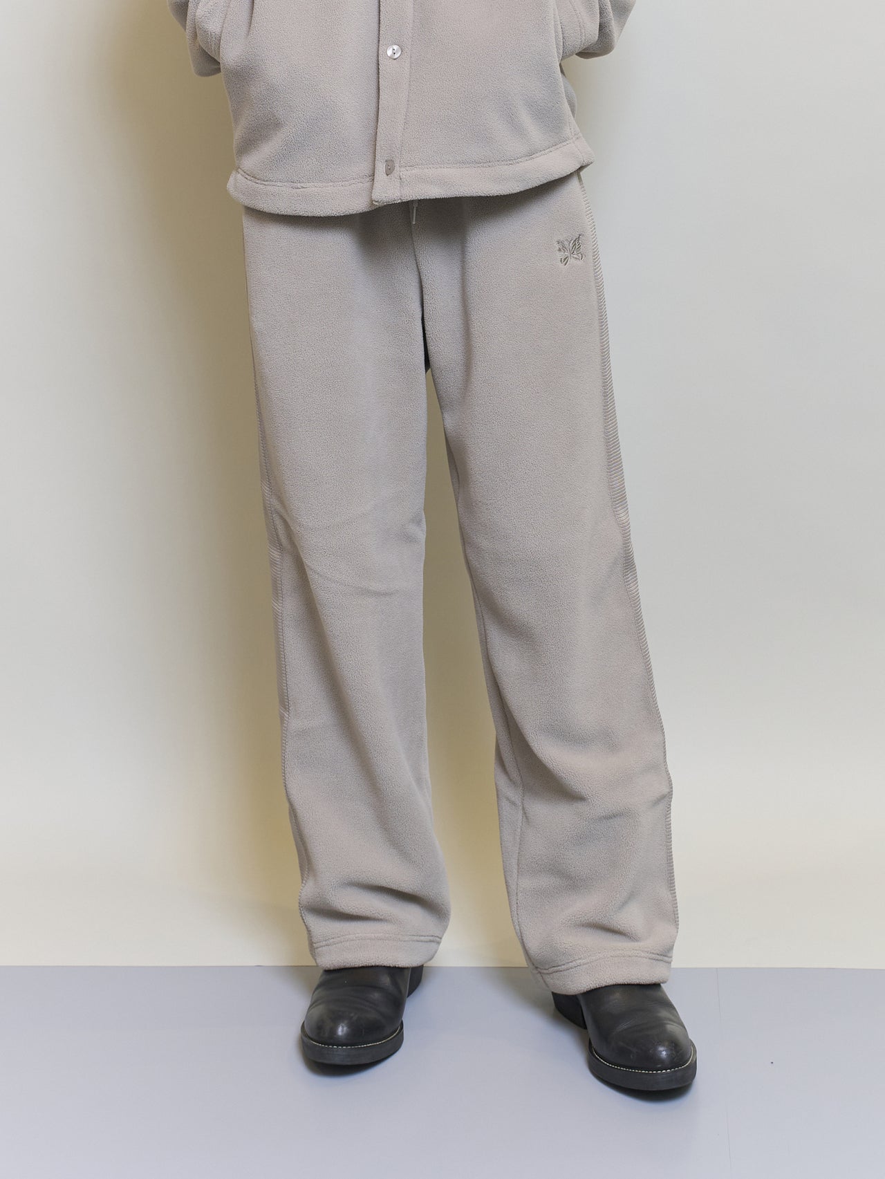 編集E 最後はフリースパンツ。個人的に本コラボレーションコレクションの中で一、二を争うのがグレーのフリースパンツなんだよね。同色のバタフライロゴの刺繍をオン。裾にはドローコードがついていてシルエットをアレンジできるのがいい。