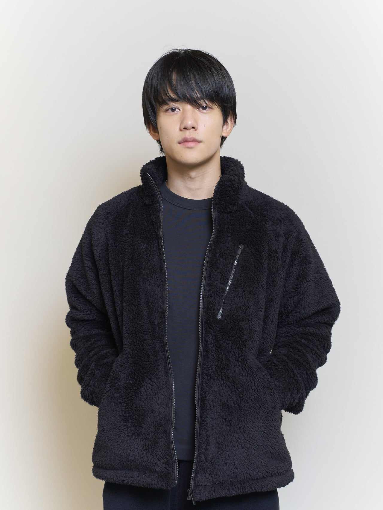 樋之津 まずはフリースジャケットから試着! デザインは1970年代のヴィンテージアイテムから着想を得ているそうです。毛足が長く肉厚なフリース素材なので、軽くてやわらかくて暖かい! それでいてお手入れが簡単なのも嬉しいポイント。
