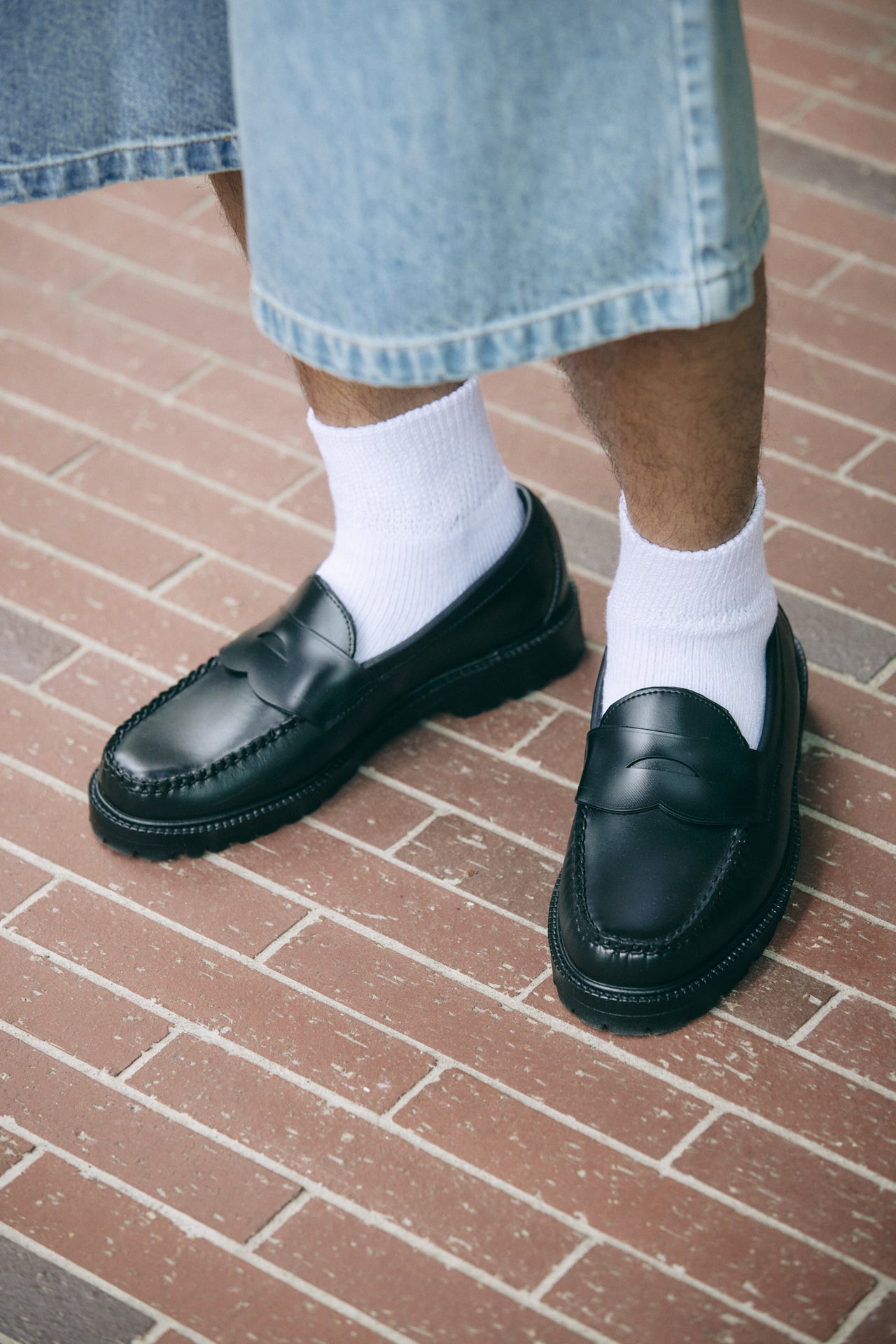 「ジーエイチバスのローファーは、前回のモデルスナップに出演した際も履いていたお気に入りの靴です」。