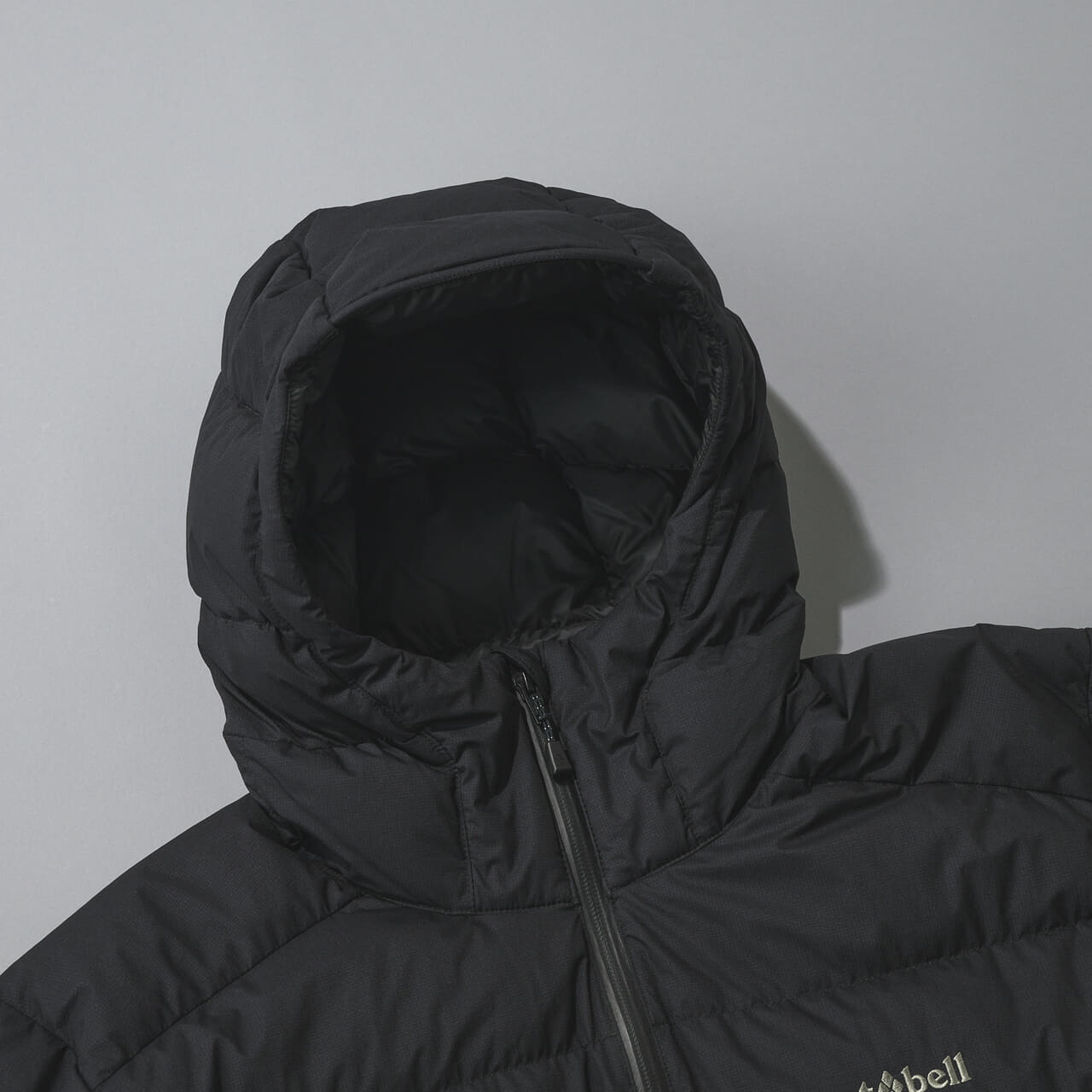 「アルパインダウン ジャケット」にヘルメット対応のフードを融合して作られた「アルパインダウン パーカ」。生地やEXダウンは同じものを使いながら、頭頂部までしっかり保温してくれるパーカタイプになっており、通勤通学はもちろん、厳冬期のアウトドアでも大活躍する。