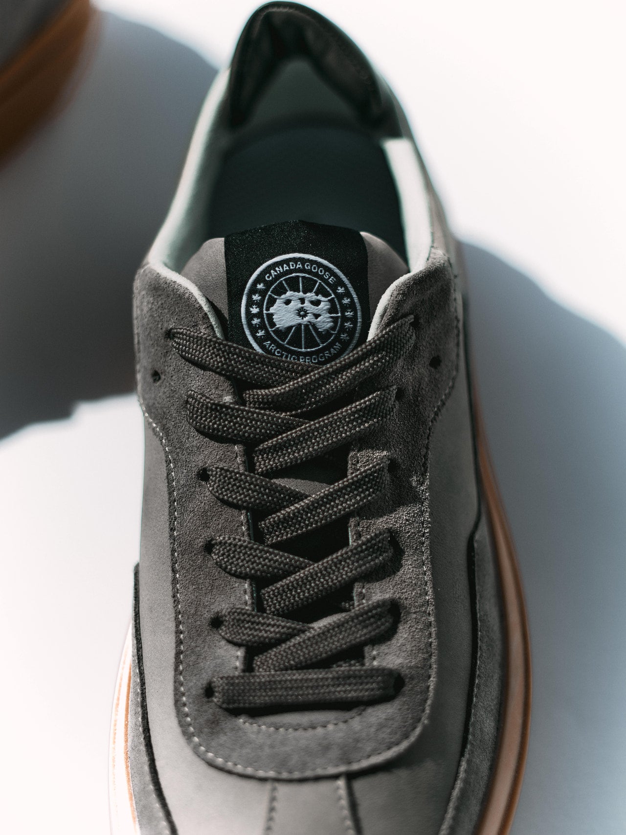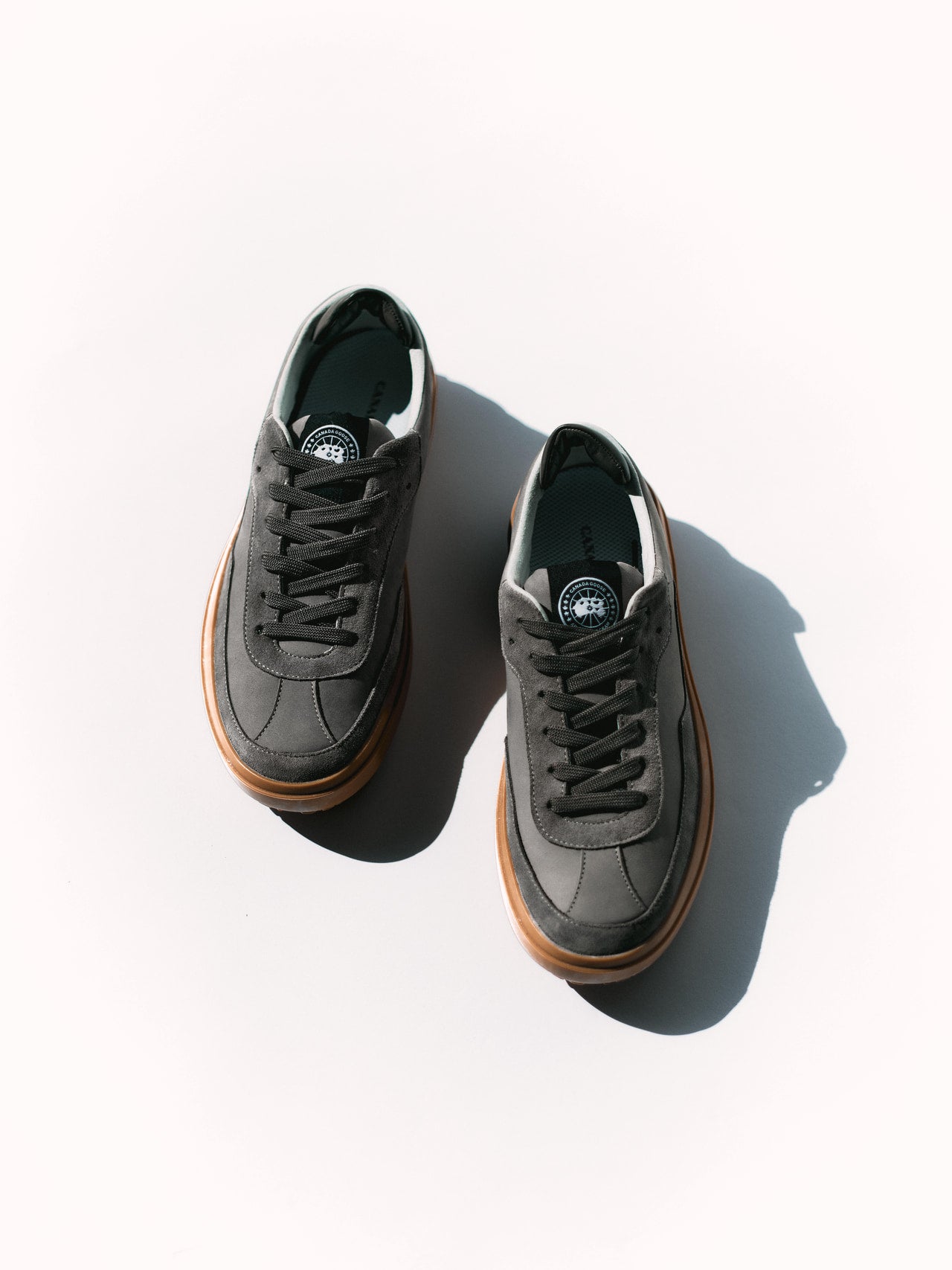 「カナダグースはダウンだけでなくスニーカーも最強でした。足になじむレザーアッパーに、動きやすいソールで文句なしの履き心地。ダッドなチャコールグレーとガムソールの配色もいい。控えめなのでどんなスタイルにも合うと思います」。