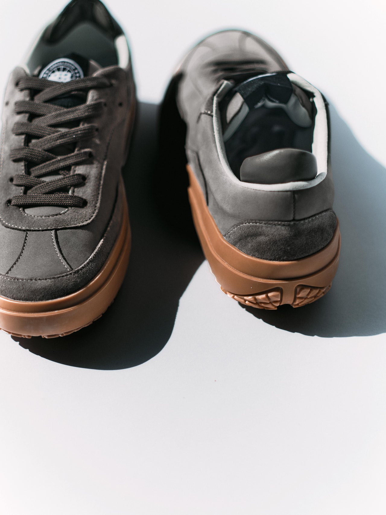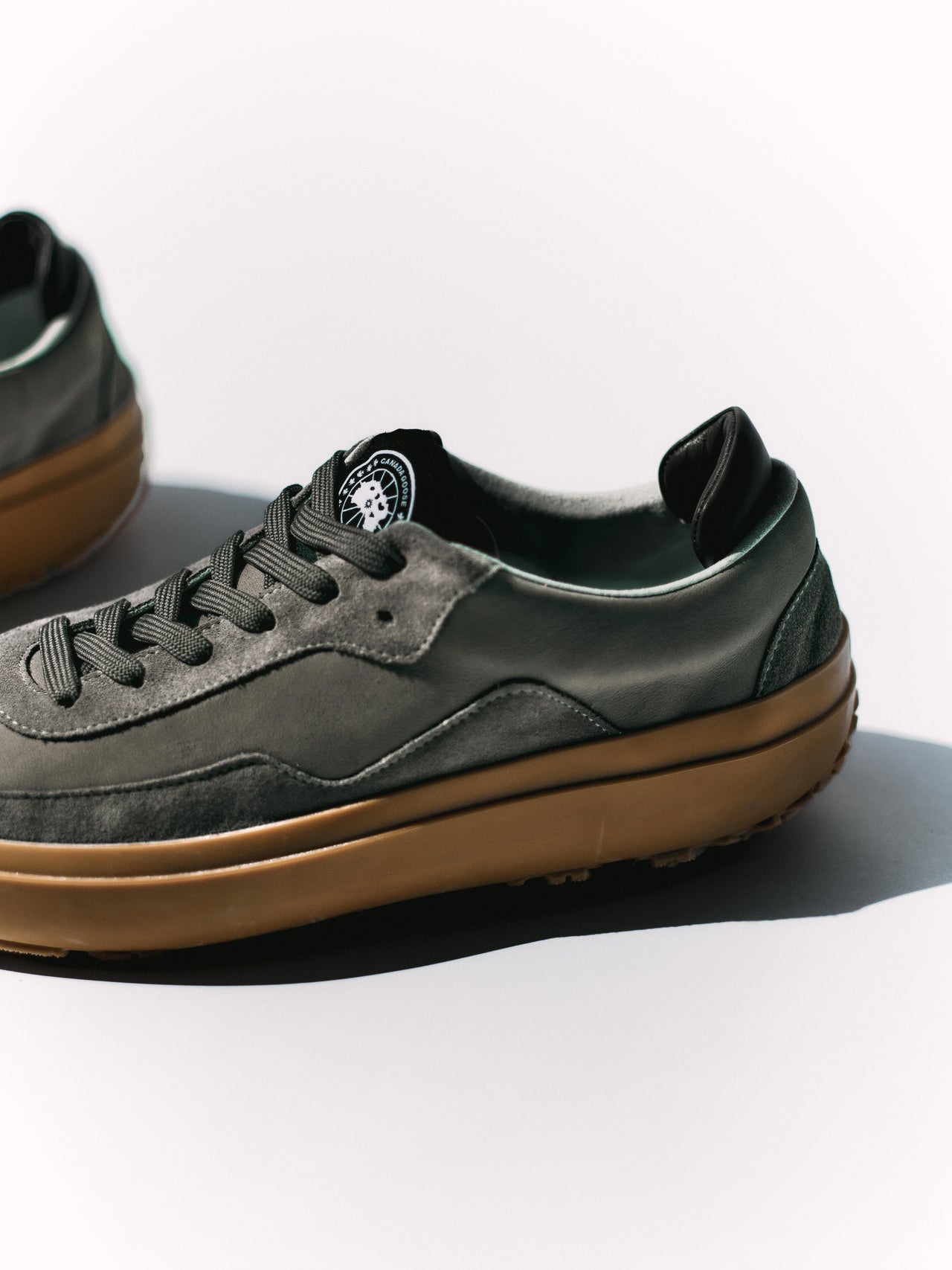 アッパーは耐久性、快適性、汎用性を備えたレザーでヌバックとスエードのコンビネーション。耐久性に優れたアウトソールは軽量で、高めのサイドウォールが保護性能を提供する。またトレッドには細い溝があり、優れたグリップ力と柔軟性を持ち合わせている。カップソールのデザインもアイコニック。