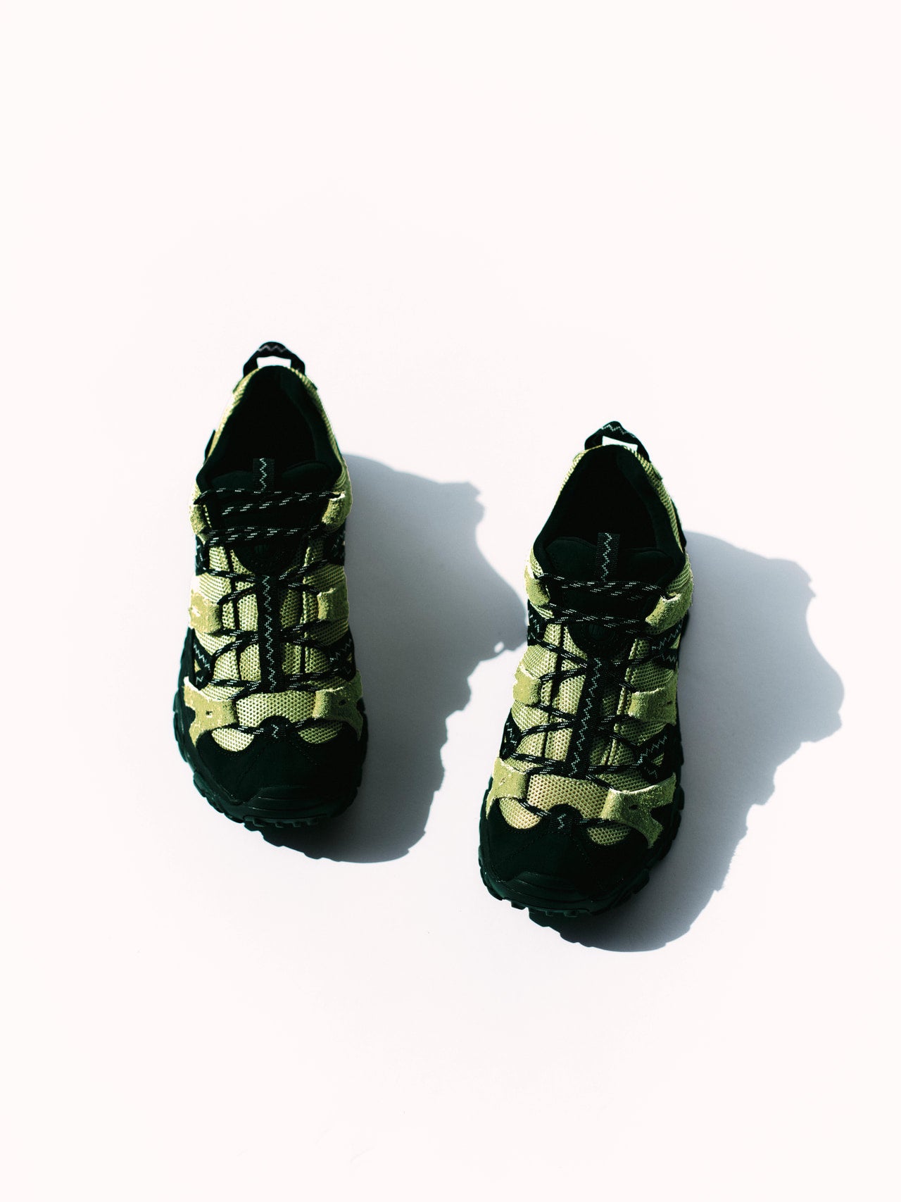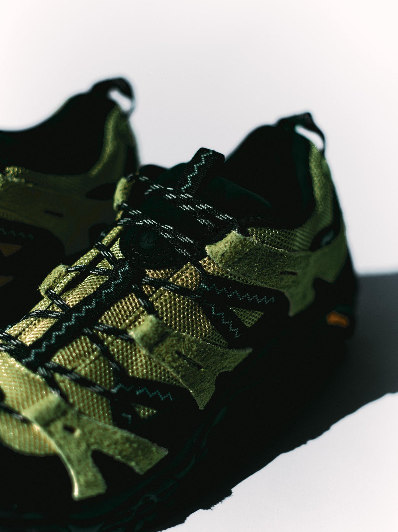 服好きたちからも熱い支持を集めるメレルとグラミチのコラボレーションモデル「MOAB 2 SIREN」。両者がタッグを組むのは今回が初めてだ。「MOAB」の象徴的なシルエットに再解釈された「SIREN WEB」コレクションのアッパーデザインを採用。そこに快適性とグリップ力を兼ね備え、多くのアウトドアマンに信頼された「MOAB 2」のミッドソールとアウトソールを組み合わせた。