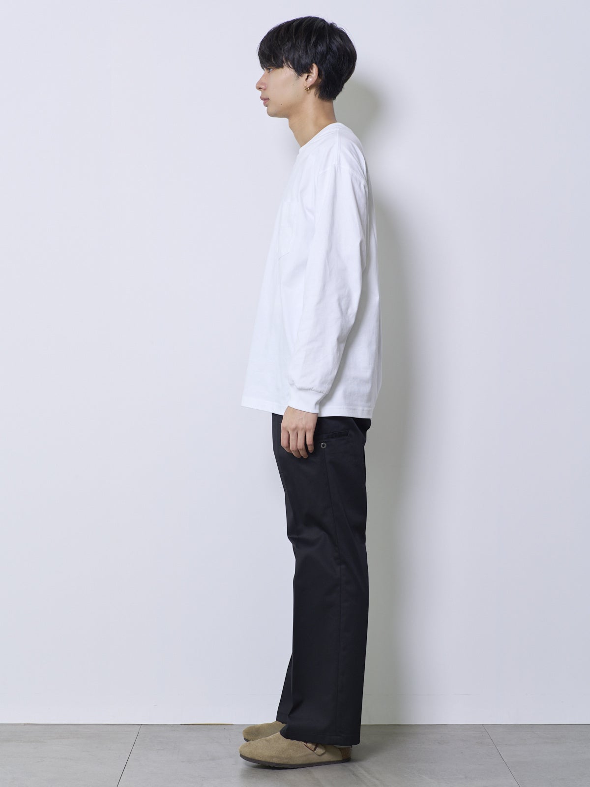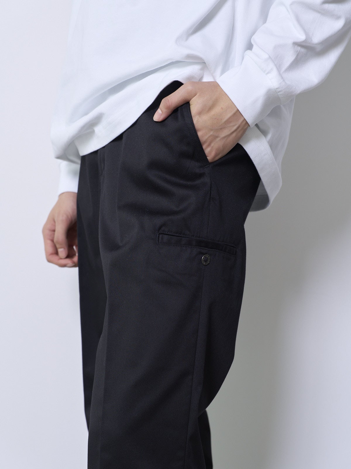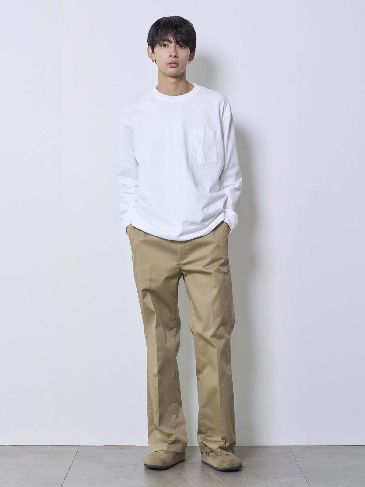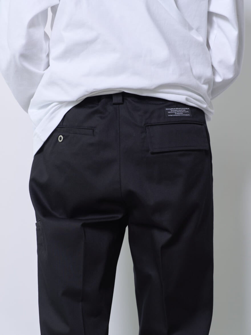 松井「脇のシームをツイストしたデザインで、程よい太さのシルエットなので全体的に綺麗めな着こなしに。同素材のカバーオールジャケットとのセットアップも可能。お手入れも簡単なので気軽に日常履きができます!」
