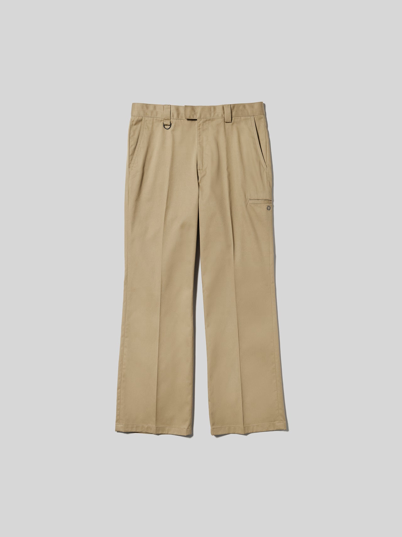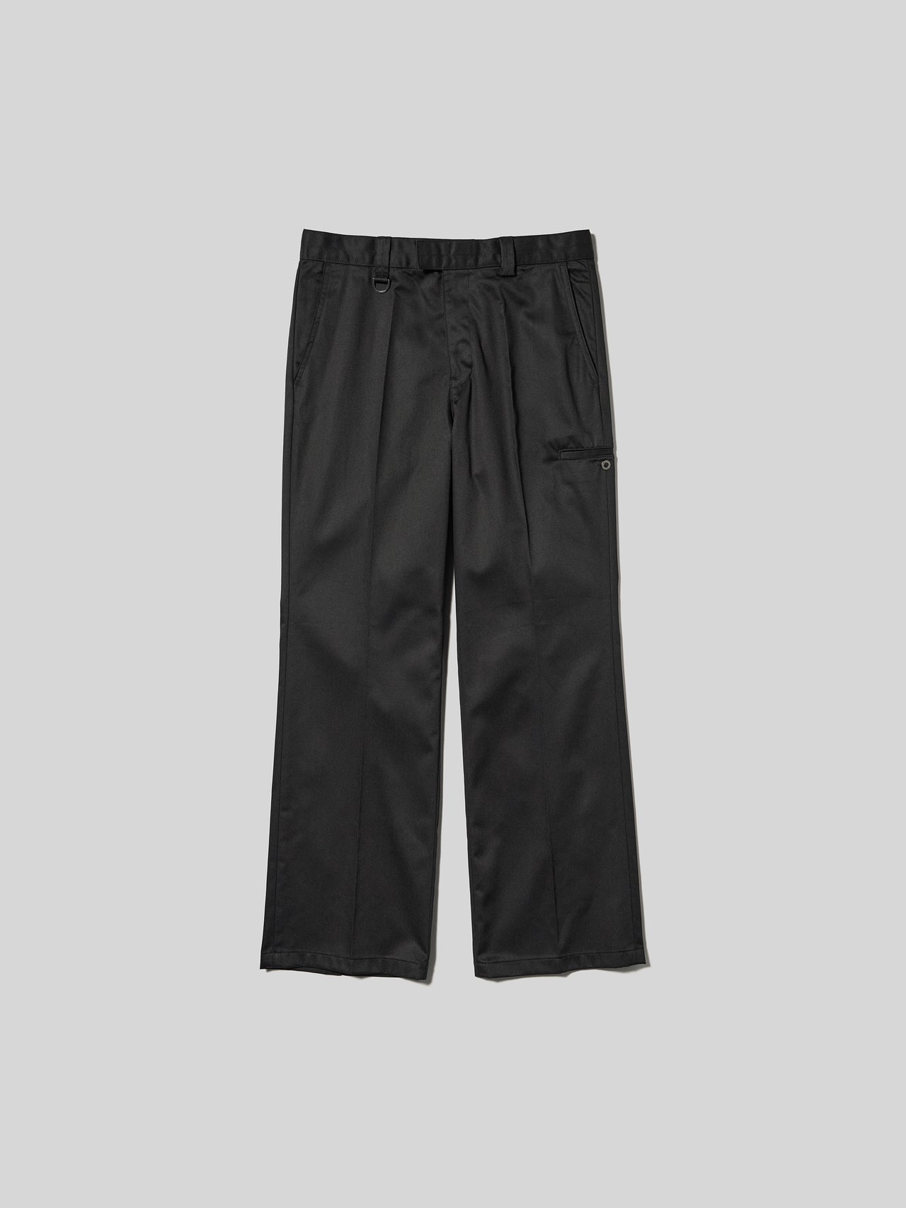 松井「脇のシームをツイストしたデザインで、程よい太さのシルエットなので全体的に綺麗めな着こなしに。同素材のカバーオールジャケットとのセットアップも可能。お手入れも簡単なので気軽に日常履きができます!」