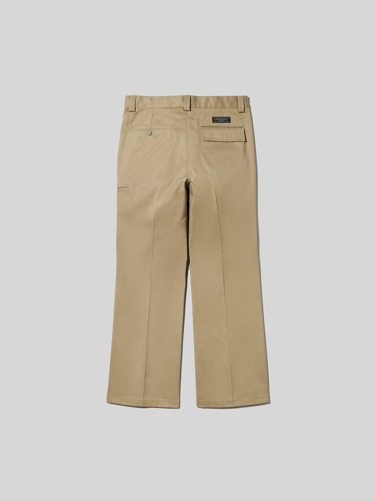 松井「少し光沢感のある生地はチノ素材にポリエステルが混じっているので、ストレッチが効いて動きやすい! 程よく余裕もあり、フレアシルエットなのでラフに着こなせます」