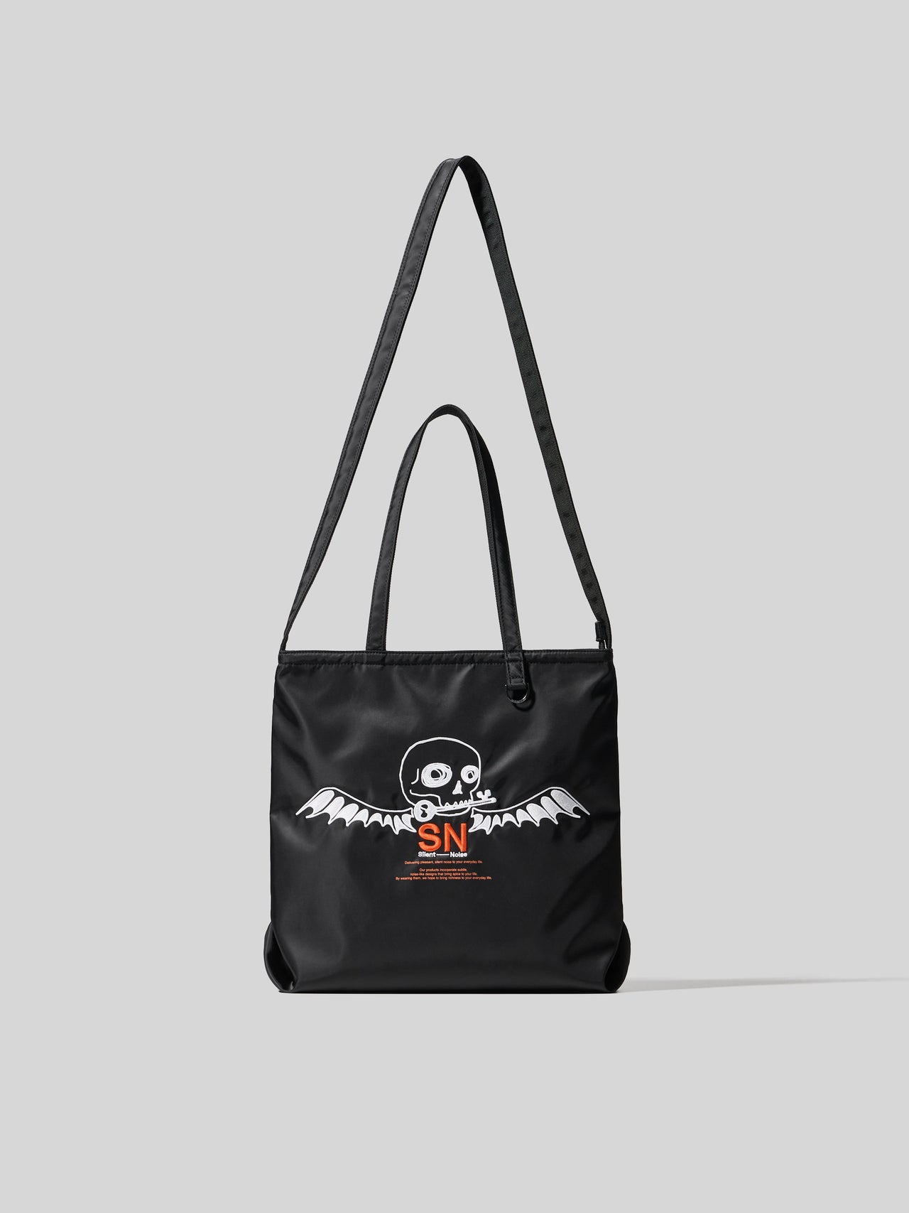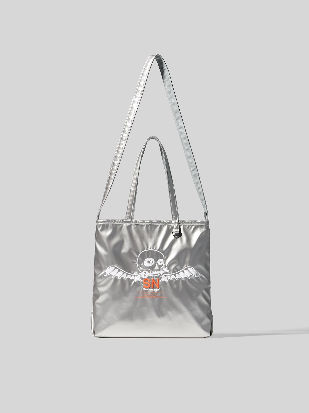 松井「A4サイズが入る使いやすいサイズ感で、トートバッグと肩斜め掛けができるショルダーバッグの2WAY仕様になっています。フロントには高橋盾氏描きおろしのオリジナルグラフィックと、“Silent Noise”ロゴを刺繍で表現したデザインも。アバンギャルドな世界観が前面に出ています!」
