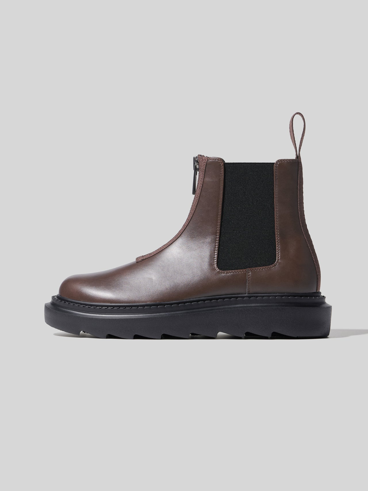 松井「特徴は着脱しやすいセンタージップ。ゴツくなりすぎない程よいボリューム感とソールで足元に重心を持ってくることができ、全体のバランスを引き締める効果も。見た目は重ためですが、ブーツとは思えない軽い履き心地です!」