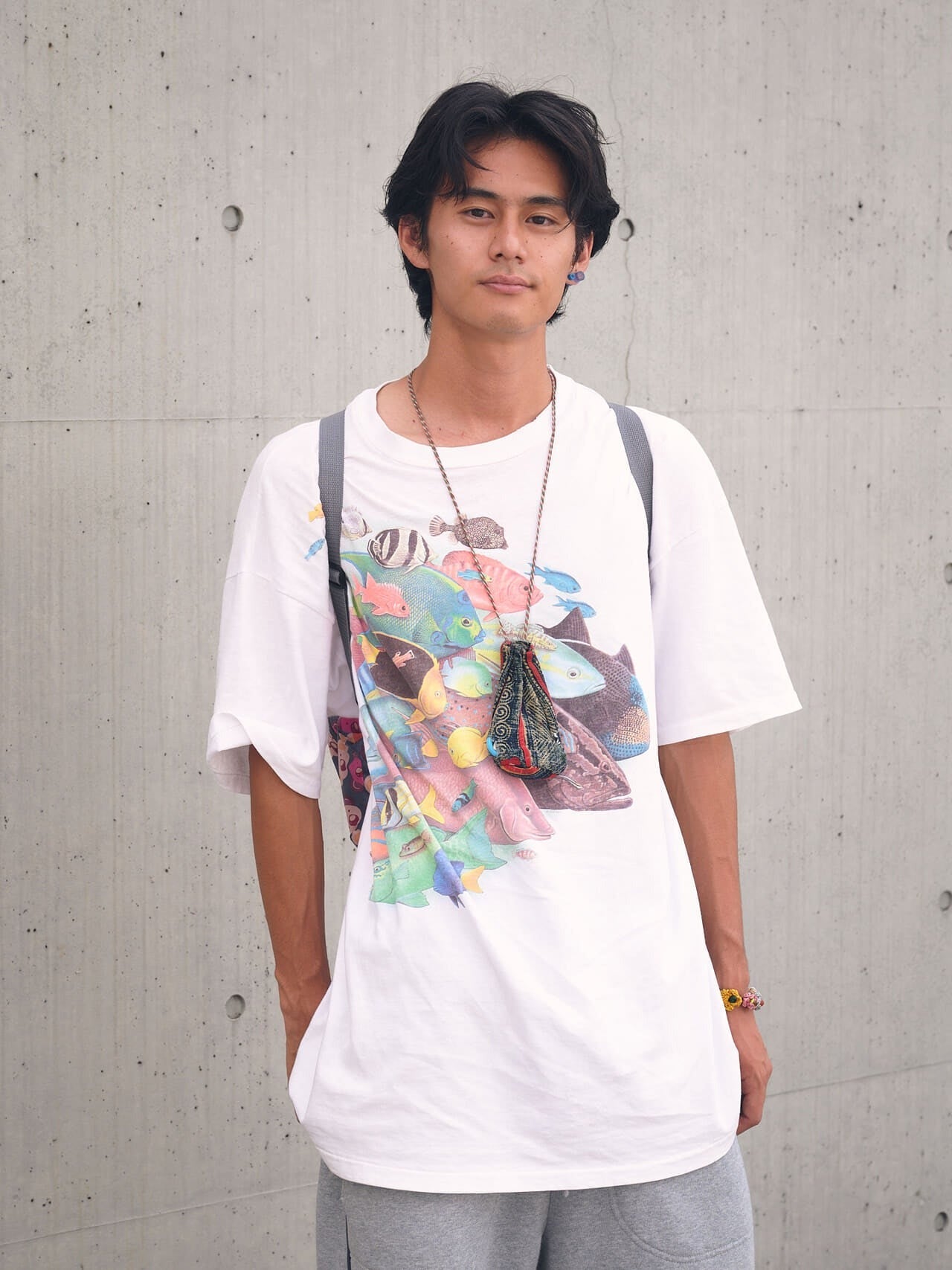 王道ブランドの古着をこよなく愛する。大人っぽいスニーカーで引き締めるスタイルが人気。