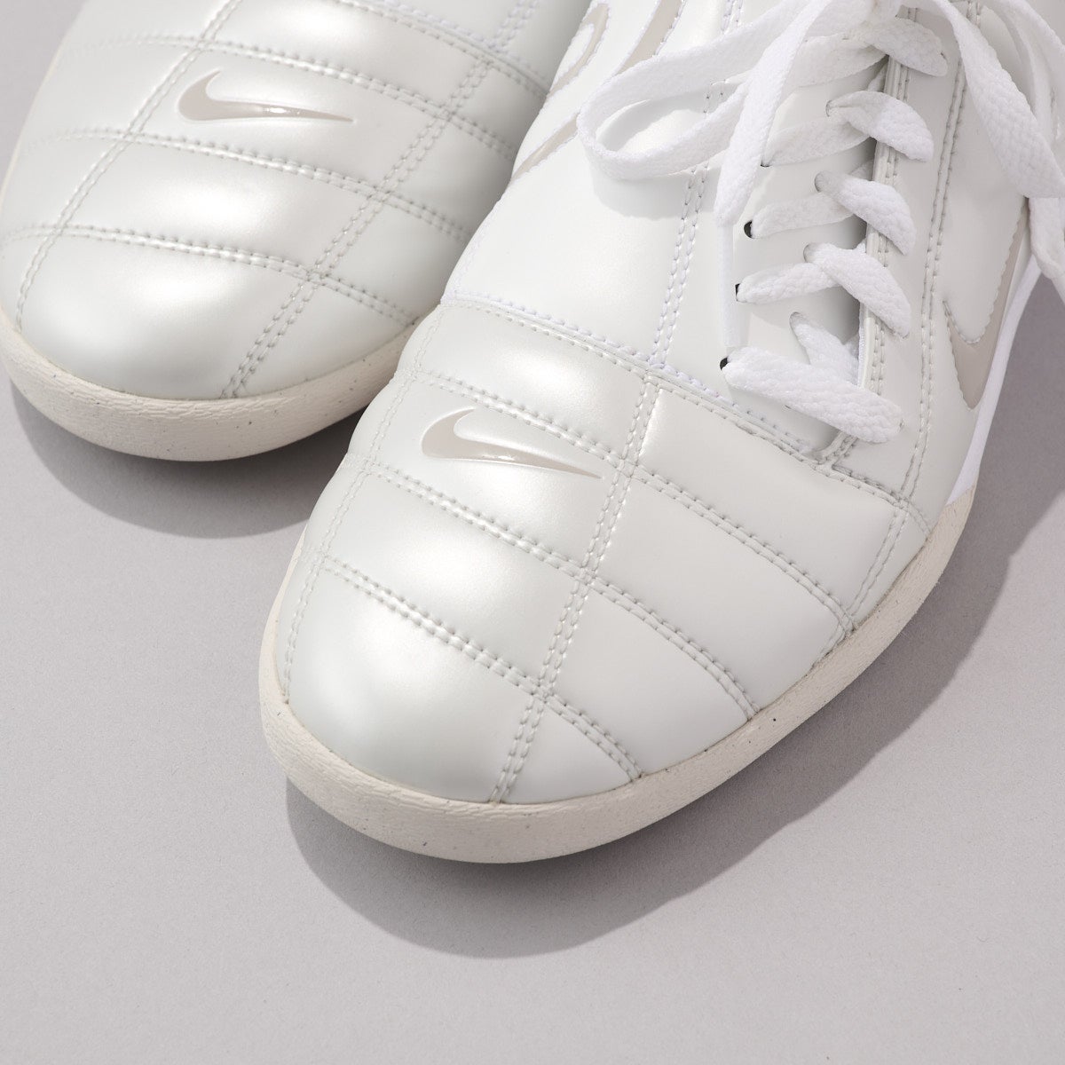オリジナルのキルティング加工のアッパーと非対称のシューレース構造はそのままに、ストリート仕様のフラットなラバーソールに置き換え。