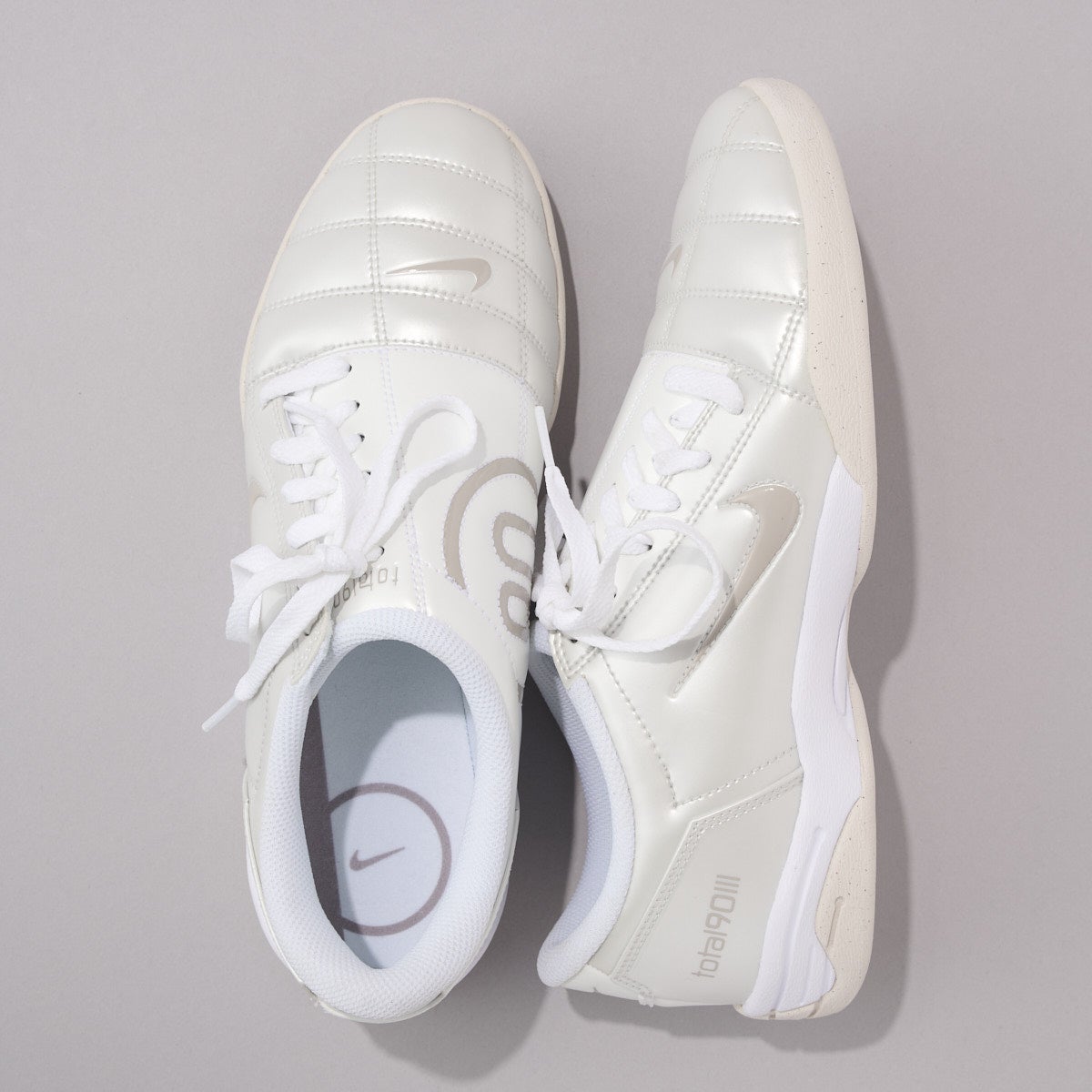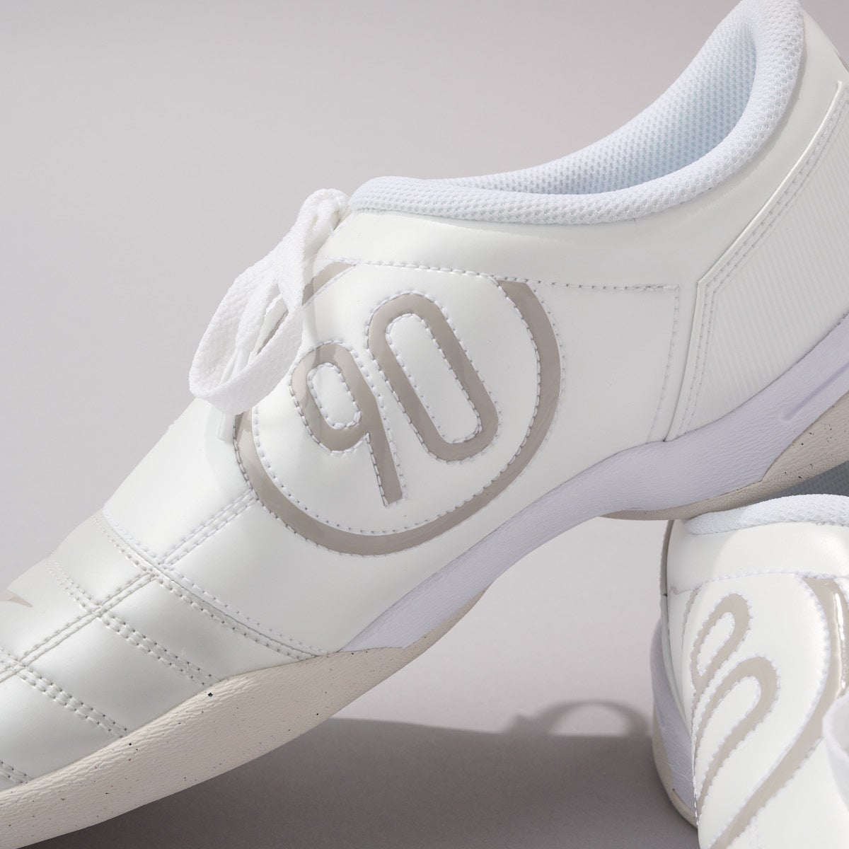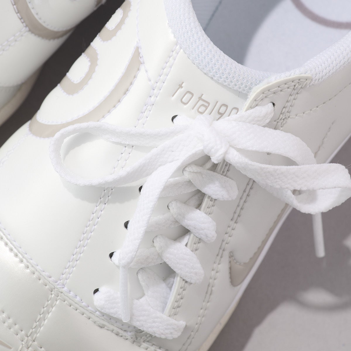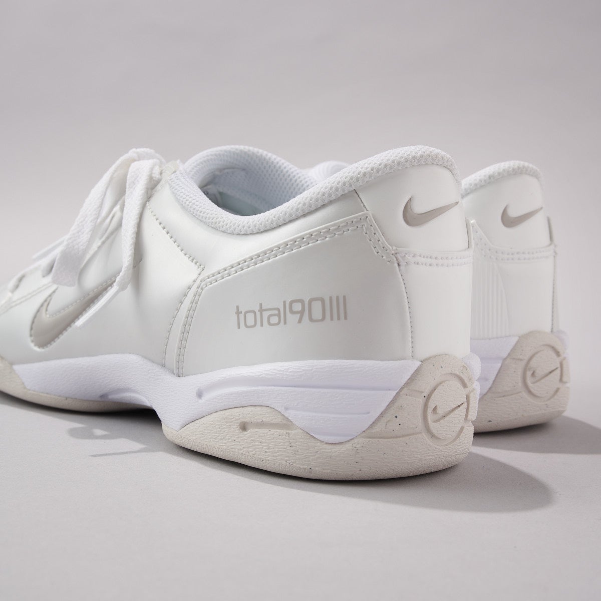 合成皮革のアッパーは程よい光沢感。両サイドには「Total 90」のロゴも配置されている。上品なホワイトカラーをベースに、淡いグレーのアクセントもGOODバランス。