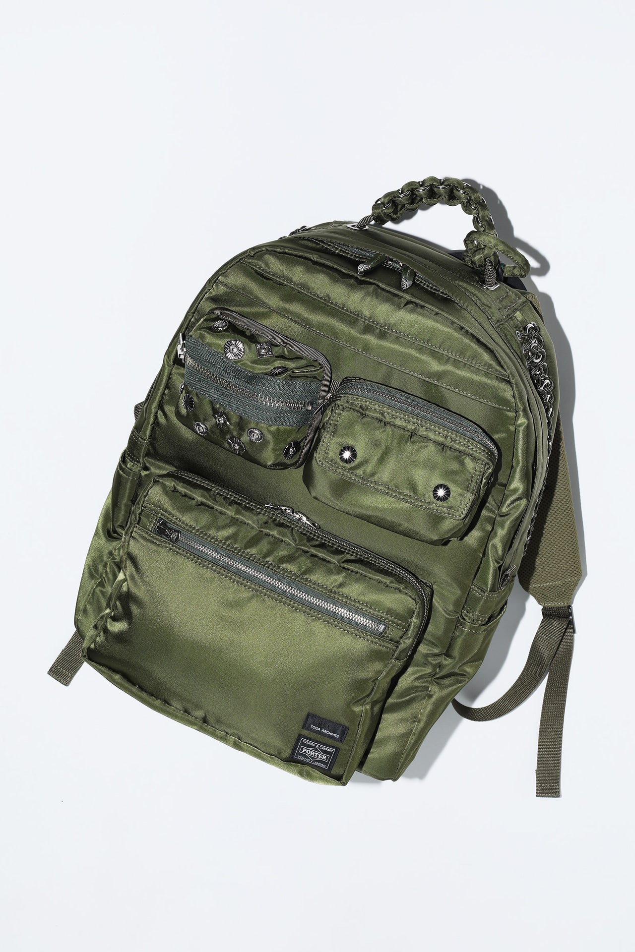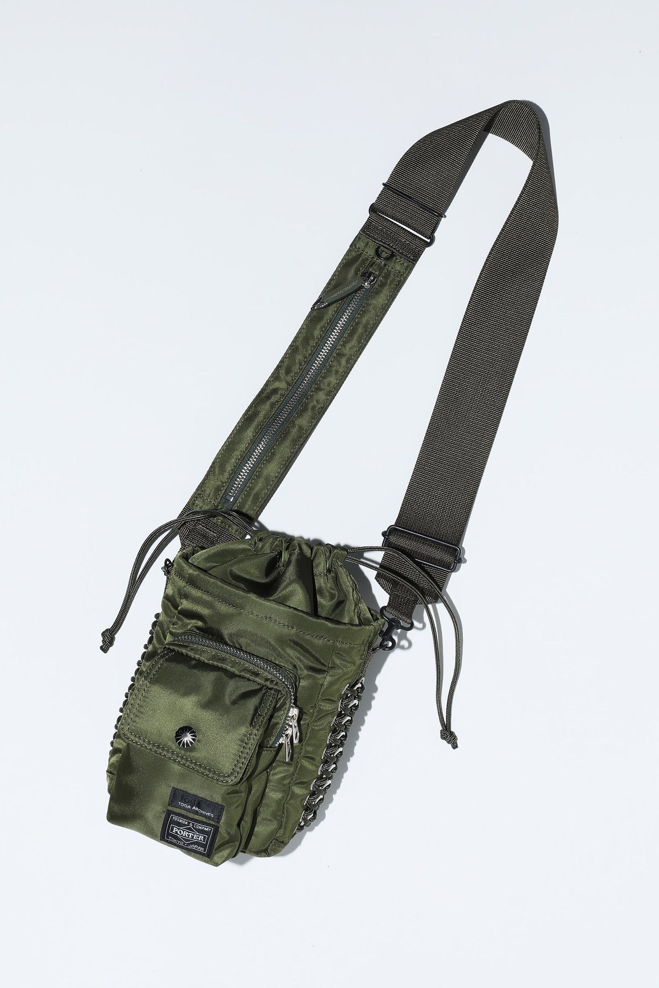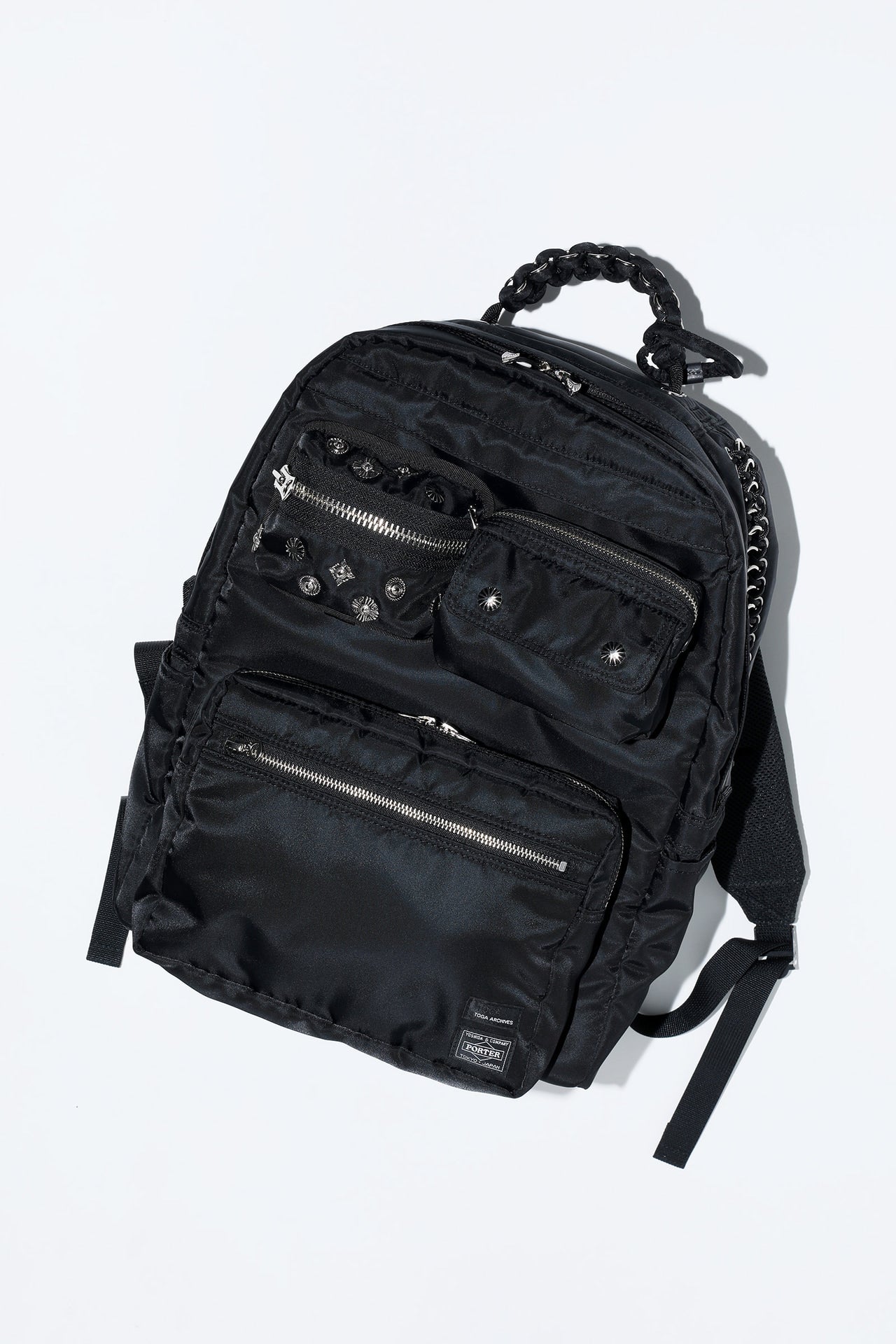 7回目となる今季は“旅”をテーマに掲げ、遠い場所から近所までさまざまなシチュエーションを想定したデザインに。高い機能性と実用性を備えたPORTERの技術に、ナイロン素材を編み込んだブレードハンドル、取り外しのできるポーチ、フォルムが変わるベルトなど、手作業でのTOGAらしいメタルディテールを全アイテムに組み込み、両ブランドの魅力を凝縮したコラボレーションになっている。