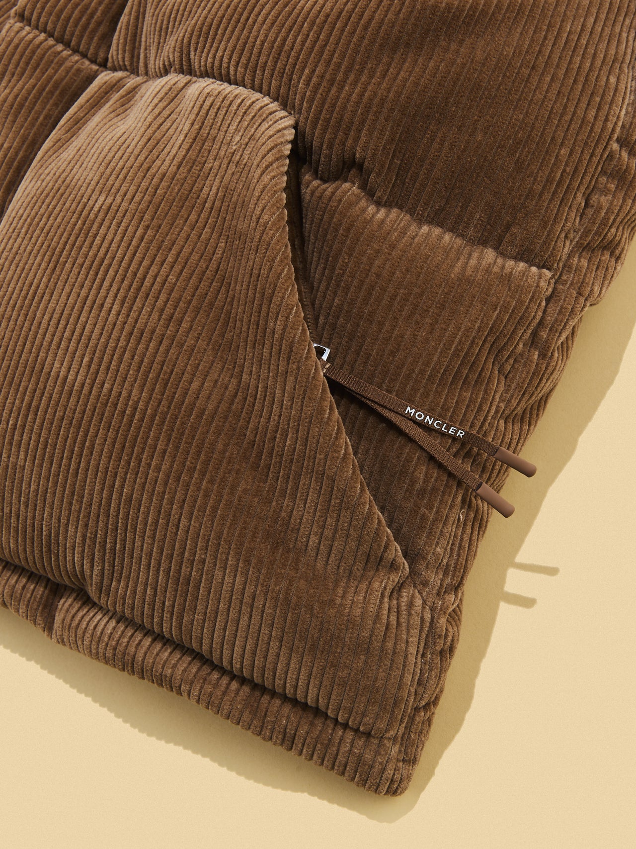 立体的なデザインが特徴のSerrant ショートダウンジャケット。コーデュロイ素材の洗練されたリブ仕上げを大きくデザイン。クラシックなボーダーキルティングとハイスタンドカラーの襟で仕上げられ、寒さが増す季節にも暖かさを約束する。Moncler Mayaを思わせるロゴ入りポケットもキュートだ。