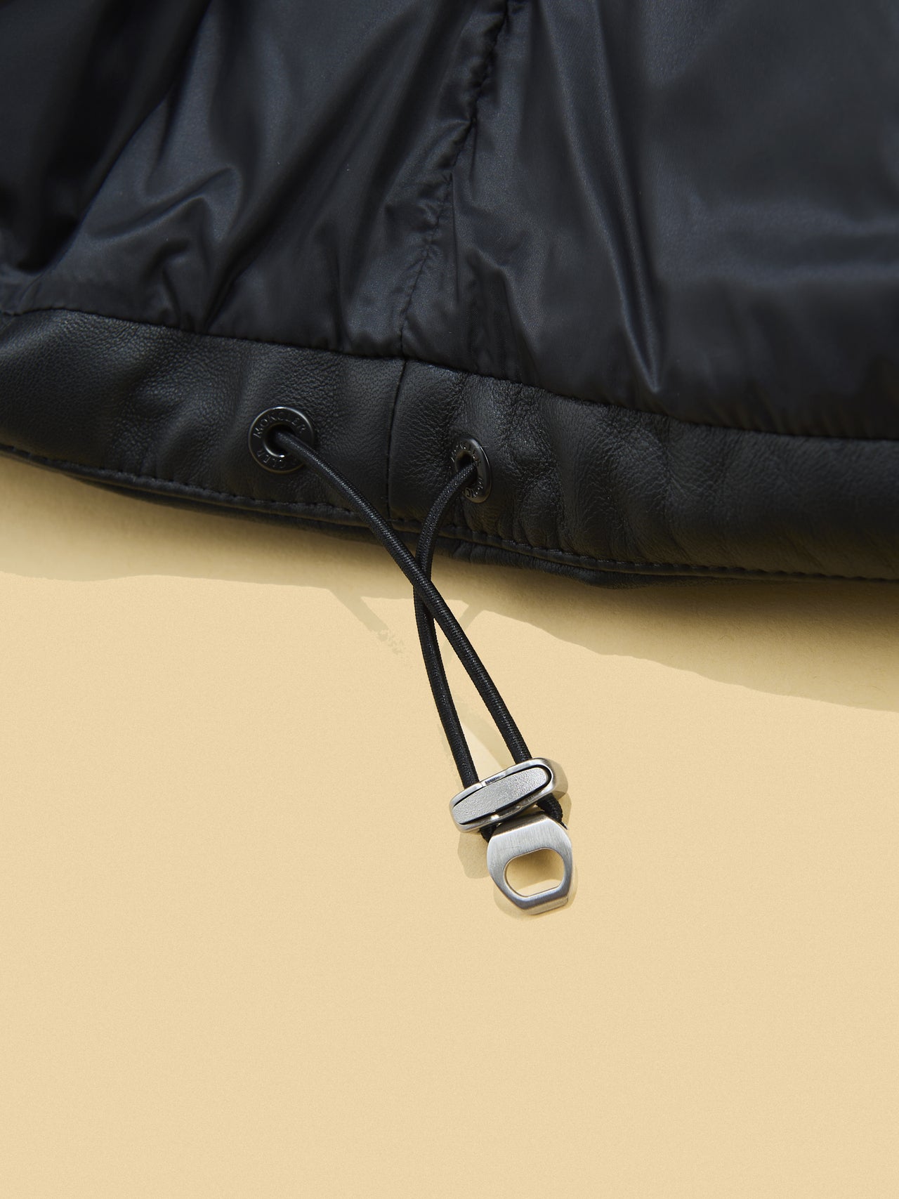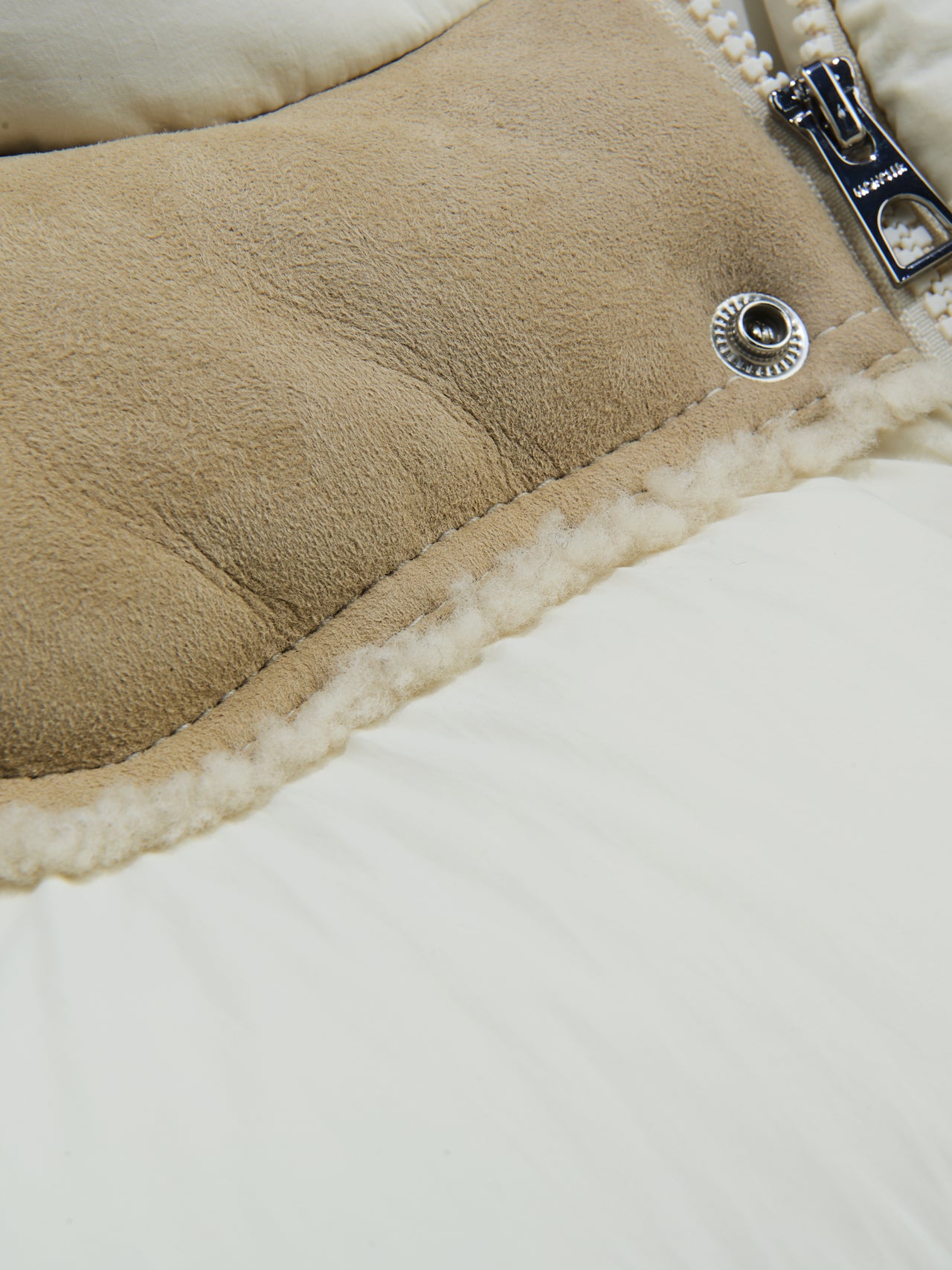 テクニカル素材とプレシャス素材を巧みに融合させたヴェリーヌ ショートダウンジャケット。柔らかな肌触りが特徴の軽量ナイロン素材、マイクロソフトを使用。そこに柔らかなスエードのアクセントを組み合わせて、エレガントな逸品に。異なる質感の相互作用が生み出すハーモニーを楽しんで。