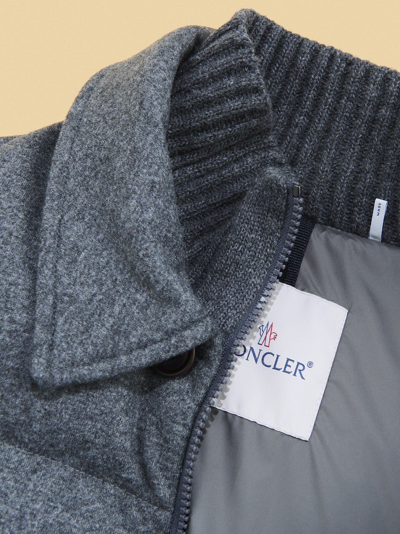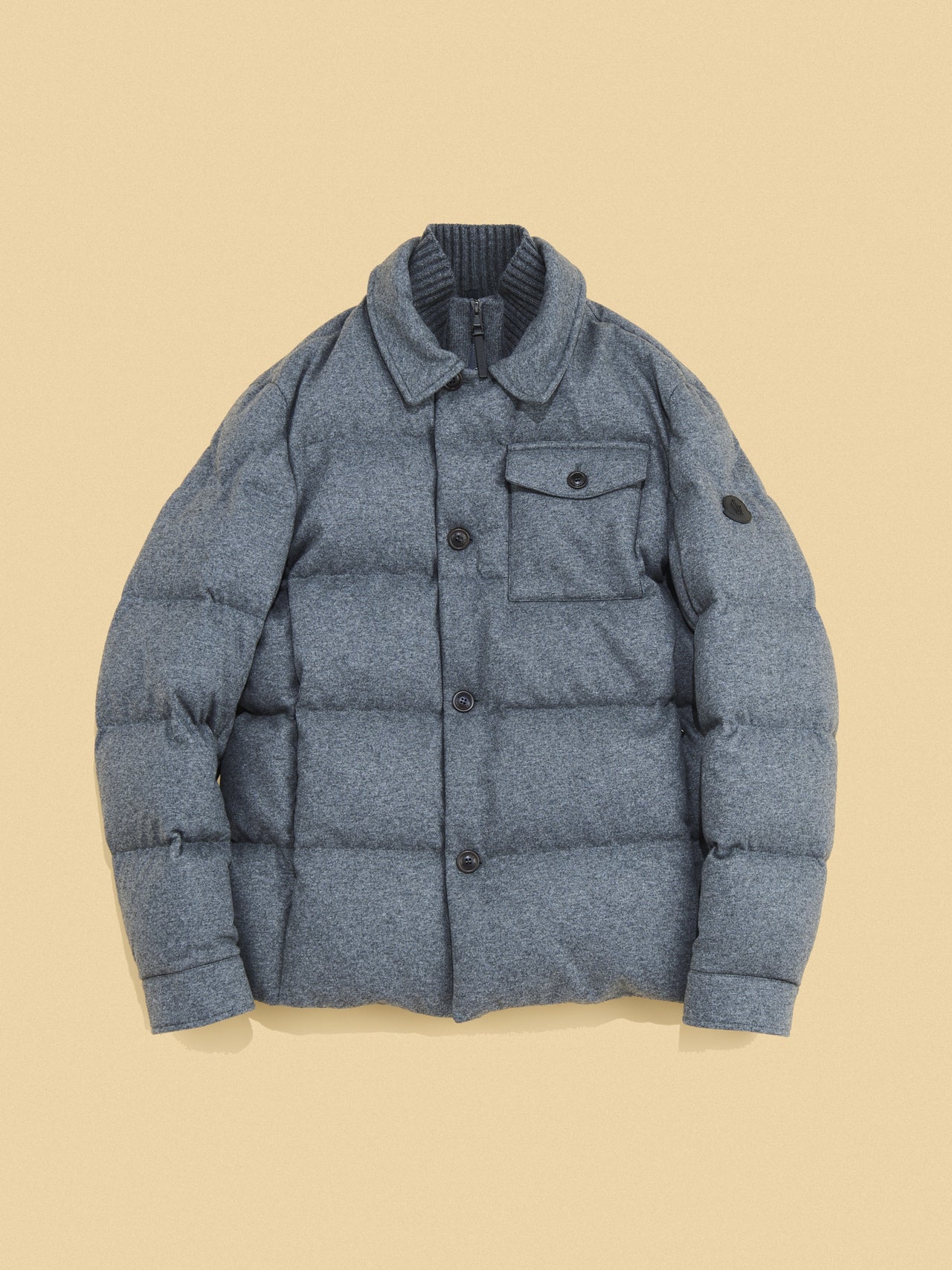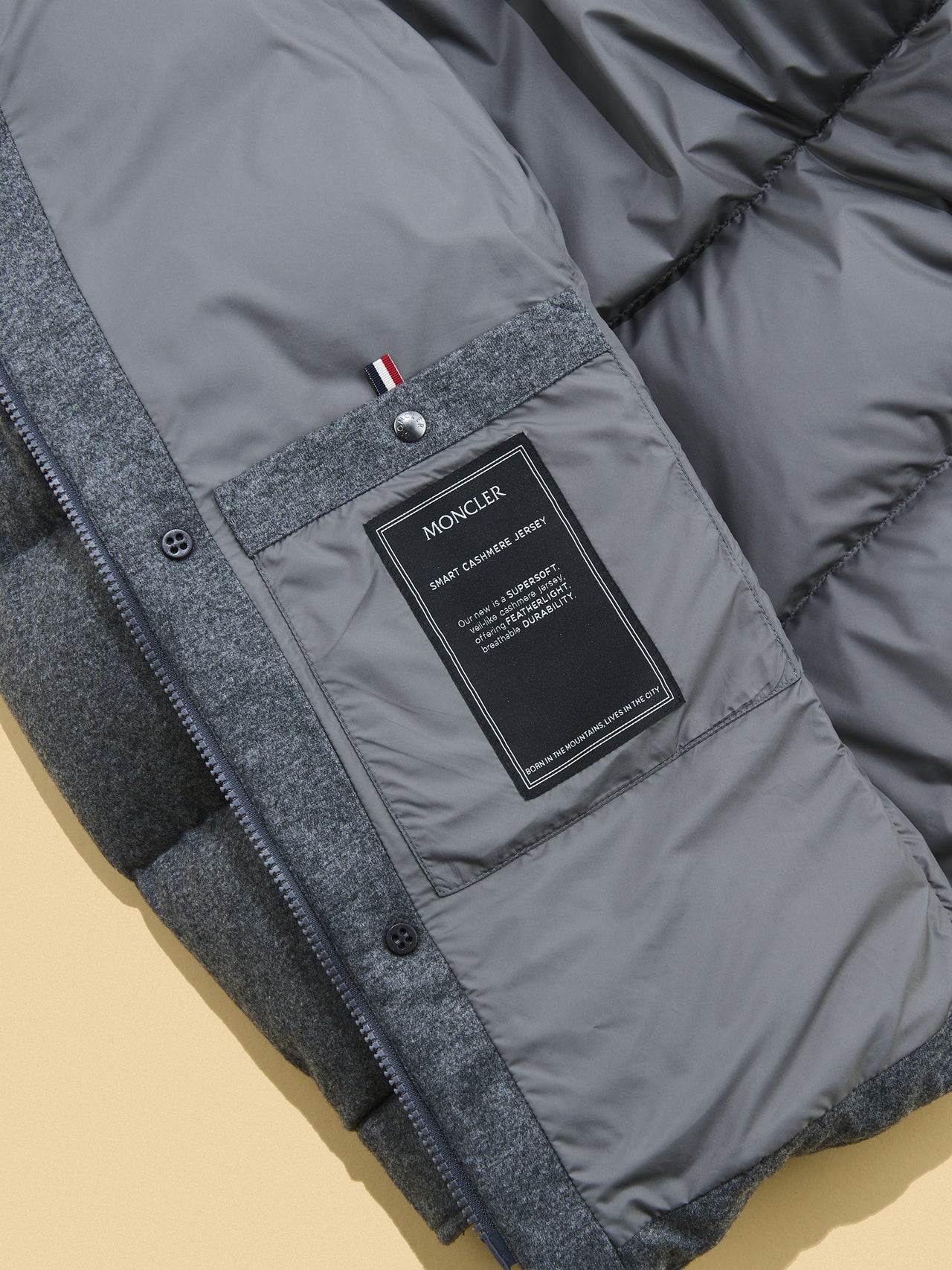 ニット素材の柔らかさとナイロン素材の耐久性を兼ね備えた革新的素材、カシミア混紡素材を使用したモンクレールの技術的ノウハウを体現するPresショートダウンジャケット。すっきりとしたシルエットにレザーのロゴパッチがデザインされたモダンな紳士アイテムだ。