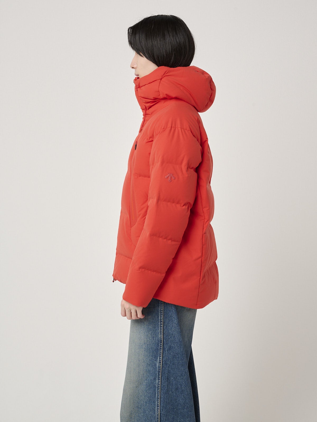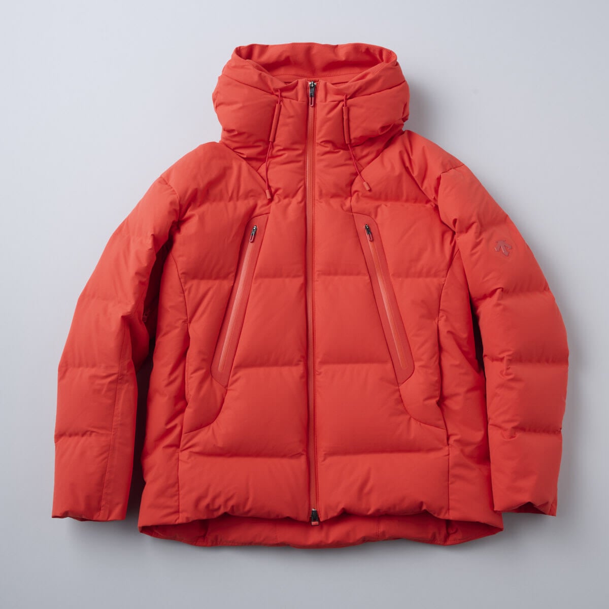 雪景色に映えそうな「オレンジレッド」は。肌馴染みのよい人気カラー。展開はブラックの他に「シャドカーキ」や「スチールグレー」など全4色。カラーダウンデビューにもぴったりのアイテムだ。