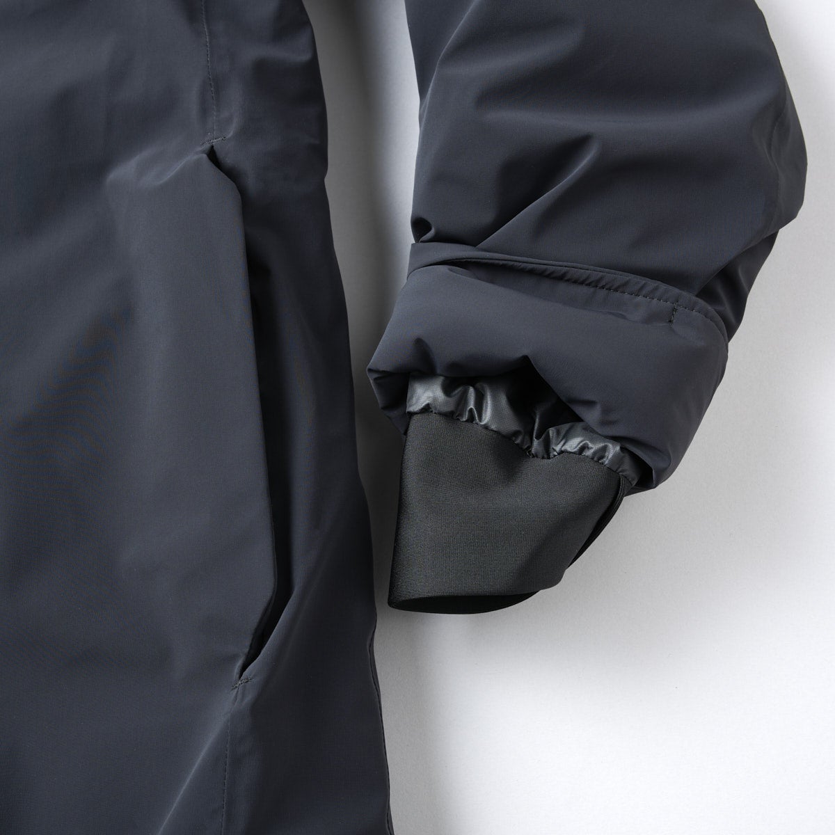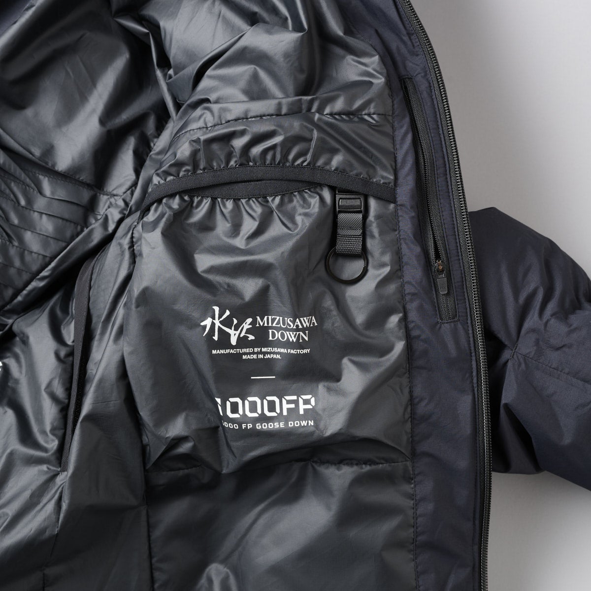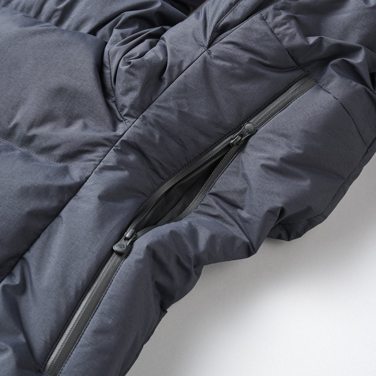 熱接着ノンキルト加工とシームテープ加工による高い耐水性に加えて、さらなる機能性進化を遂げたハイパフォーマンスモデル。その高度な機能性は唯一無二。最強ダウンの名にふさわしい一着だ。