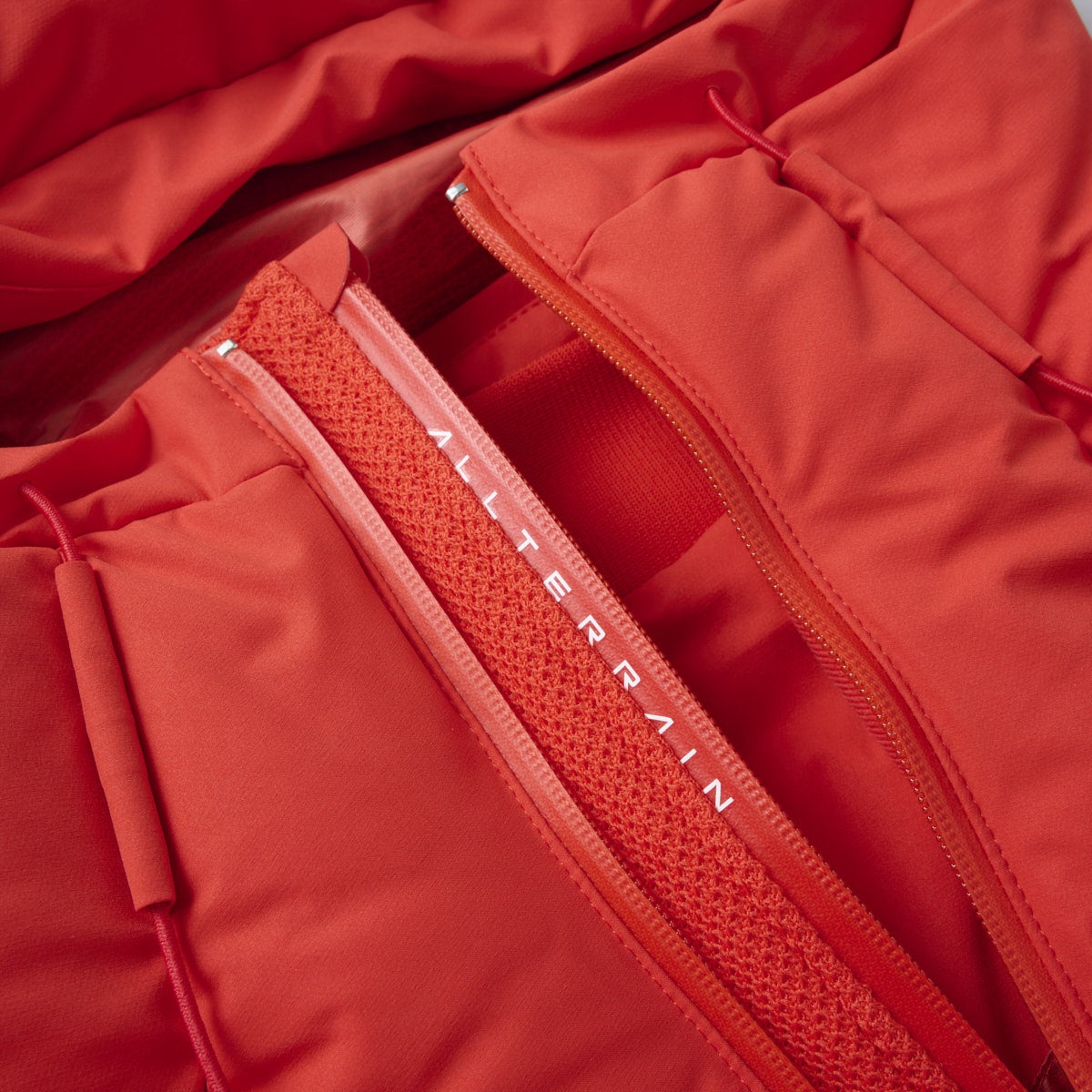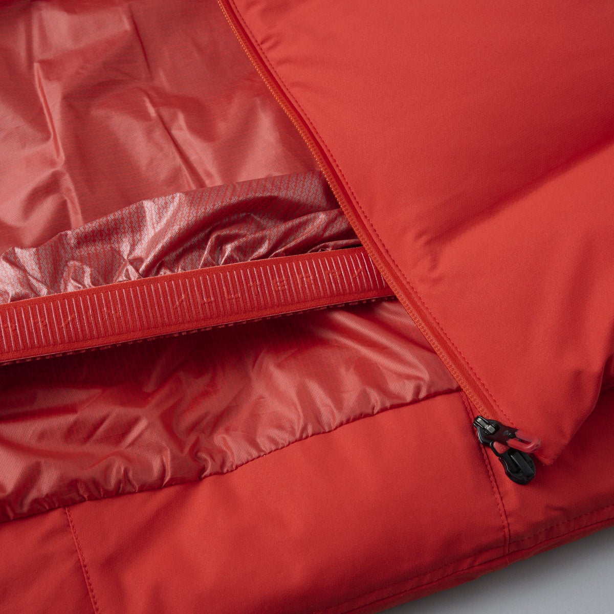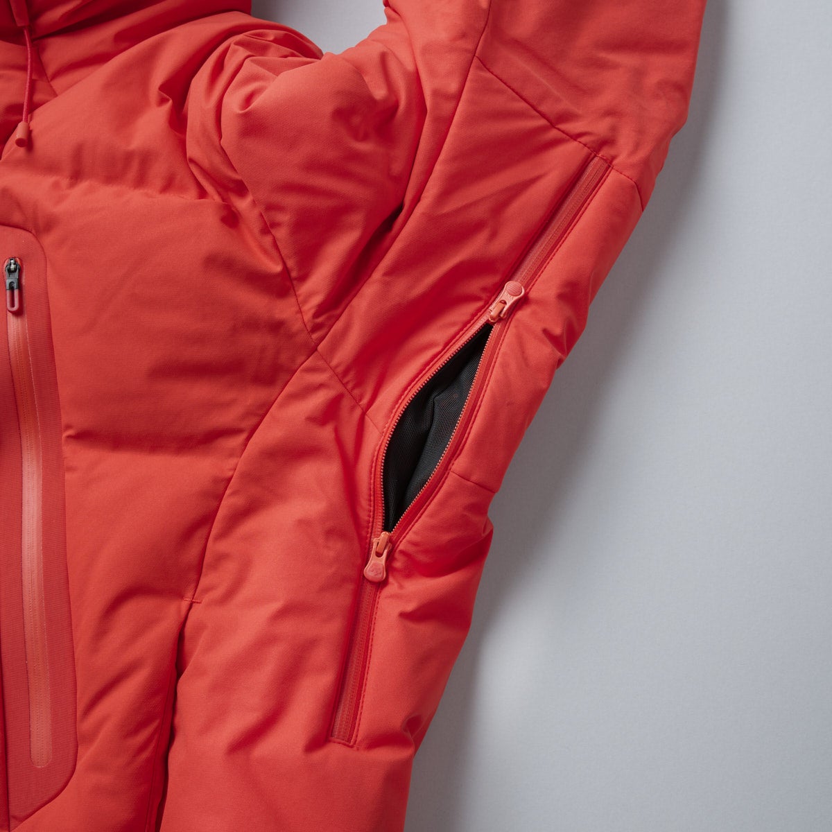 熱接着ノンキルト加工とシームテープ加工による高い耐水性に加えて、さらなる機能性進化を遂げたハイパフォーマンスモデル。その高度な機能性は唯一無二。最強ダウンの名にふさわしい一着だ。