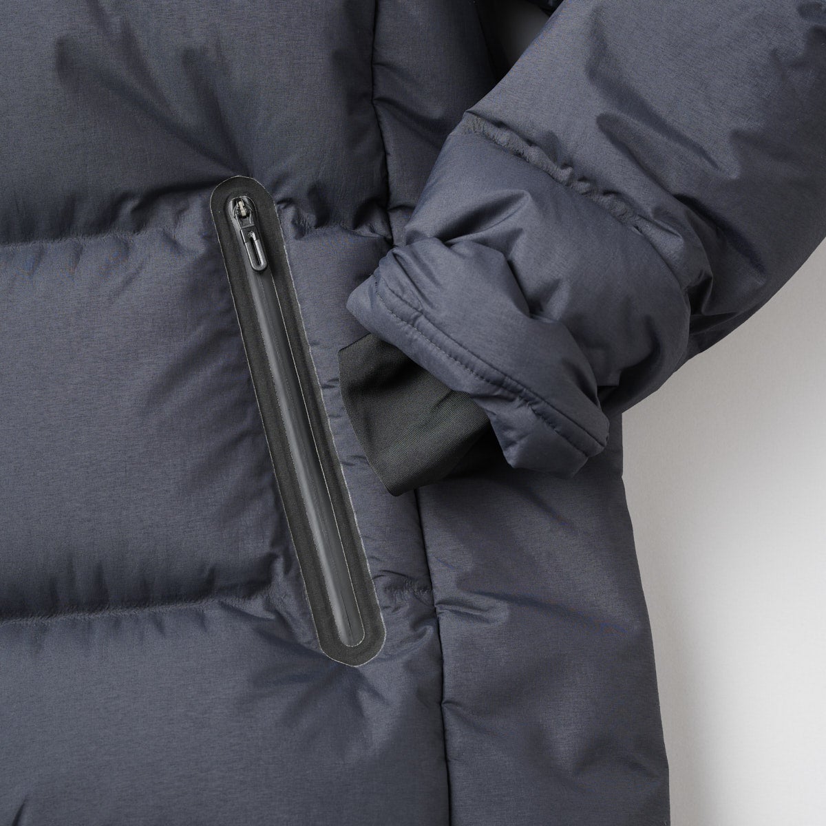 充填するダウンの密度を従来モデルの約60%に抑え、都市生活でのさらなる快適性を追求した軽量モデル。表地には防水透湿性に優れる「DERMIZAX® FLEXILE MATTE 4WAY STRETCH」を使用。中生地には光を熱へと変換し積極的な保温性能を発揮する「HEAT NAVI®/ヒートナビ」を採用したまさに高機能ダウン。
