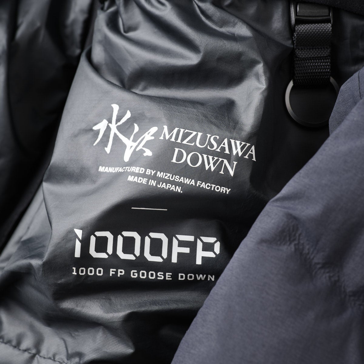 水沢ダウンの2024年最上位モデル「バーテックス」のデザインがアップデートして登場。表地には非常に軽量ながら耐久はっ水性に秀でた“DERMIZAX® 30d NYLON TAFFETA”を採用。さらに随一の軽量性と嵩高性を発揮する1000FPのダウンを充填することで、空気をまとうかのような着心地とこれまでにない暖かさを実現している。