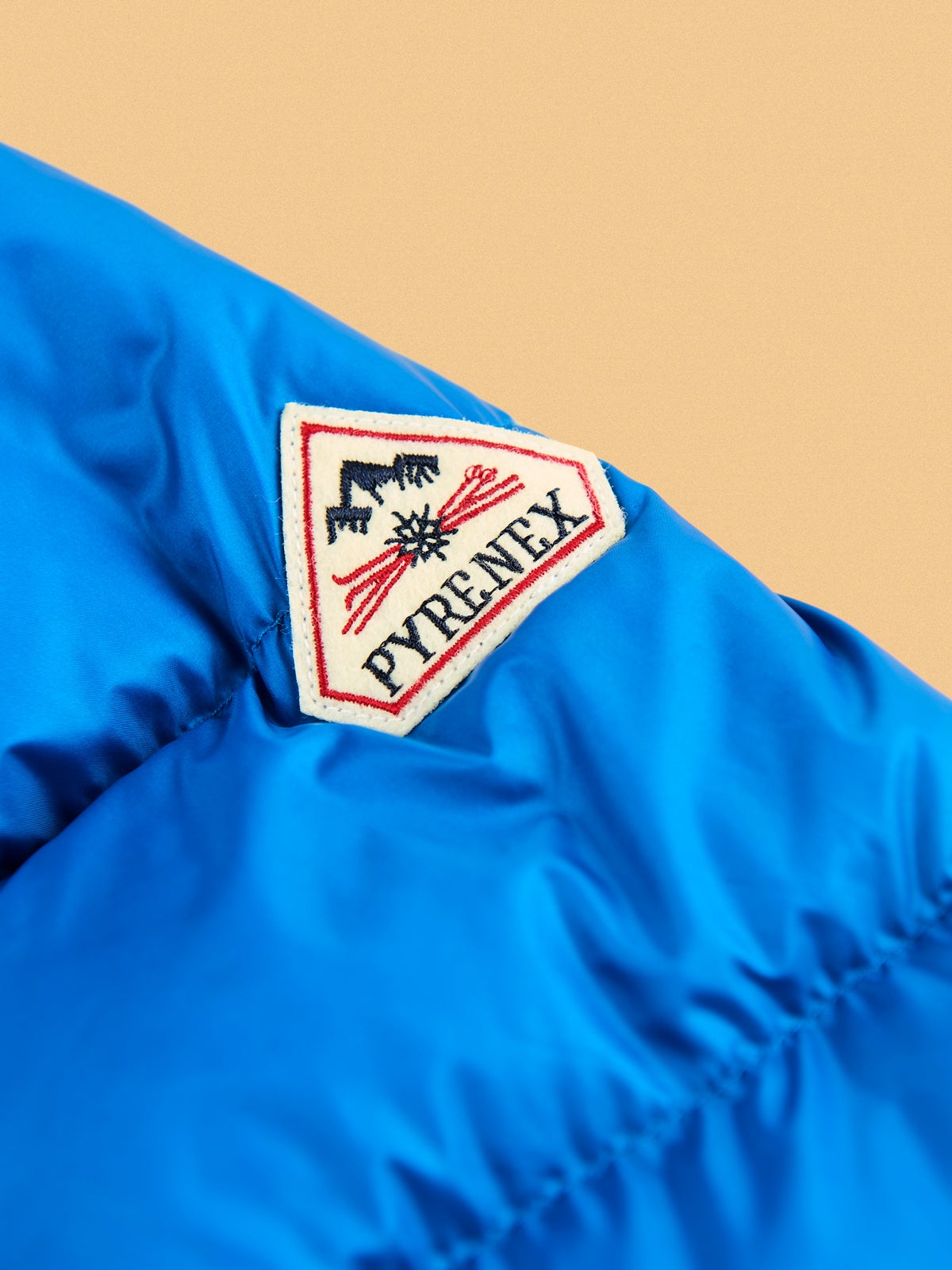 全体のブルーにホワイトのピレネックスフェルトパッチが程よいアクセント。地味になりがちな冬の装い、この一着さえあれば気持ちも明るくなりそうだ。