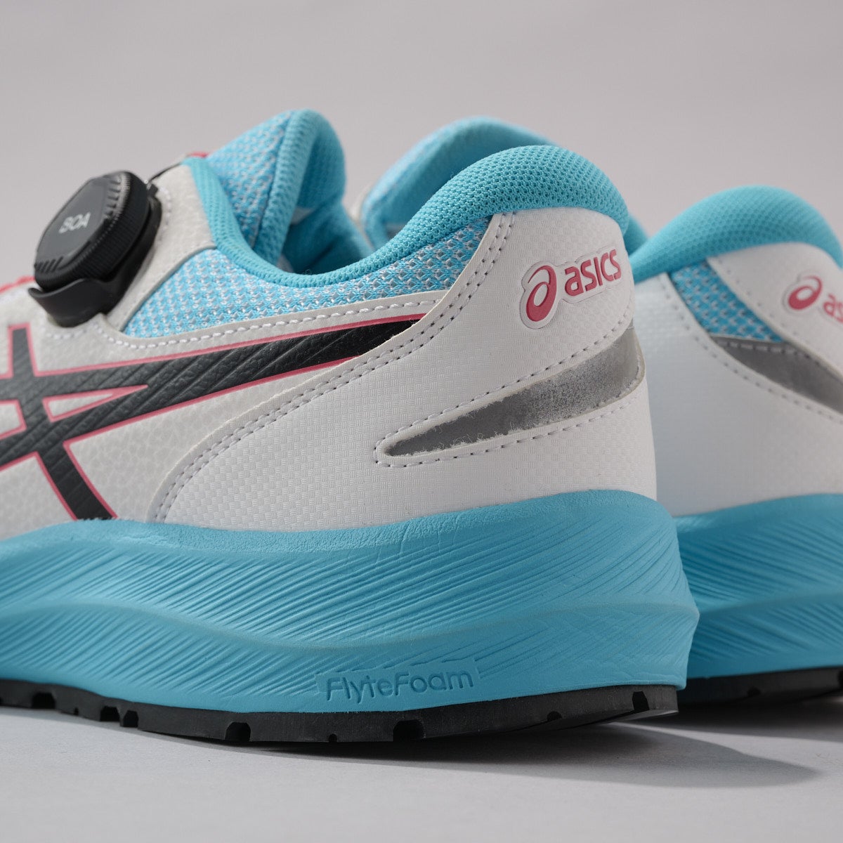 ミッドソールには軽量性・クッション性に優れたFLYTEFOAMを採用。中敷には足のアーチを支えてかかとの内側への倒れ込みを抑える立体形状のSRB中敷を使用することで、足への負担を軽減している。またミッドソールのかかと部には、アシックスのスポーツシューズにも採用している衝撃緩衝材、GELを搭載し、クッション性を高めている。これがアシックスの履き心地の良さのポイントだ。