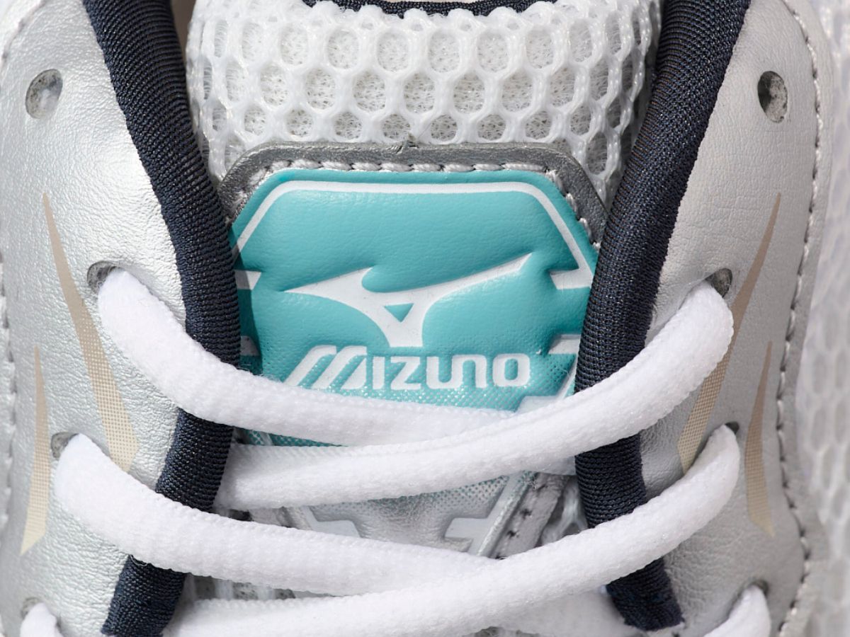 ホワイトをベースにしたアッパーに、ほどよくブラックやグレーをトッピング。サイドロゴやヒールなどにメタルパーツをあしらうことで、遊び心あふれるルックスに。2000年代初頭を想起させる細かな凹凸のあるディテールにも注目だ。