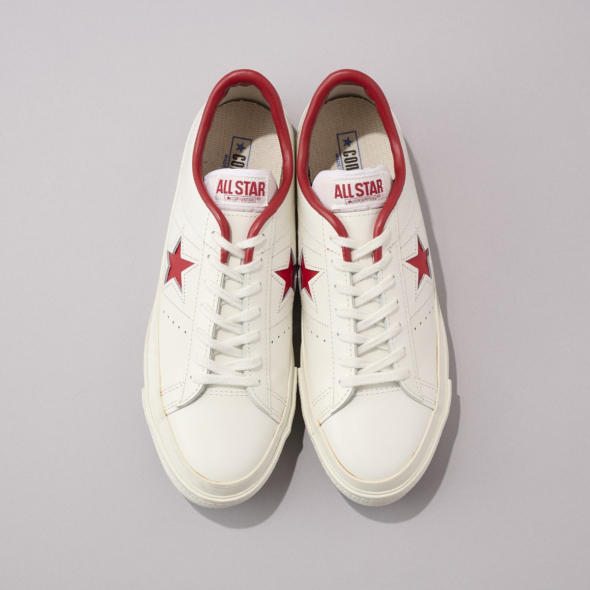 「コンバース」の日本製アイコンモデルを大人レザーな白スニーカーで。色落ちデニムとも合わせたくなる一線を画す高級感![CONVERSE ワンスター J]