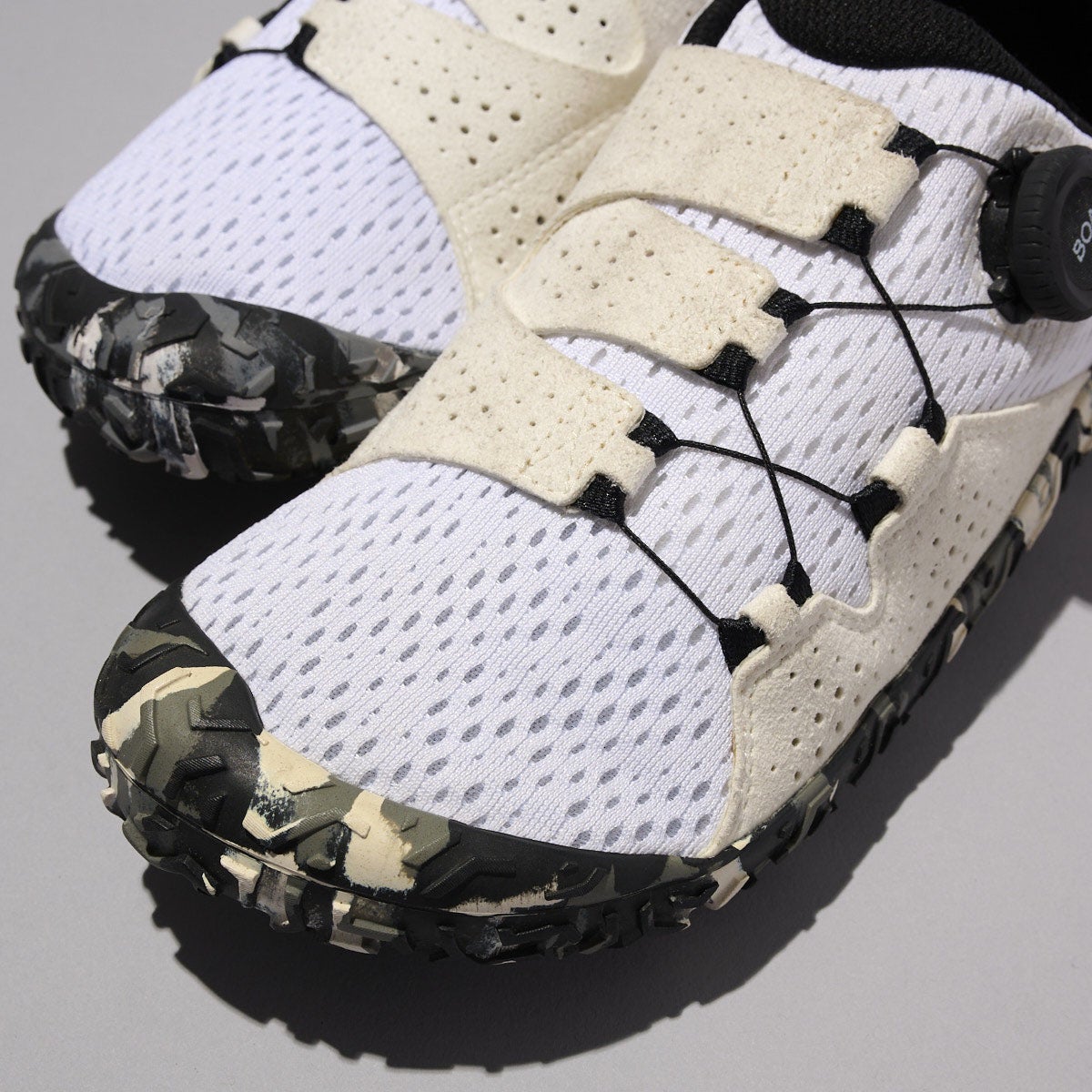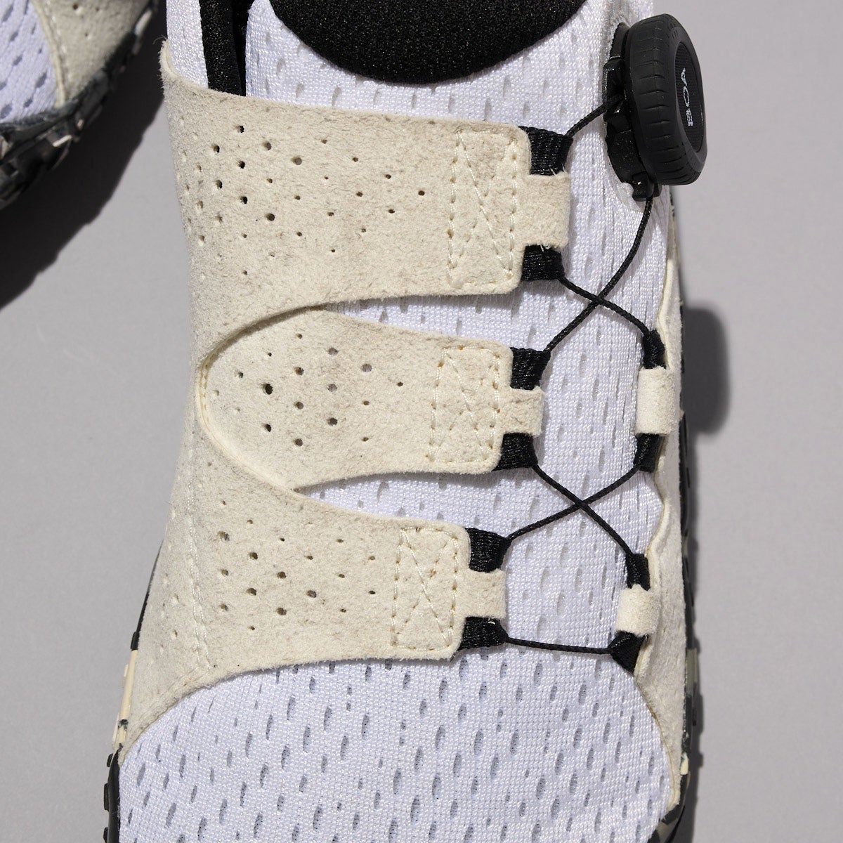 アッパーは足を柔らかく包み込み通気性を確保したエンジニアードメッシュ。フィット調整にはダイヤル式のパフォーマンスフィットシステム「BOA® Fit System」を採用。ダイヤルを回せばしっかり締まり、ダイヤルを引けば瞬時に緩まるので、脱ぎ履きがスムーズに行える。