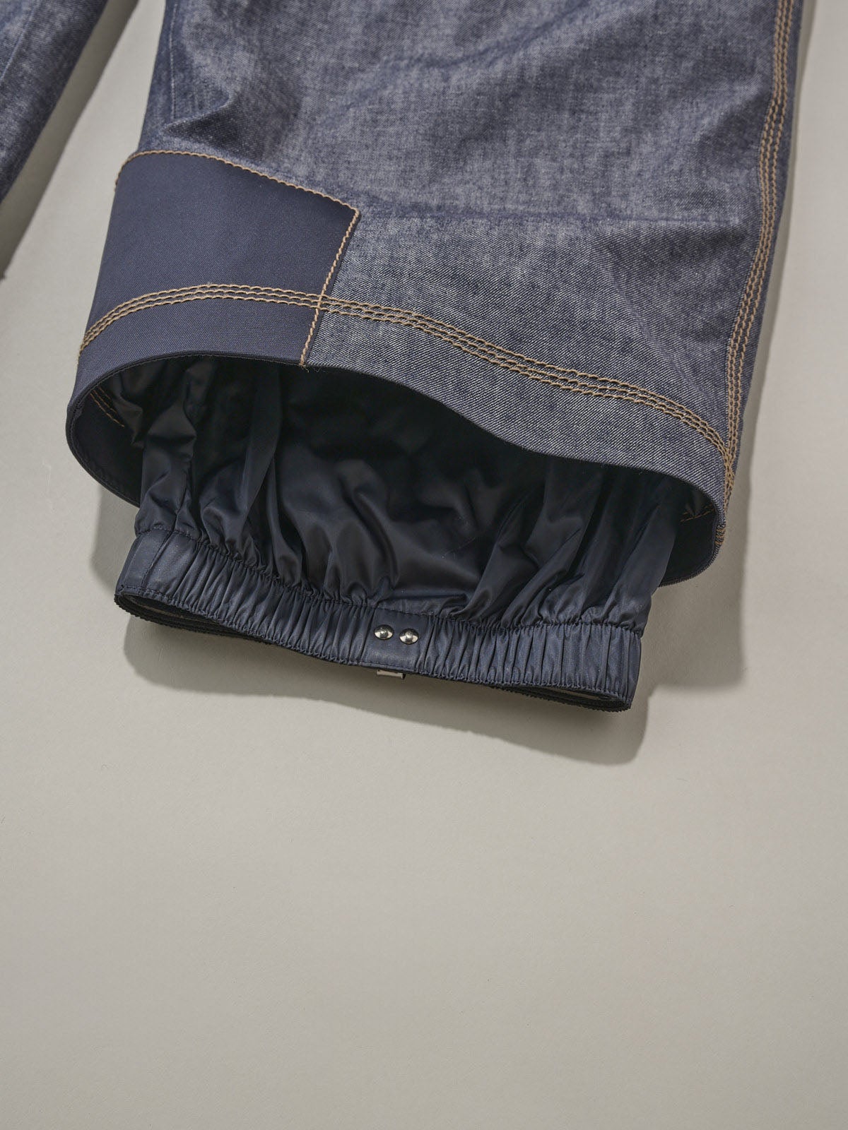 さらに、同素材のスキーパンツとセットアップで着れば完璧。二層構造の防水・防風性デニムに加え、熱着シームや撥水ジッパーなど機能面も抜かりなし。