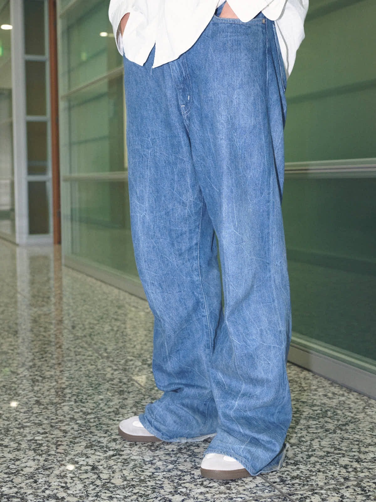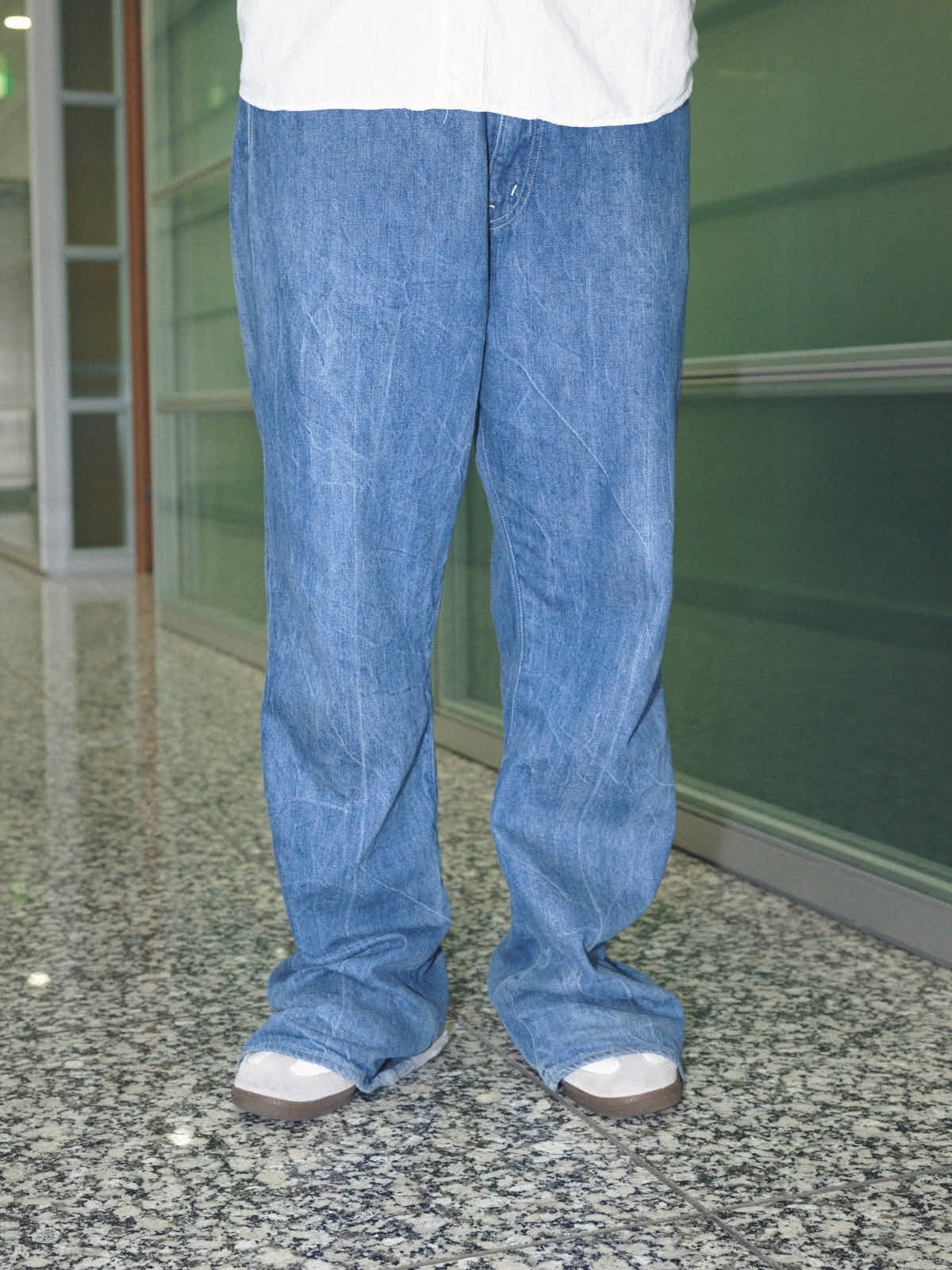 「オーラリーのデニムは新品で購入しましたが、最初からヴィンテージ感があって最高でした。裾のほつれたような加工やウォッシュドされた生地感で、使い込まれたムードの古着のシャツにマッチします」。
