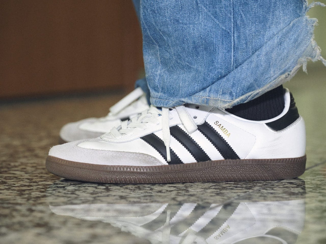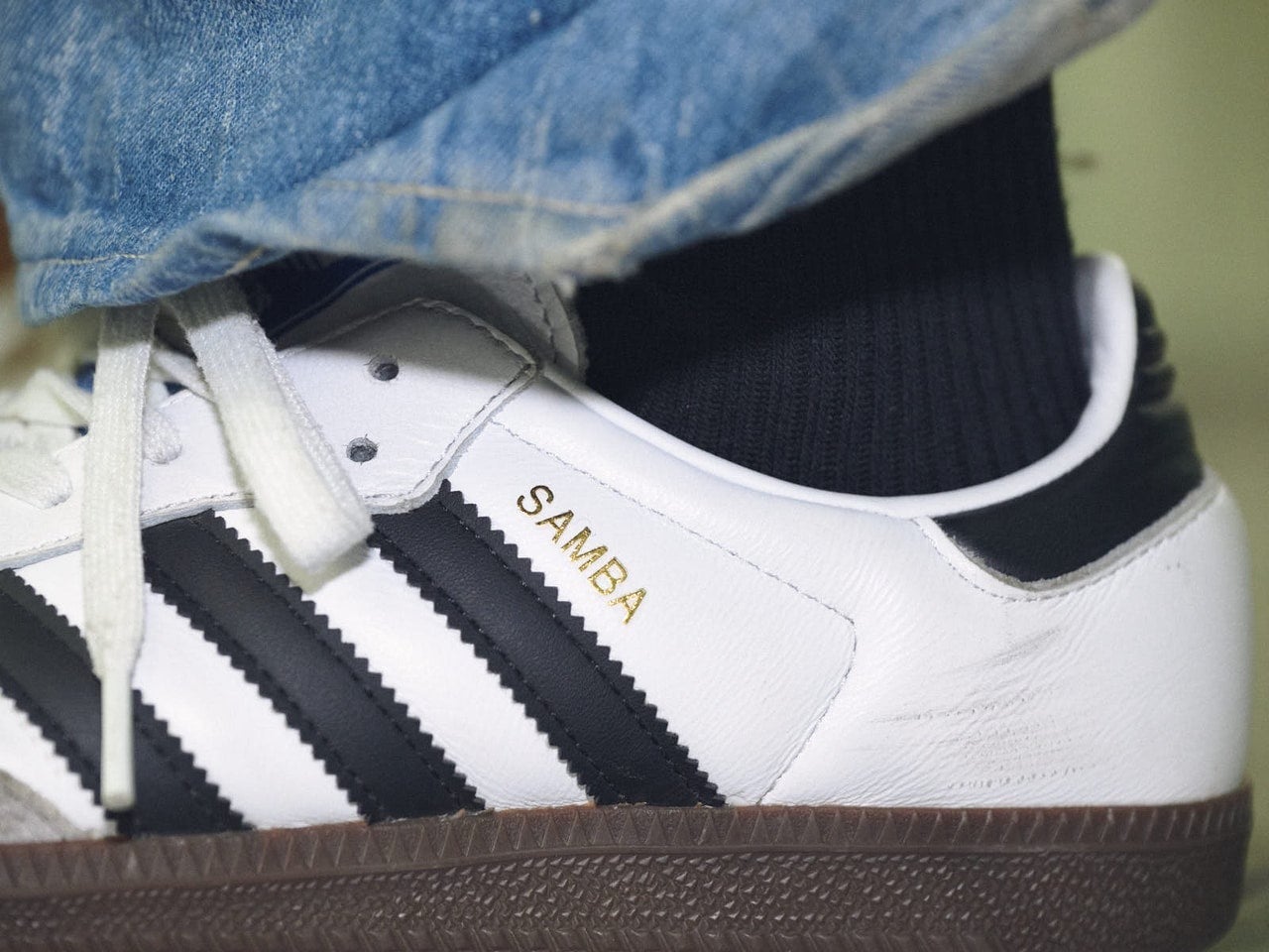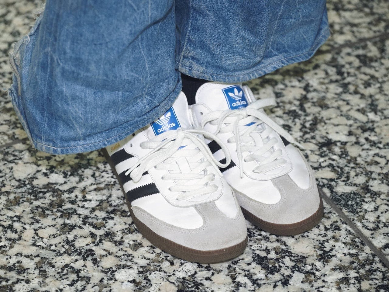 - 「アディダス」のサンバは定番の白が最強。「オーラリー」のデニムを合わせたヴィンテージライクなスニーカースタイル