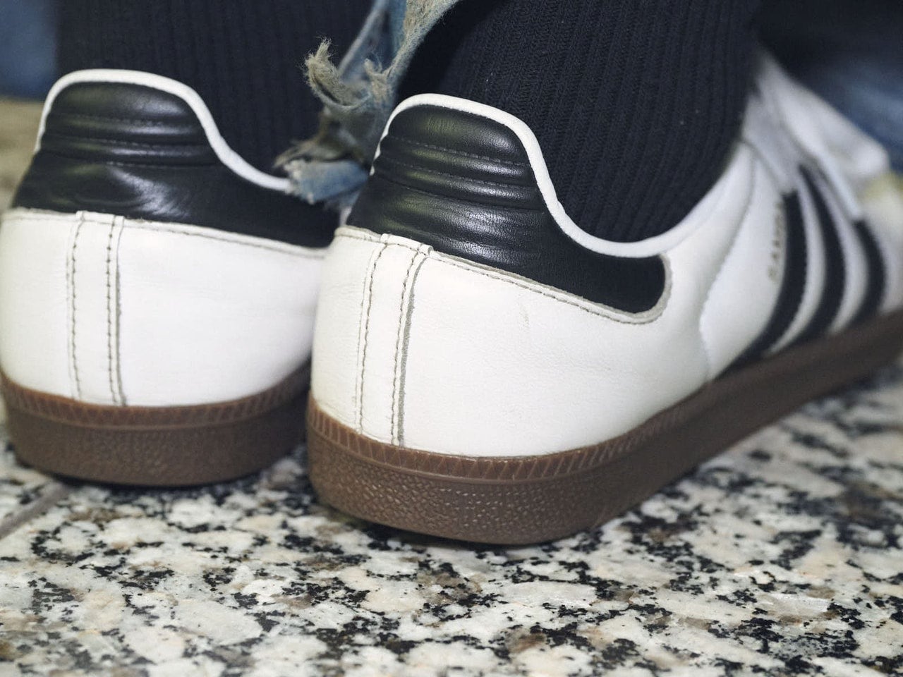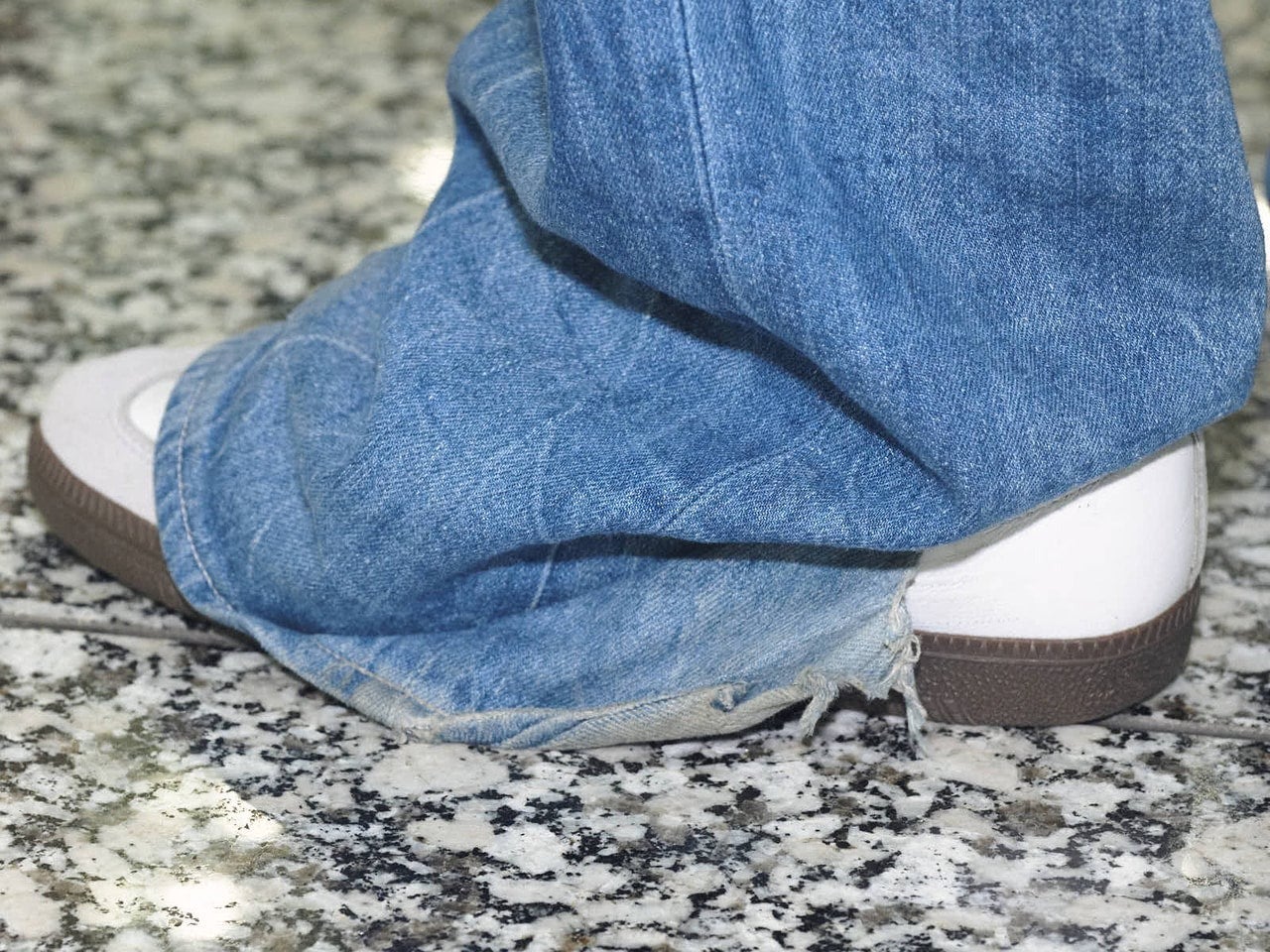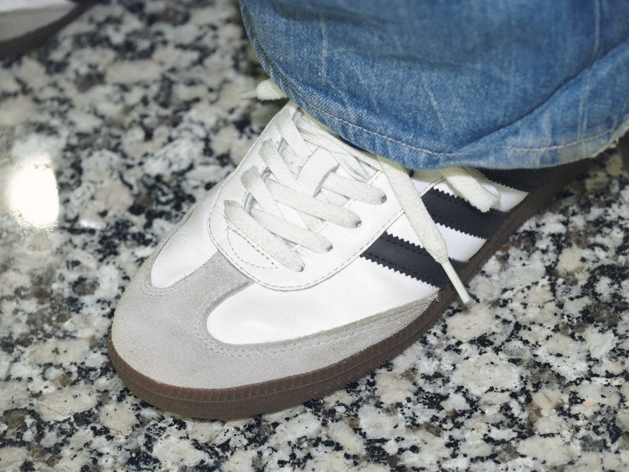 - 「アディダス」のサンバは定番の白が最強。「オーラリー」のデニムを合わせたヴィンテージライクなスニーカースタイル