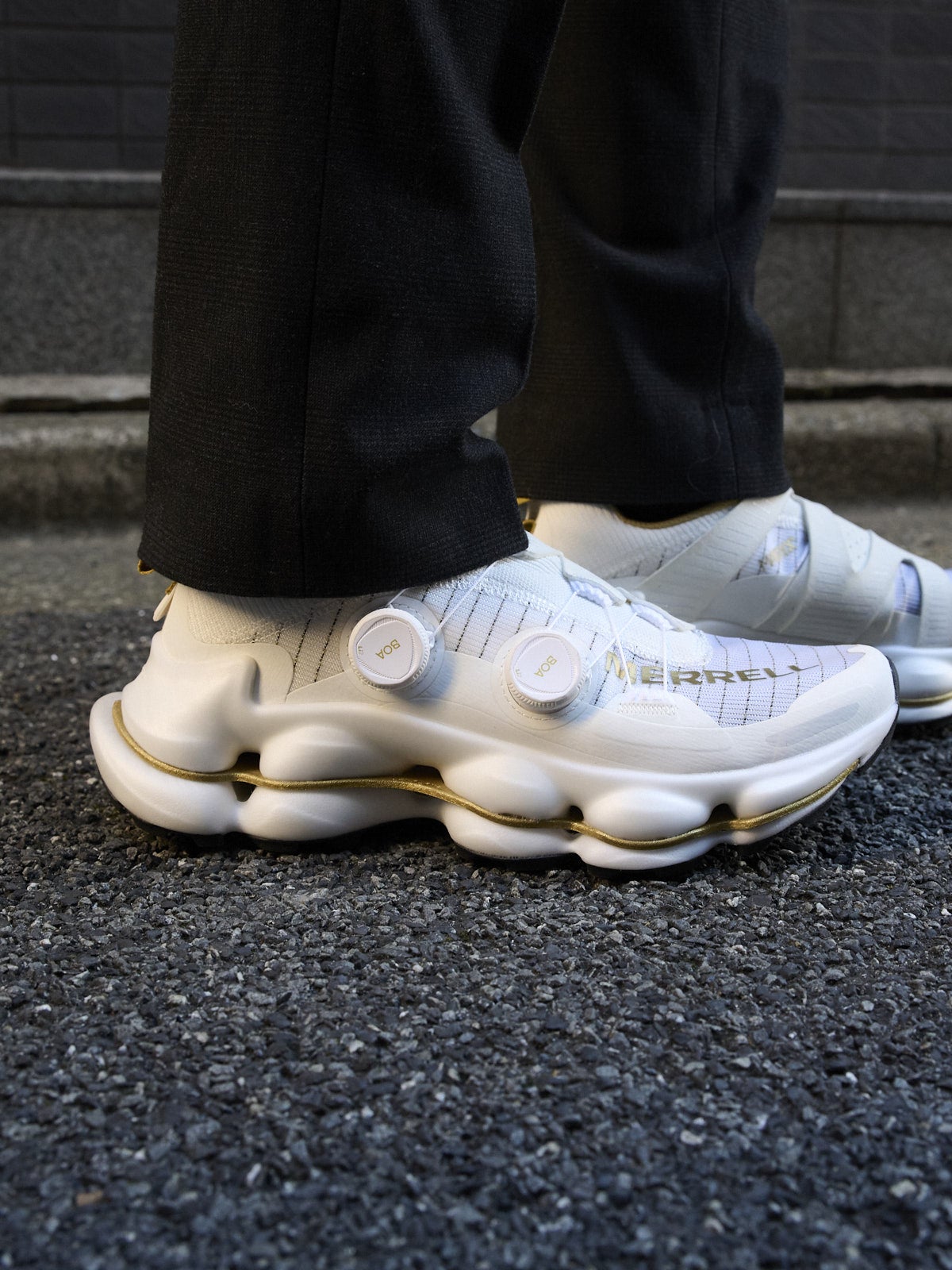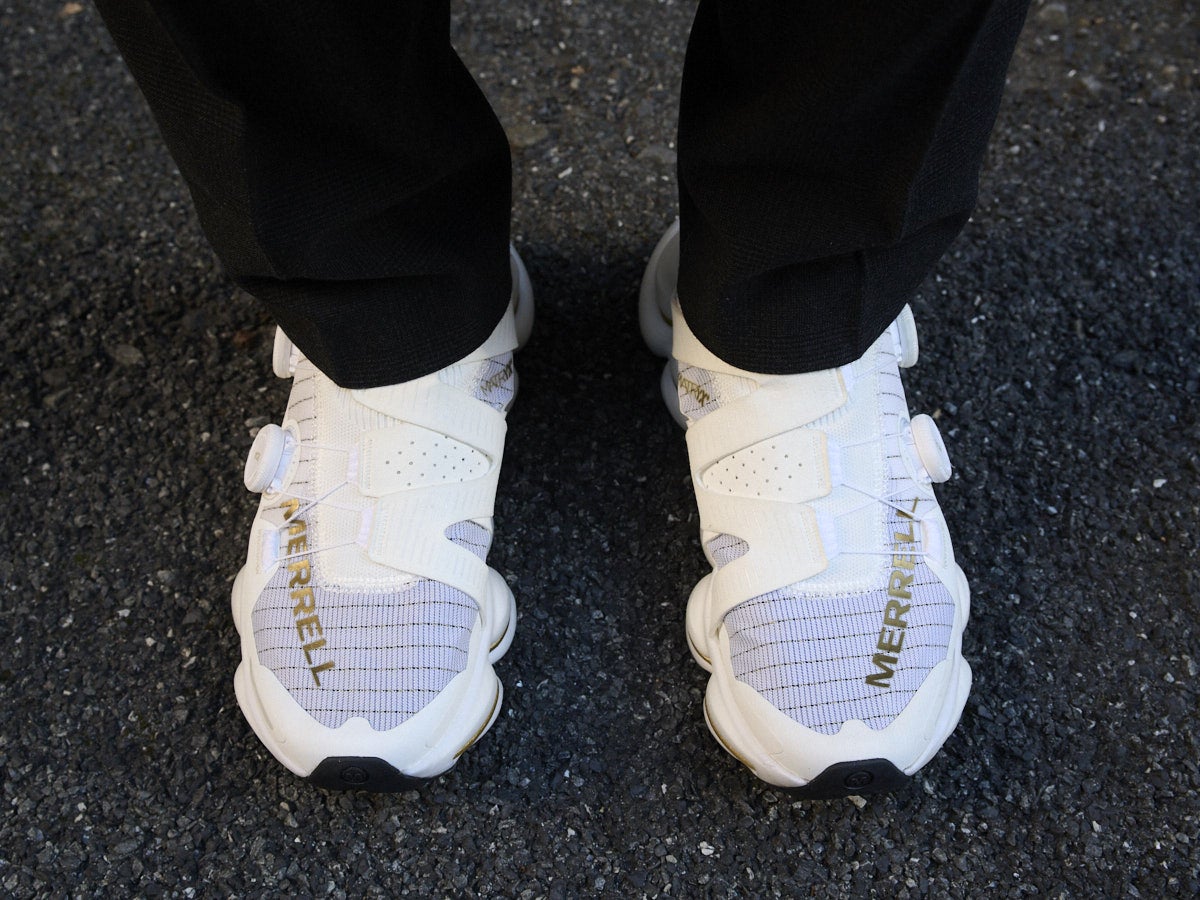 服好きたちの間で注目を集めている「メレル」のスニーカーは白を選ぶのが正解。アイテム数を絞ったシンプルなコーディネートのときは、ハイデザインなアイテムを1点取り入れるとグッとこなれて見えるのでぜひ参考に!