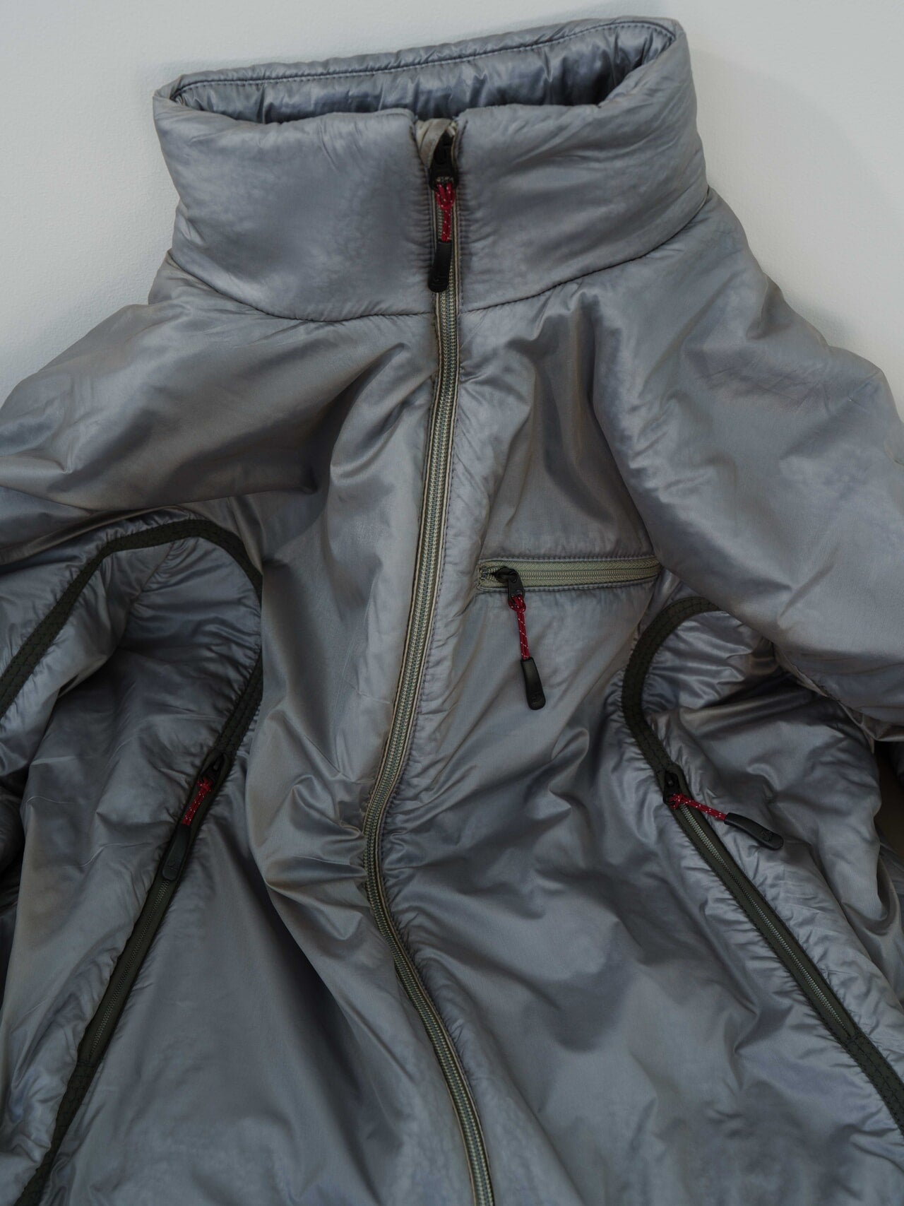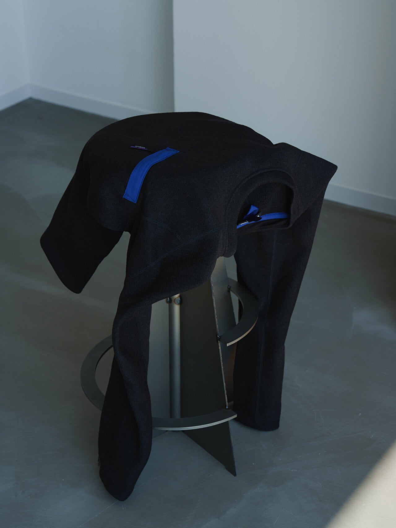 「シンプルに見えますが内側にフリース素材が入っていて、半透明な表地を通してフリースが透けて見えるデザインなっています。サイドからひじにかけて施されたオリーブのステッチもユニークで気に入りました! 保温などの機能性も申し分なし」。
