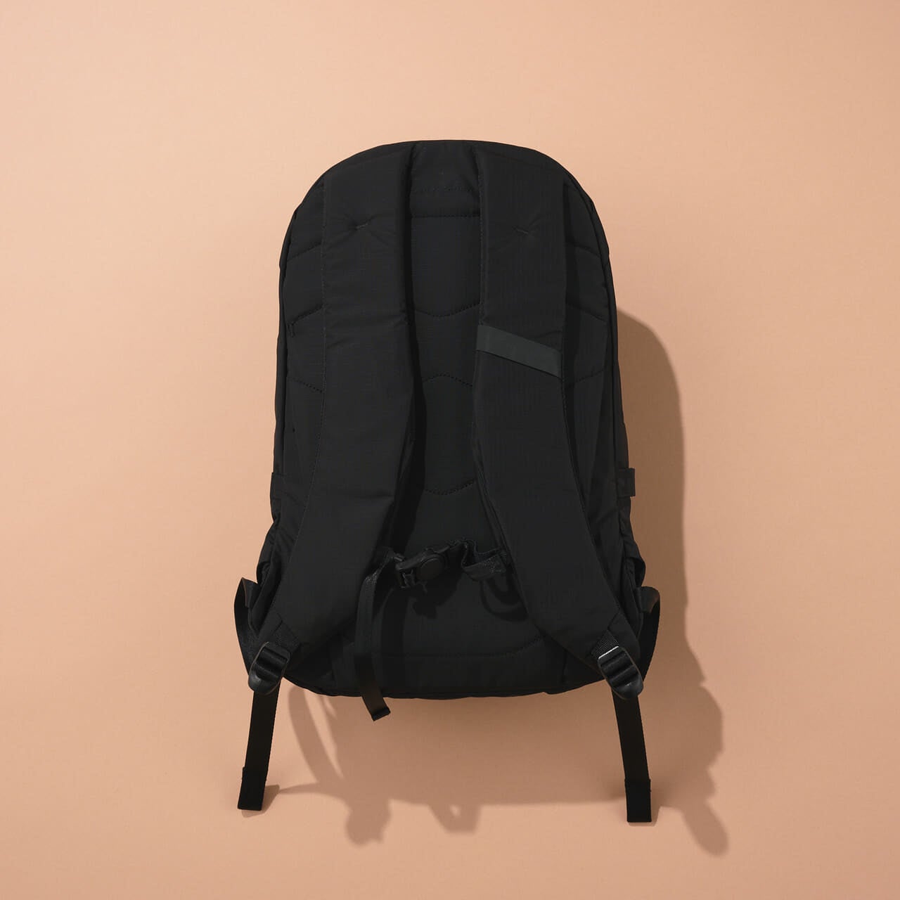 重い物を入れても垂れ下がらないし、背中にしっかりフィットしてくれて、歩いていても荷物がユサユサ揺れるストレスが非常に少ないです。