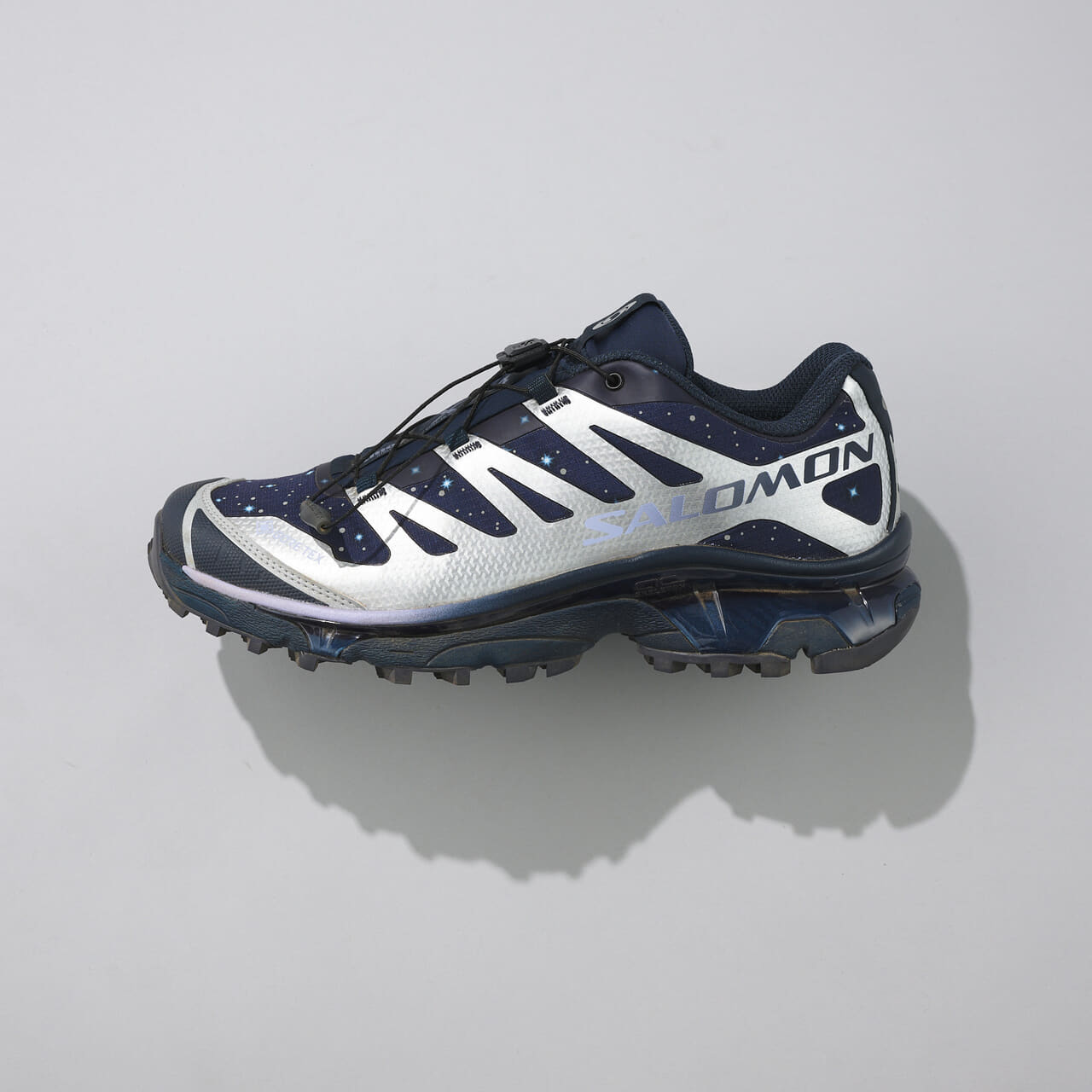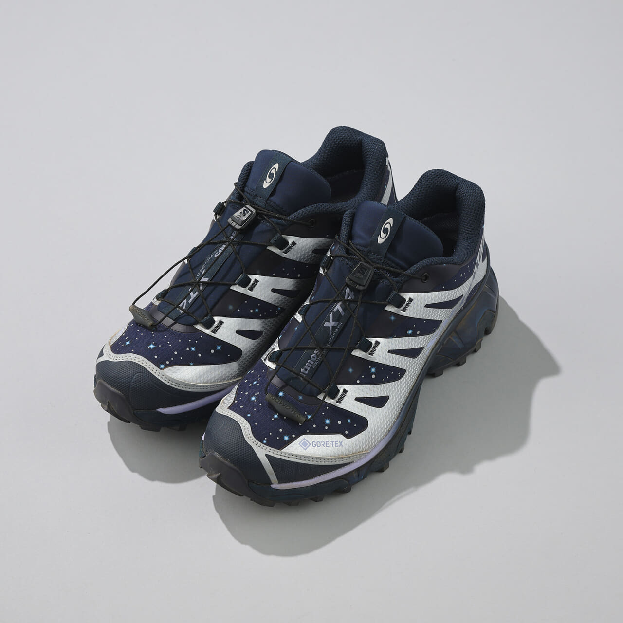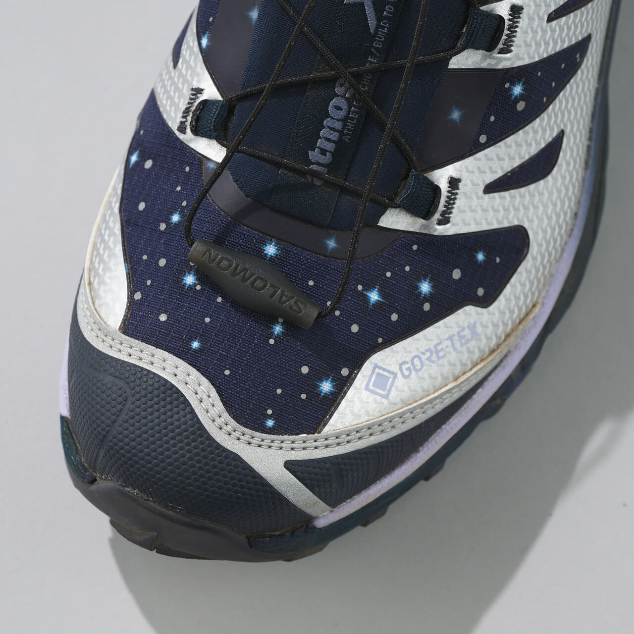 コラボのベースになっているのは名作と知られる「XT-4 OG GTX」。愛称として名付けられている『STARS COLLAIDE』から、“天体の衝突”をコンセプトにしているとのこと。宇宙に散りばめられた星屑が光を放つ瞬間をデザインに落とし込み、アッパー全体に星柄とリフレクター素材を配置したという、ロマンに満ち溢れたデザインに惹かれます。ちなみに、このモデルのコラボは世界で初だそうです。さすがアトモスさんですね!
