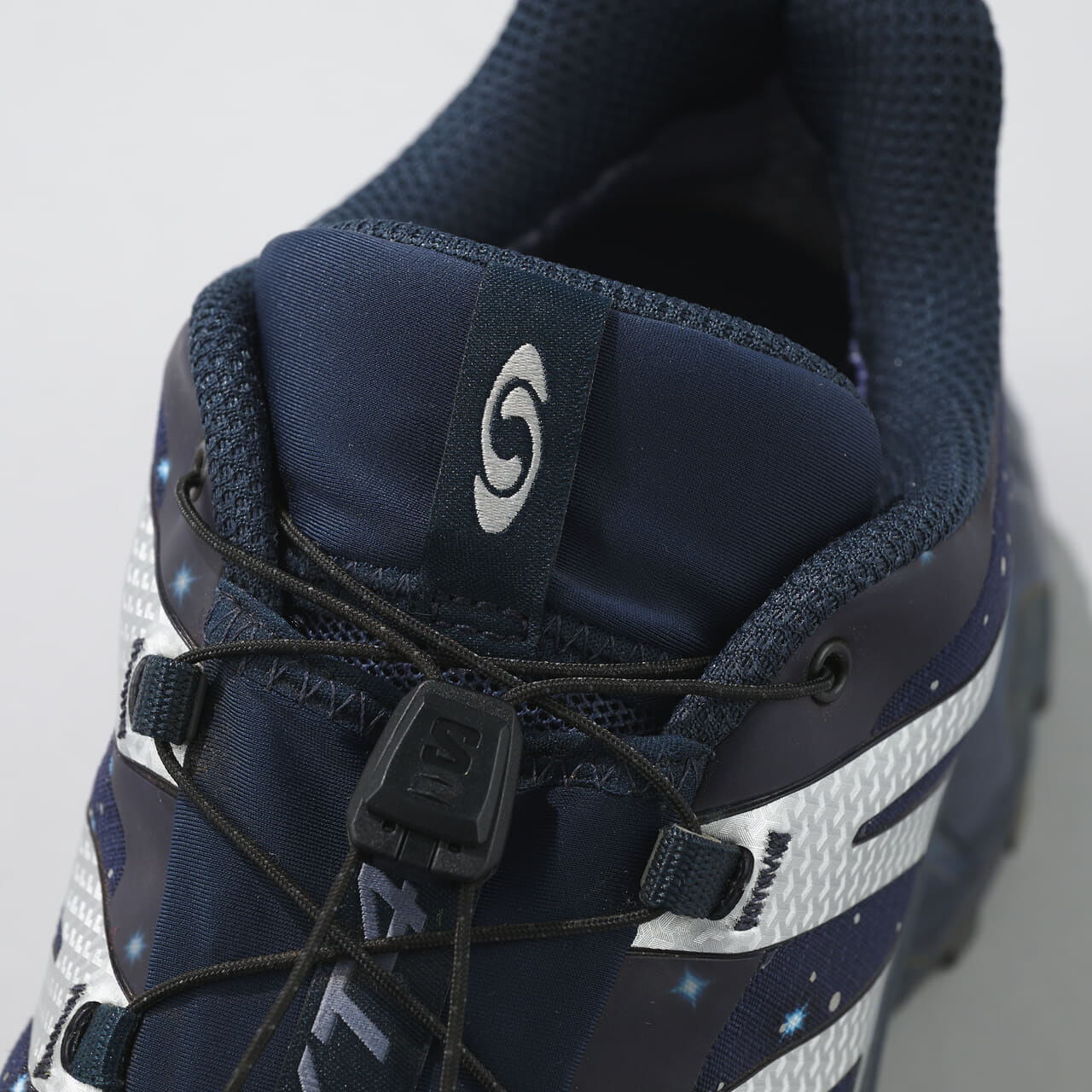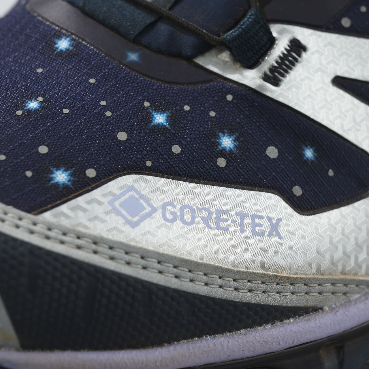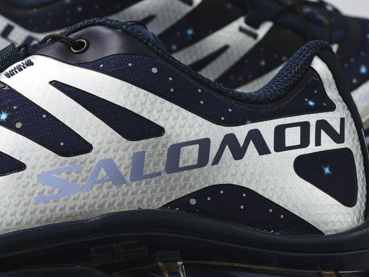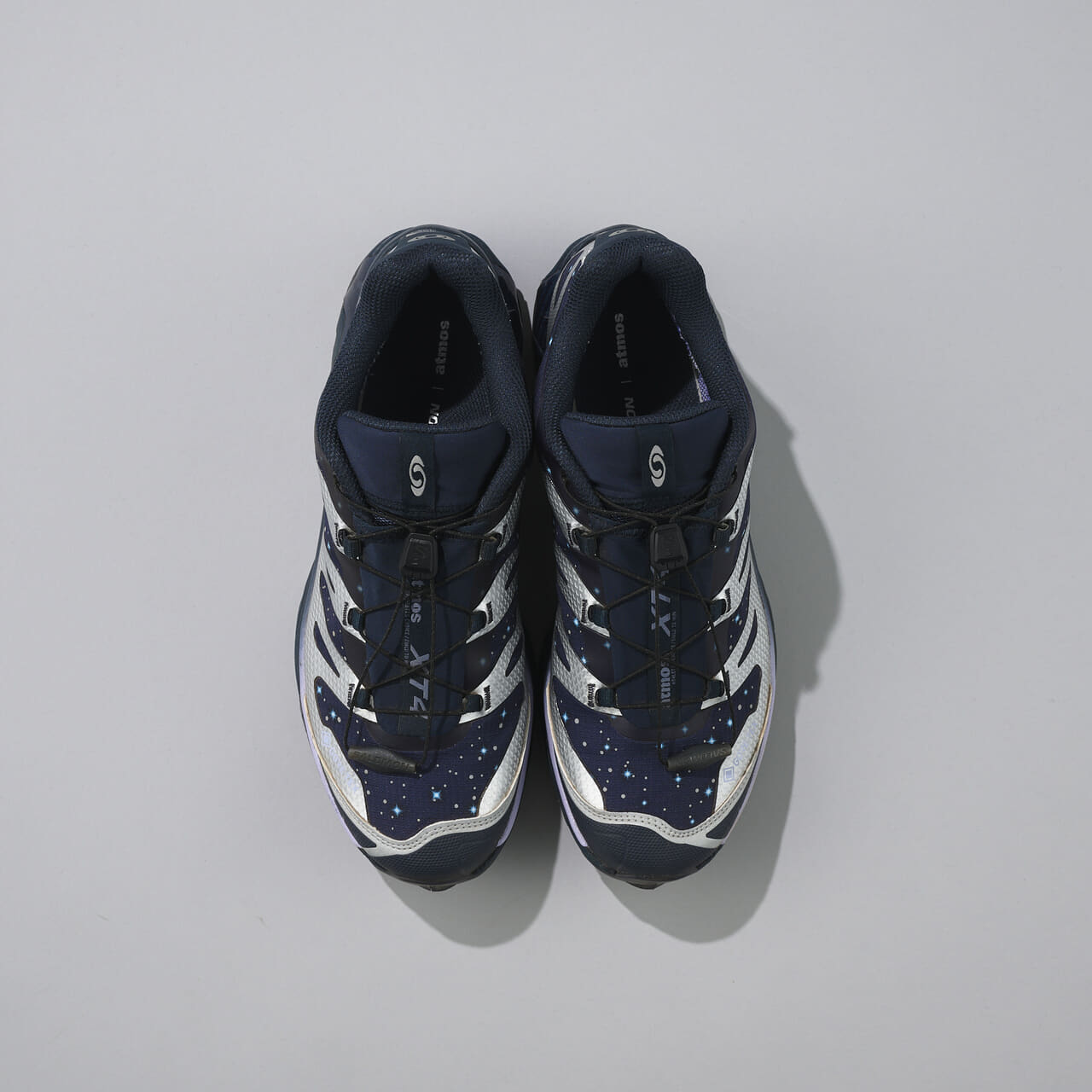 コラボのベースになっているのは名作と知られる「XT-4 OG GTX」。愛称として名付けられている『STARS COLLAIDE』から、“天体の衝突”をコンセプトにしているとのこと。宇宙に散りばめられた星屑が光を放つ瞬間をデザインに落とし込み、アッパー全体に星柄とリフレクター素材を配置したという、ロマンに満ち溢れたデザインに惹かれます。ちなみに、このモデルのコラボは世界で初だそうです。さすがアトモスさんですね!