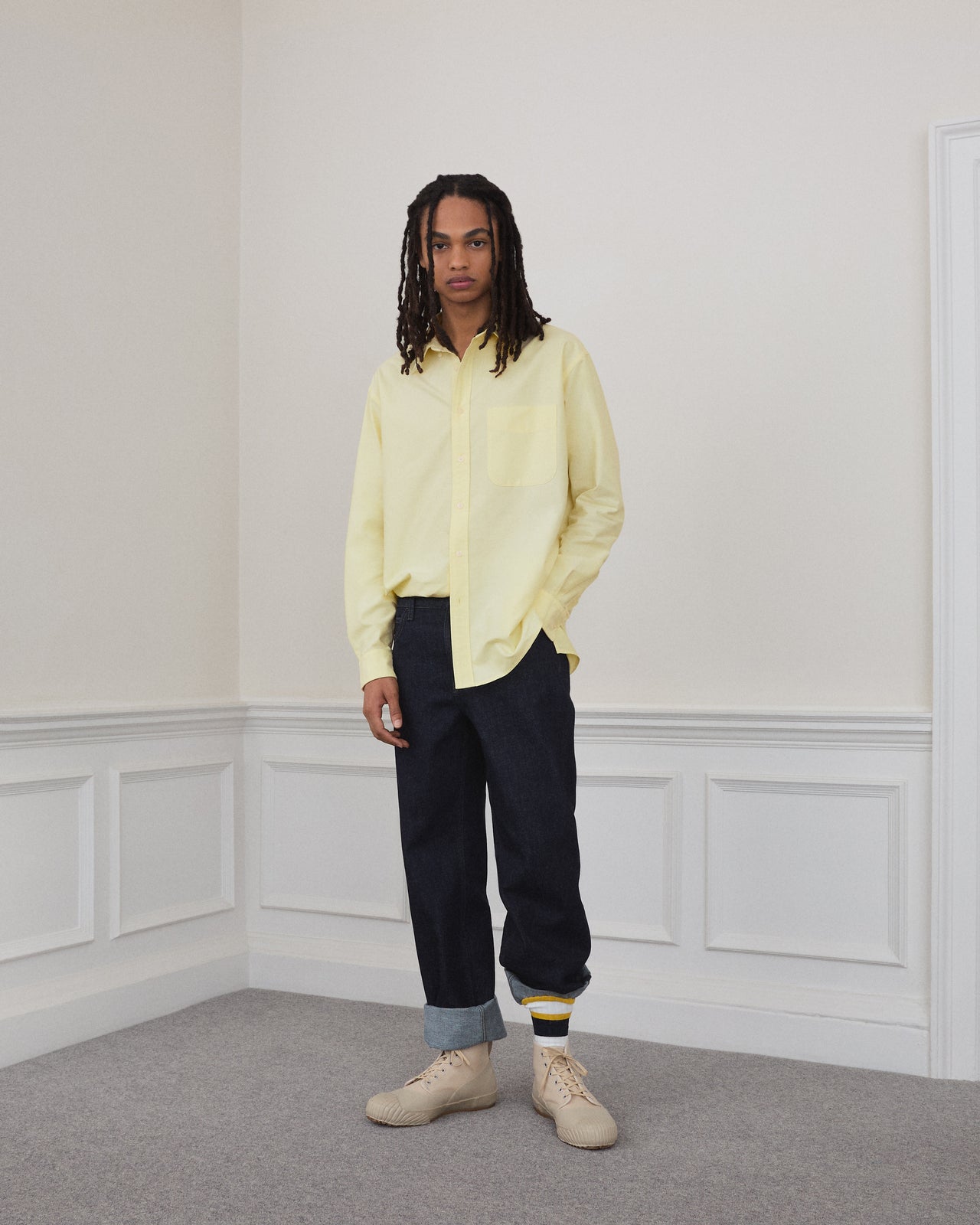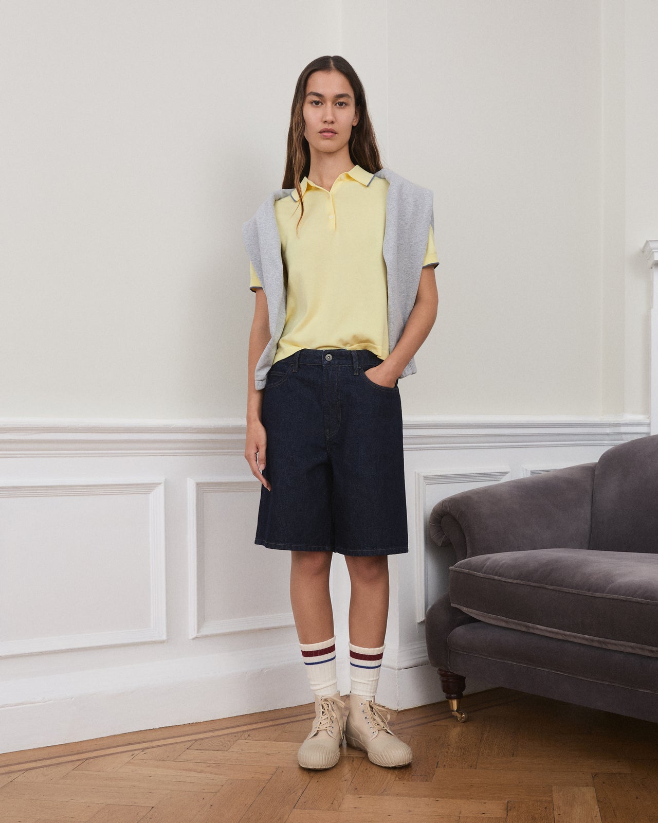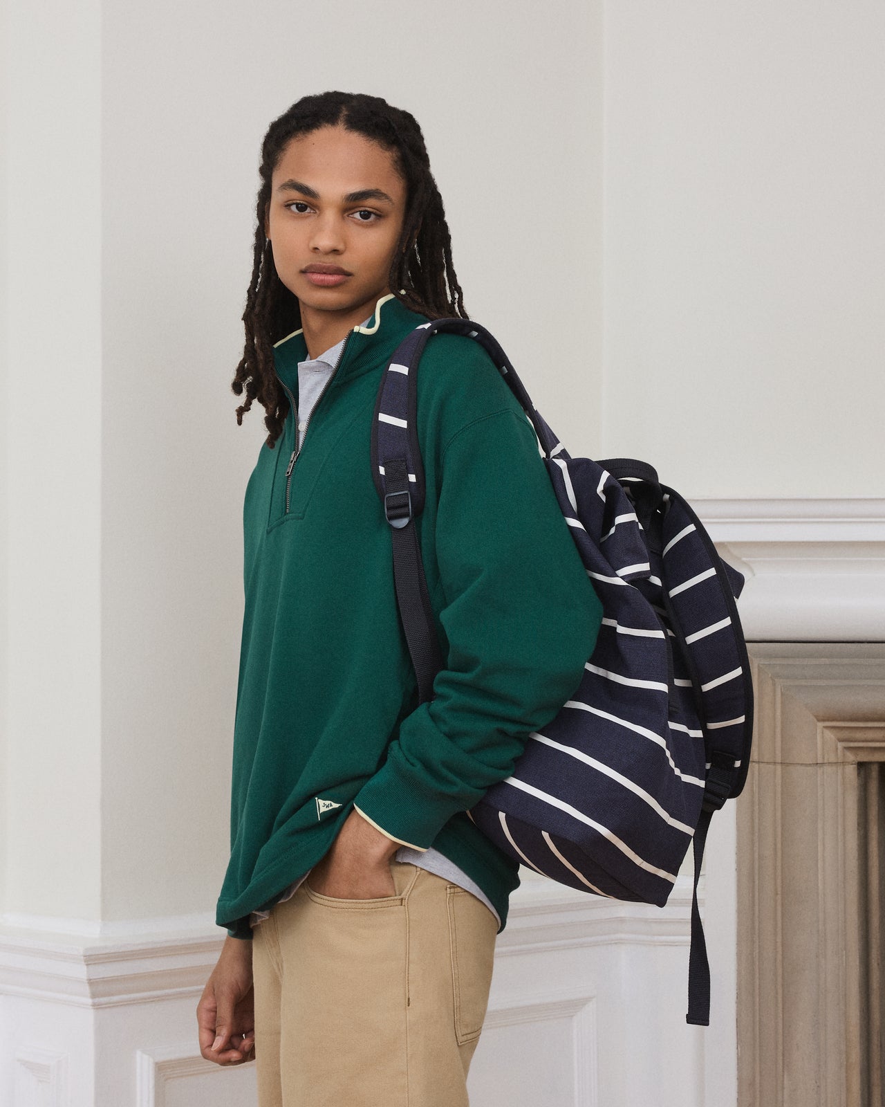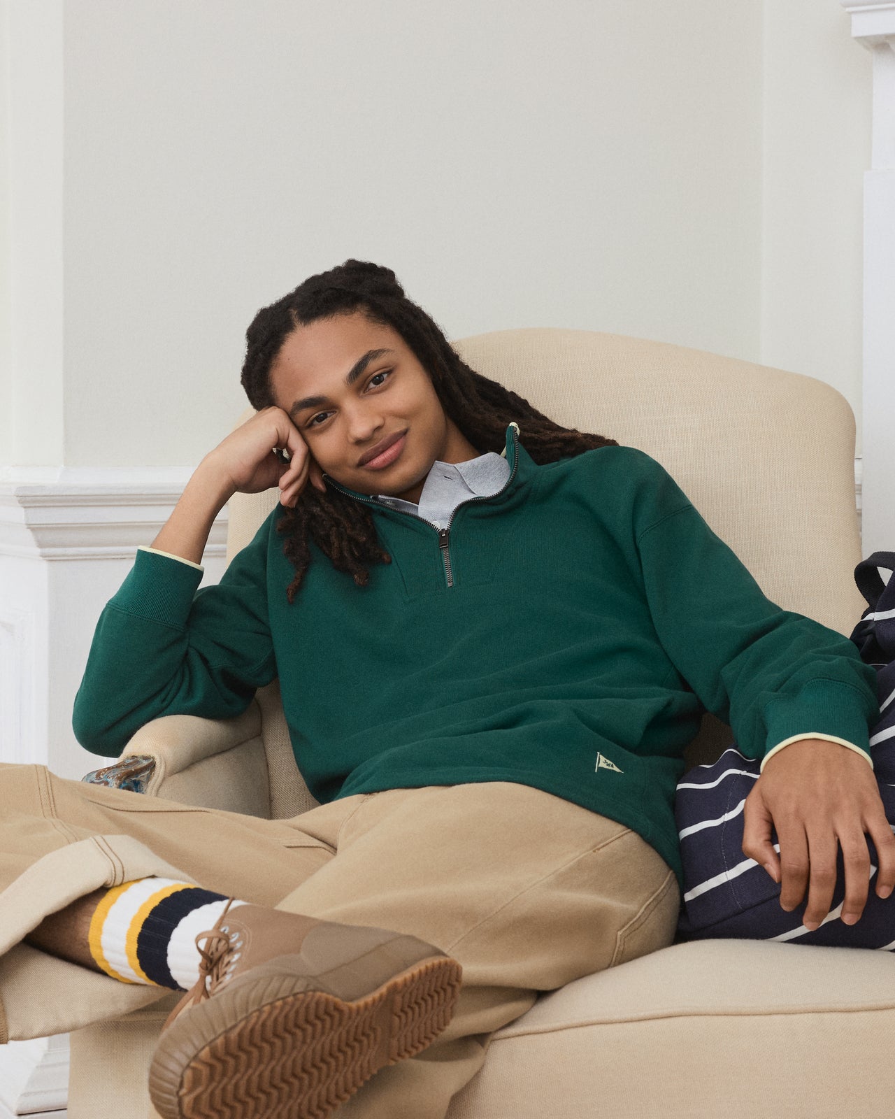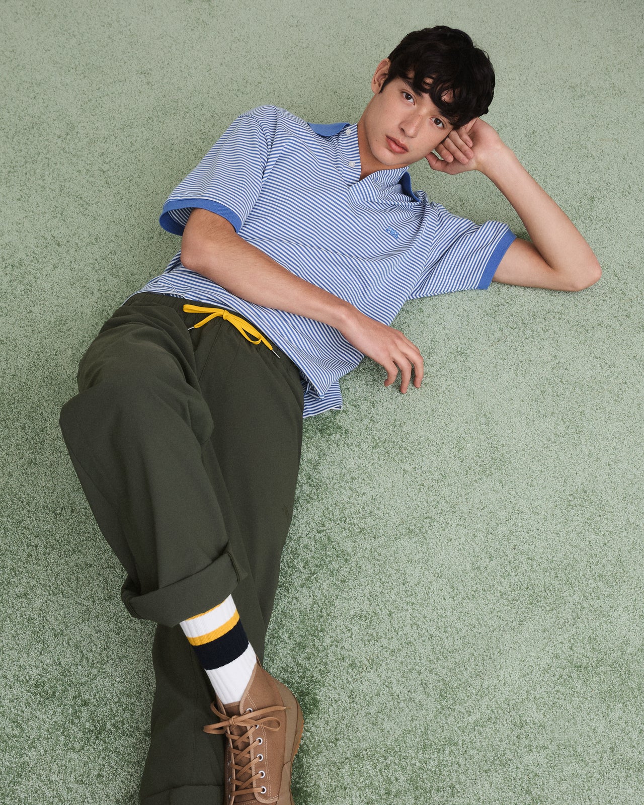 「今回のコレクションでは、英国の伝統的なプレッピースタイルに新しい解釈を加え、春夏らしい軽快さと鮮やかな色使いを表現しました。オックスフォードシャツやブルゾンなどの定番に加え、パーカやショーツといった季節感のあるアイテムを組み合わせています」。(デザイナー、ジョナサン・アンダーソン)