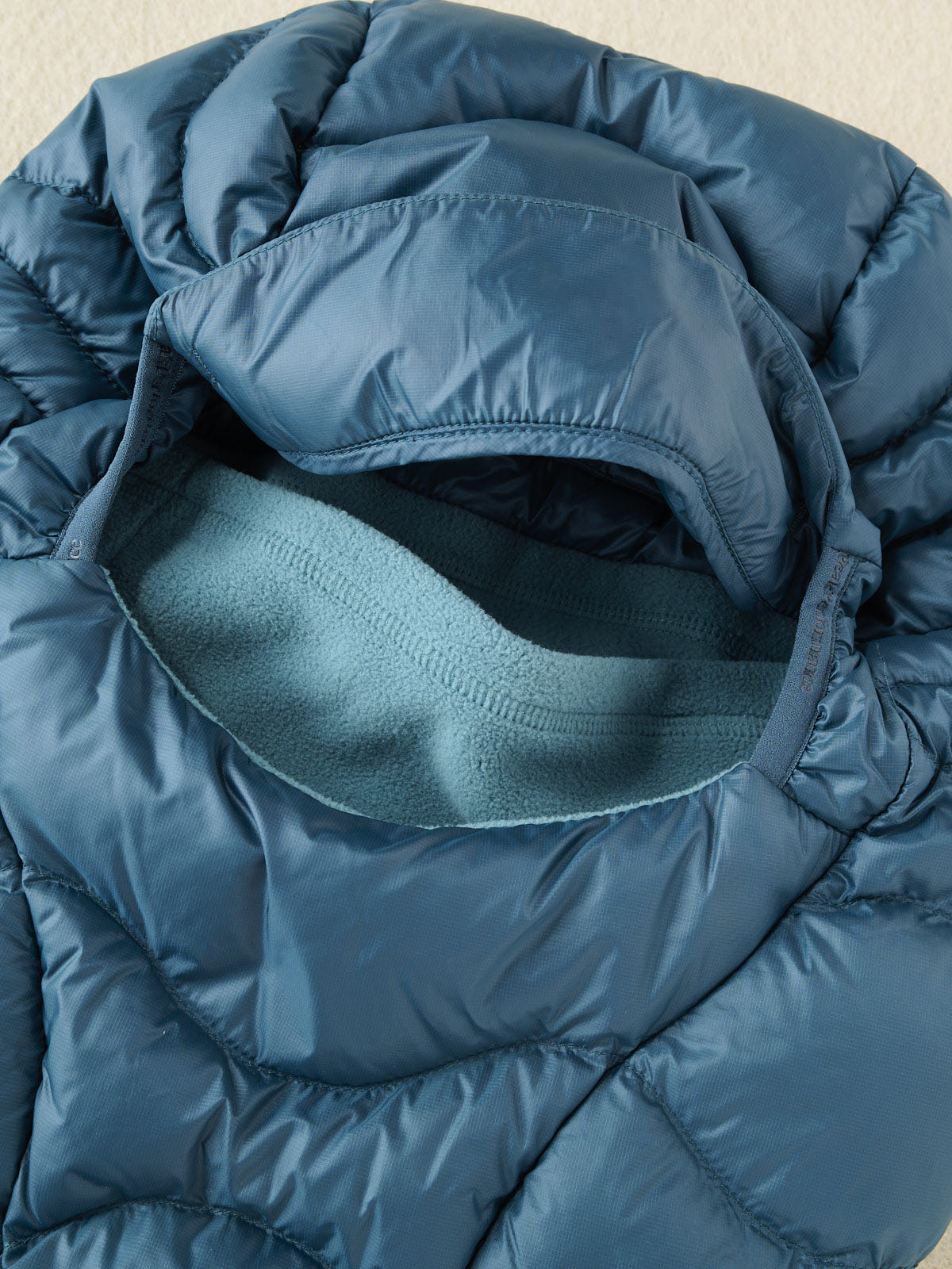 Heliumシリーズのバラクラバ。軽量、圧縮性、耐水性、耐風性といったHeliumシリーズの魅力的な機能がすべて詰まった、寒い日に活躍する最強のアイテムだ。アイコニックなHeliumパターンのキルティングでルックスも洒落てる。スタイリングのアクセント役としても優秀。