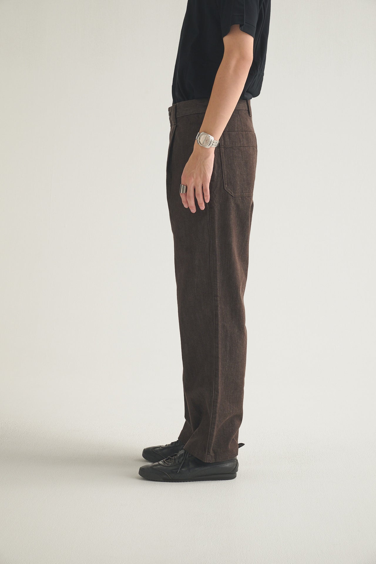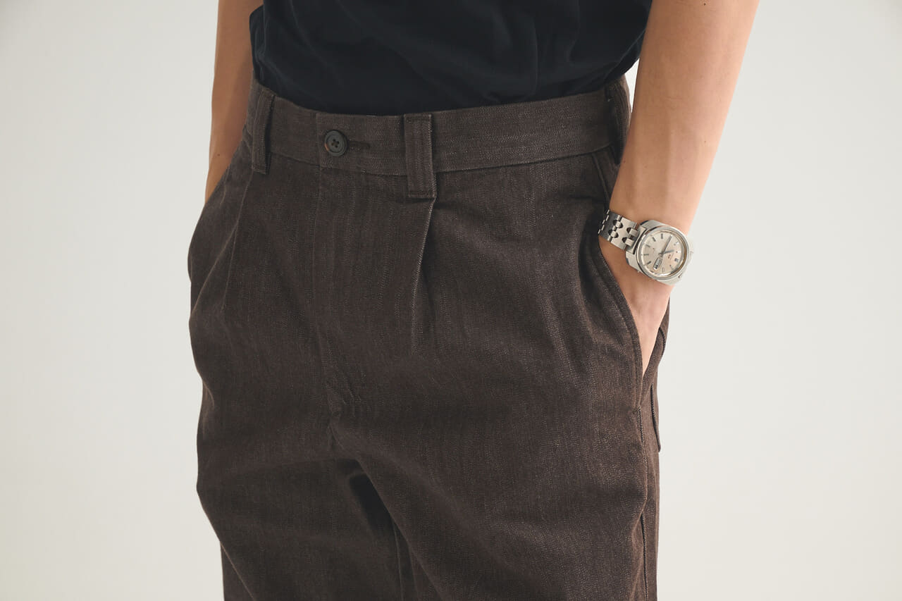 こちらの記事で紹介した「ユニクロ:シー」のタックストレートパンツ/デニム。トレンドの深みあるブラウンが気に入りすぎて、ここ数か月、がっつりヘビロテしていました。キレイめに穿けるタック入りのスラックスのようなルックスなので、どんなコーディネートにも合わせやすい優れモノ。マイ定番のワイドなストレートシルエットですし、柔らかく軽やかな履き心地で流れるような落ち感もついつい頼ってしまう理由です。
