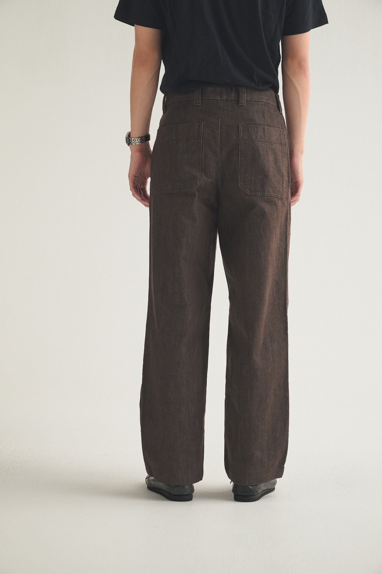 フロント、サイド、バックのシルエットを並べてみました。股上の深さもそこまで変わりませんが、「ユニクロ:シー」のほうがサイドの印象がスマートだと思いませんか? この見え方の違いはおもしろいですね。