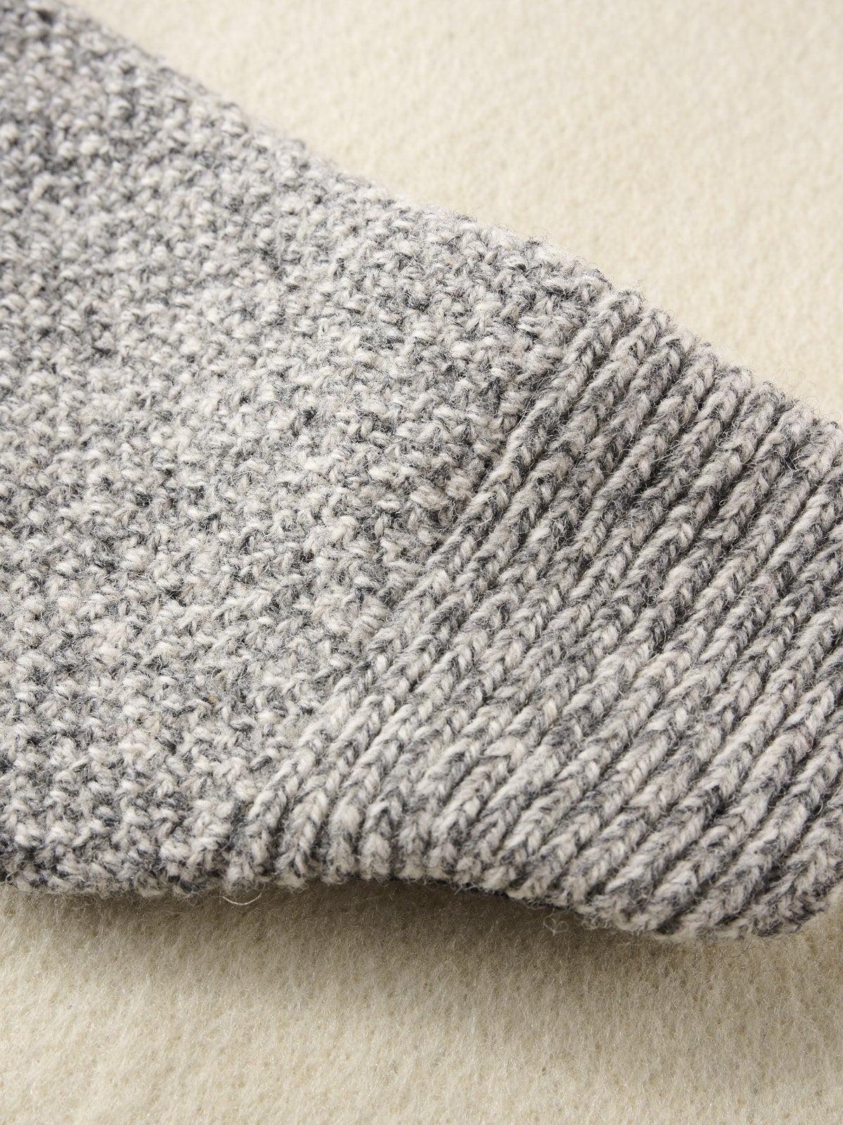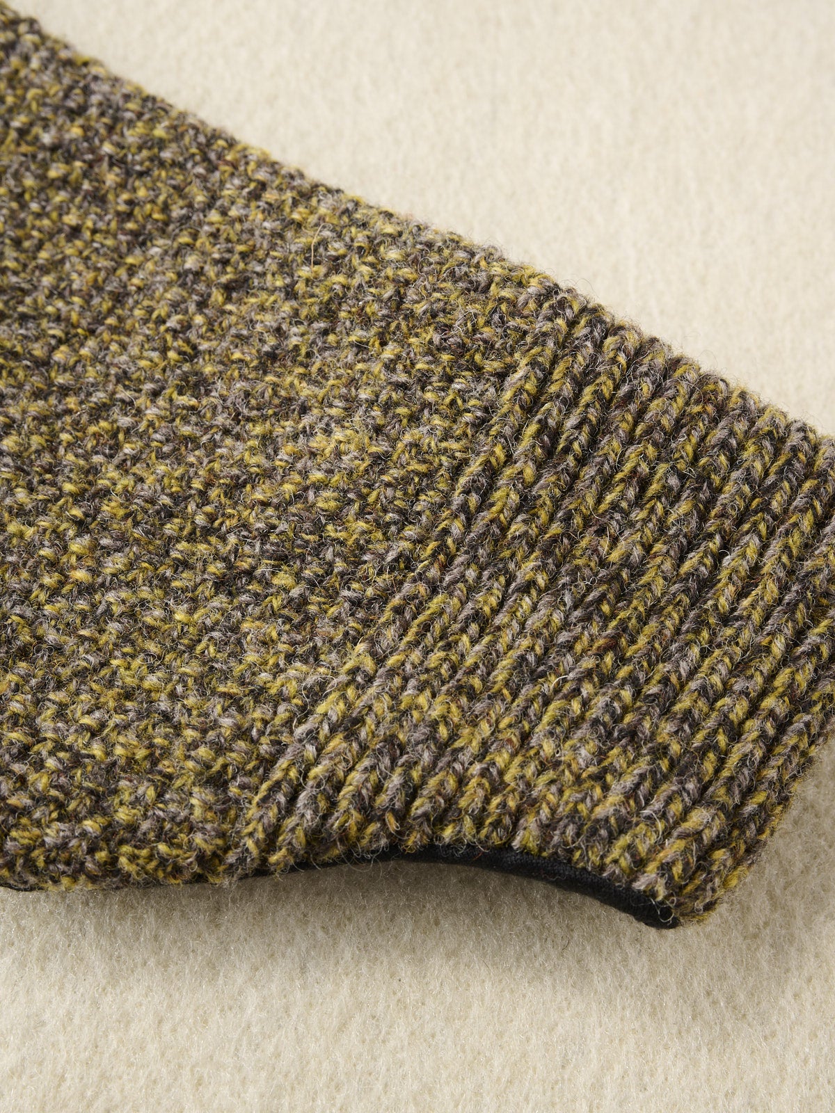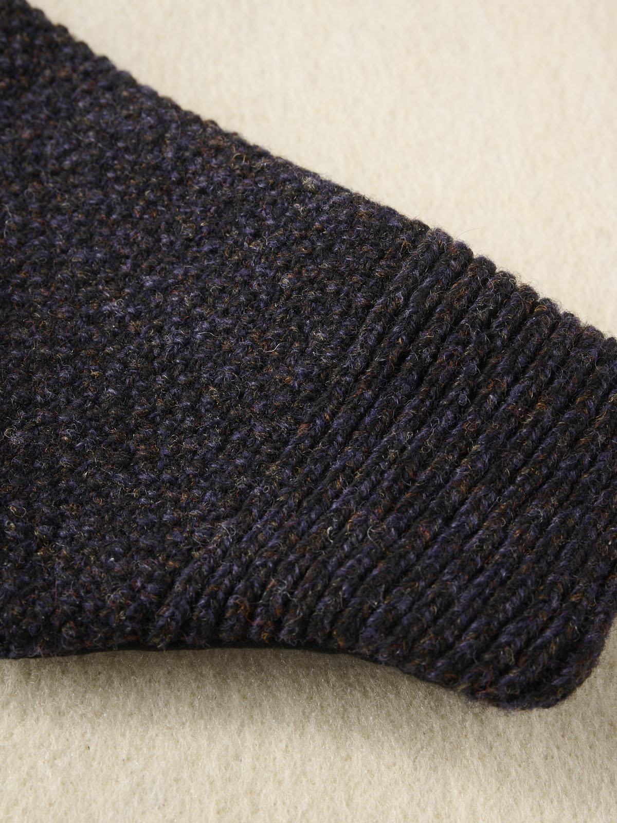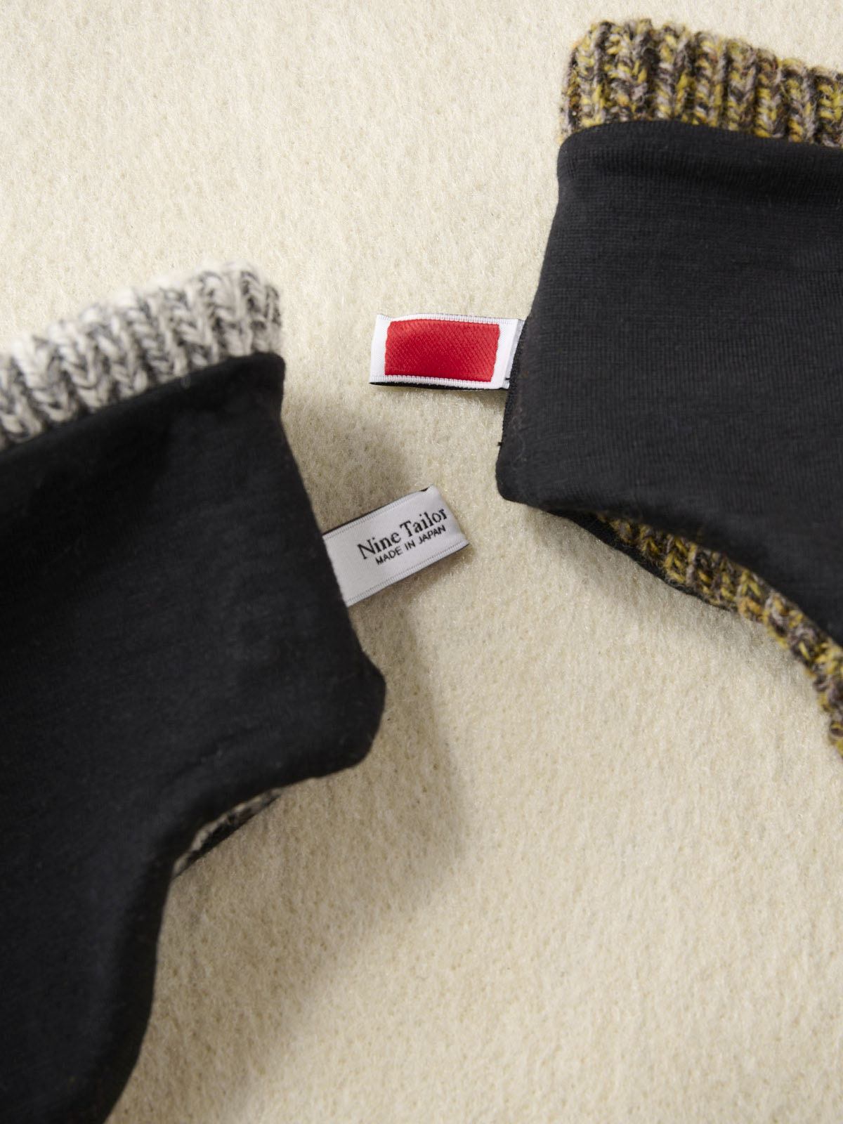 3色撚りのミックス感が特徴的なヘアバンド。表はリンクス編みでメランジ感のある表情がポイントの英国羊毛をブレンドしたウール糸、裏はカットソー生地にすることで優しい肌触りに。耳の長さや全体のバランスが良く、着こなしのアクセントにもなる。お寝坊さんにとっても頼もしい相棒だ。
