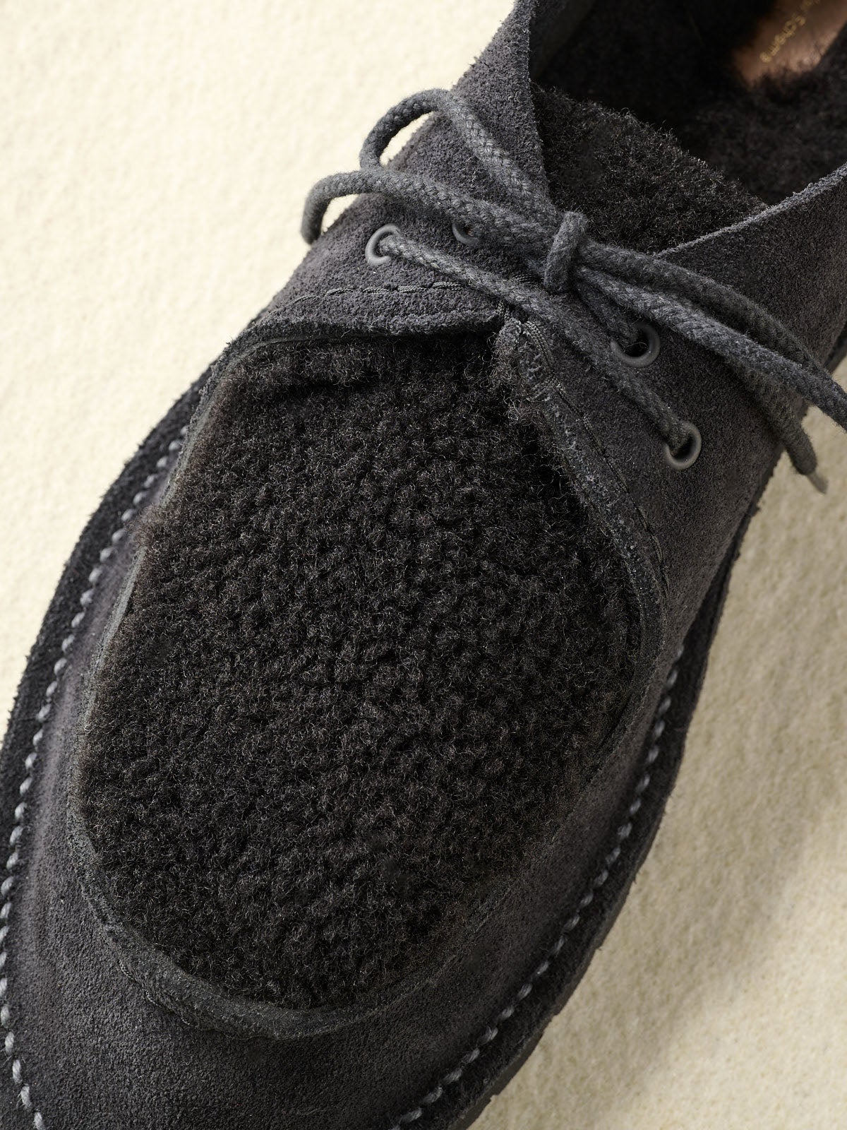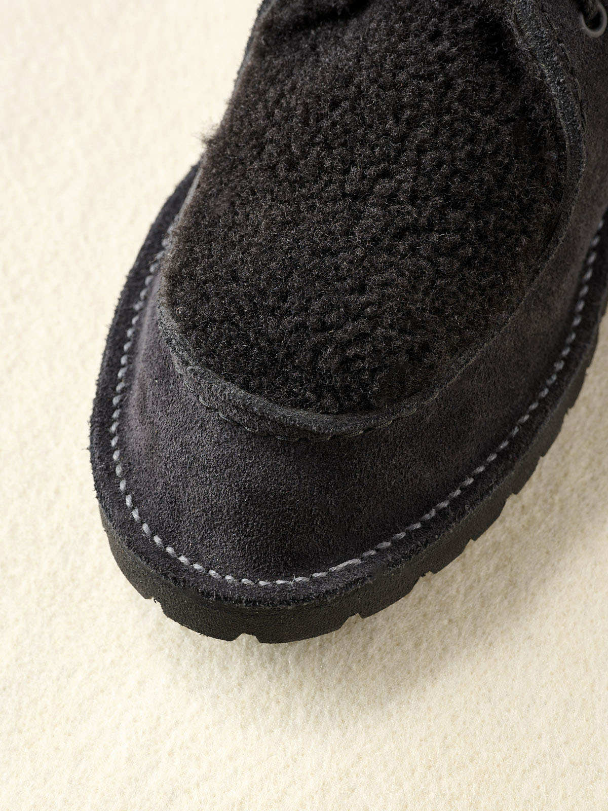 暖かくて可愛げのあるムートンを楽しめるラストチャンス。アッパーは、イギリスの老舗タンナー・チャールズ F. ステッド社による繊維密度の高いスエードカウレザーと、イタリア製の上質なムートンのコンビネーション。見た目の温かみと保温性、さらに毛足の弾力による自然なクッション性を楽しめる1足。