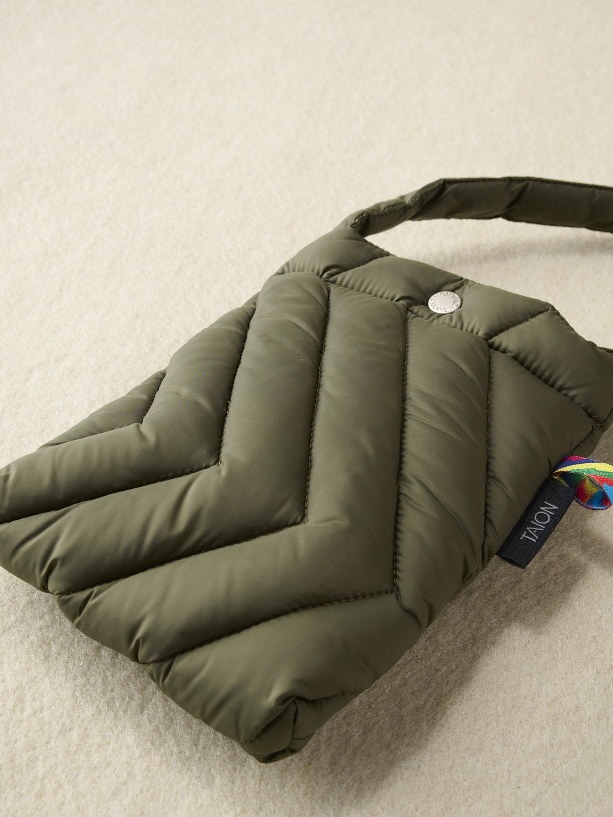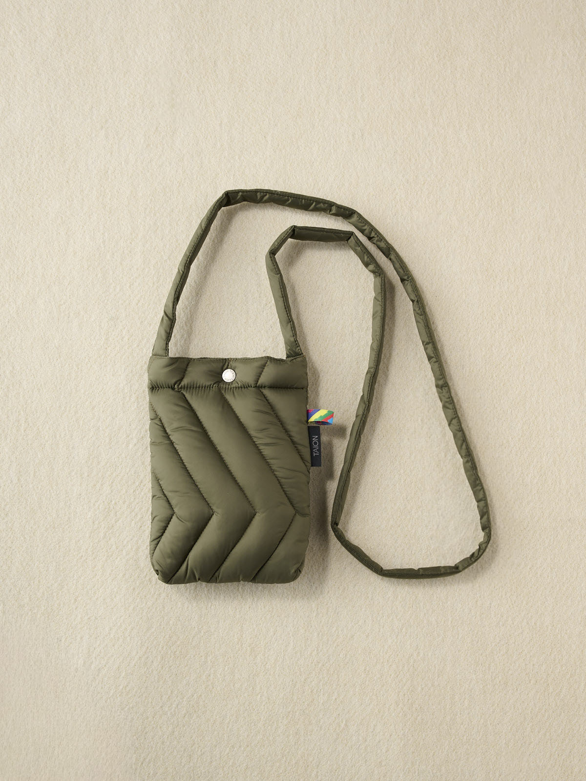 軽量かつボリューム感のあるダウンポーチ。ダウン特有のふんわりとした立体感と、実用性を兼ね備えたデザインが魅力。スマートフォンや財布などの必需品を収納するのにちょうどいいコンパクトサイズで、デイリーからトラベル時のサブバッグにぴったり。