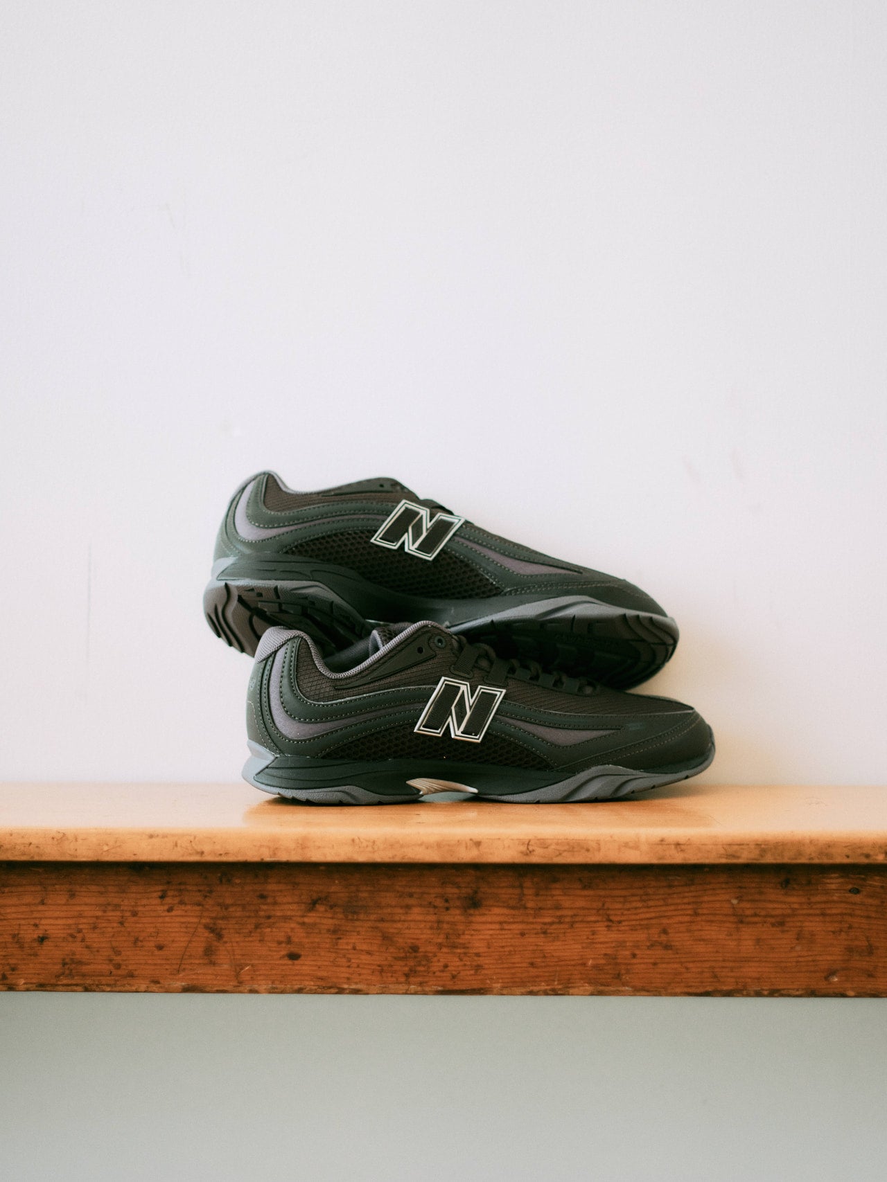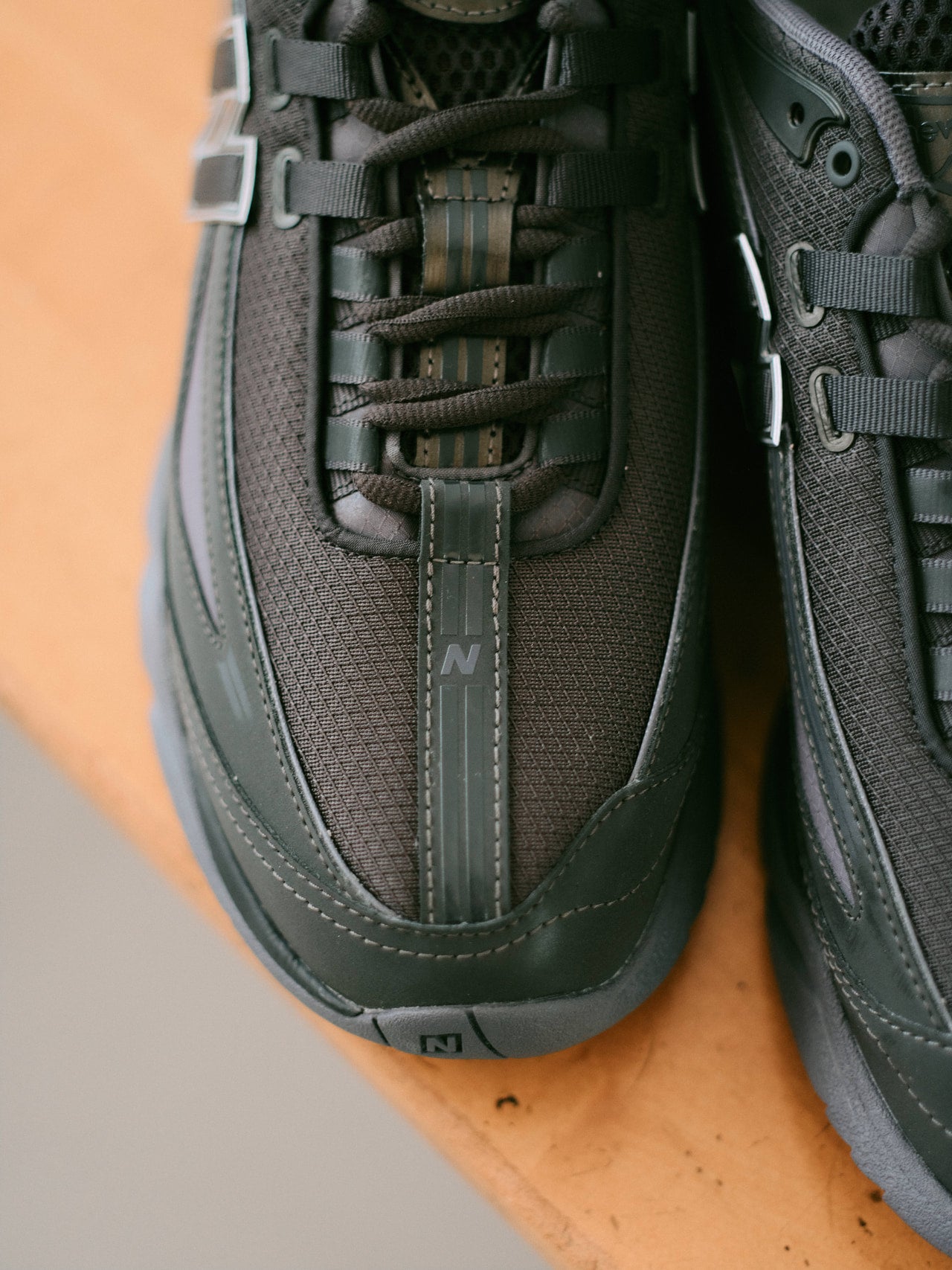 「ニューバランスといえばグレーのイメージですが、チャコールグレーという選択もおすすめです。グレーよりも濃くてシックな印象なので、さまざまなコーディネートにマッチするんですよね。ニューバランスでローテクっていうのも新鮮です」。