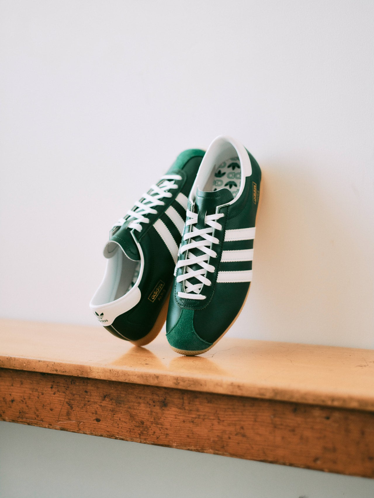 1970年代から80年代にかけて、ヨーロッパの各都市をフィーチャーして展開されたアディダスの都市シリーズ(シティシリーズなどとも呼ばれる)から「パリ」が登場。滑らかなレザーアッパーに、ホワイトのストライプをオン。そこにガムソールを組み合わせることで、70年代のアーカイブからそのまま抜け出してきたかのようなレトロな仕上がりになっている。